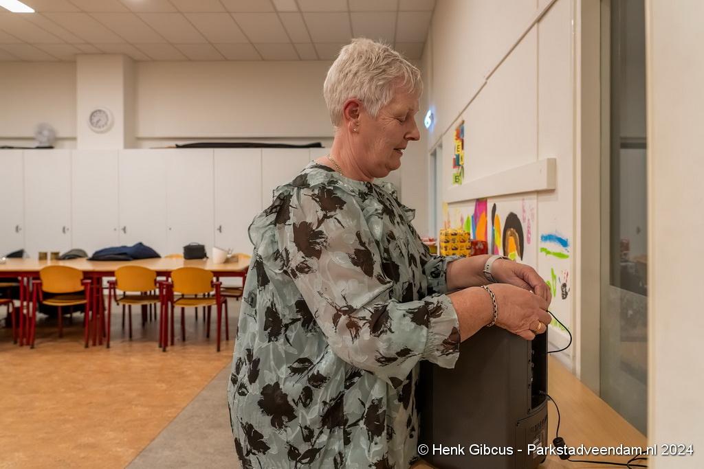 Tussen 19.00 uur en 19.30 uur komen de dames binnen. Ja, het zijn hier alléén dames. Ze worden spontaan ontvangen door Albèrtje en Annie Nijhof. Gekscherend noemt Albèrtje Annie de directeur, want Annie zorgt voor de financiën en houdt keurig de presentielijst bij. Annie zit al sinds 2009 bij de groep. Als alle dames binnen zijn, eerst natuurlijk even bijpraten, start Albèrtje de les.