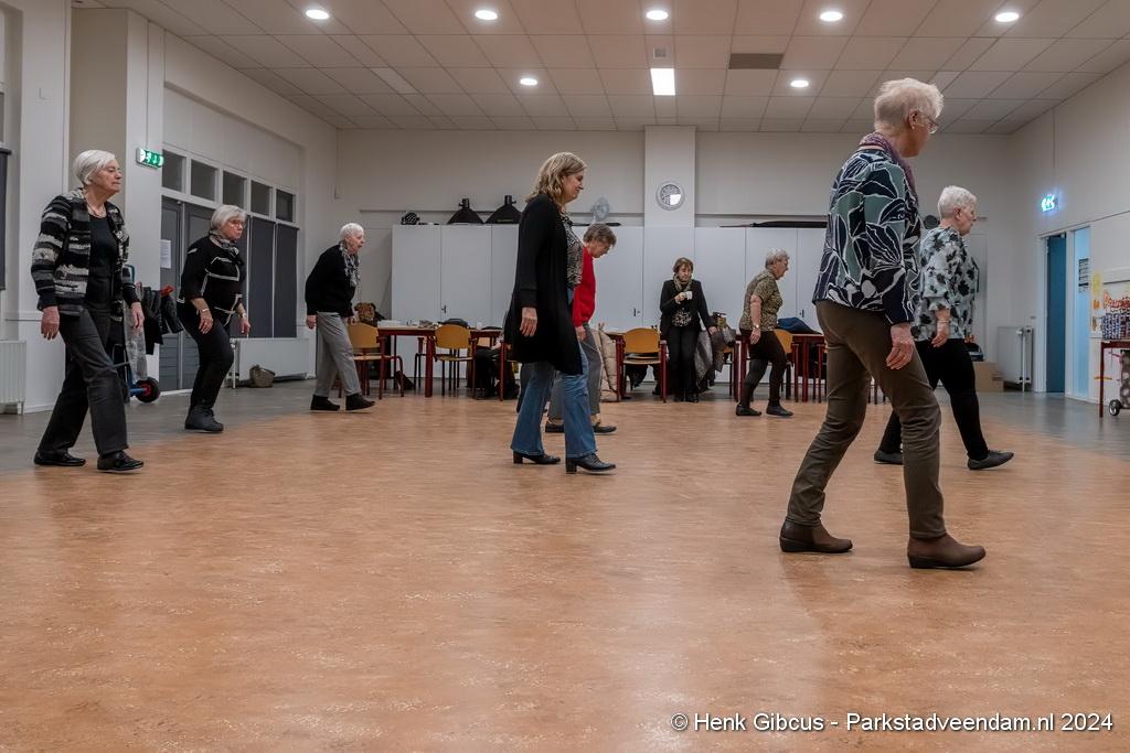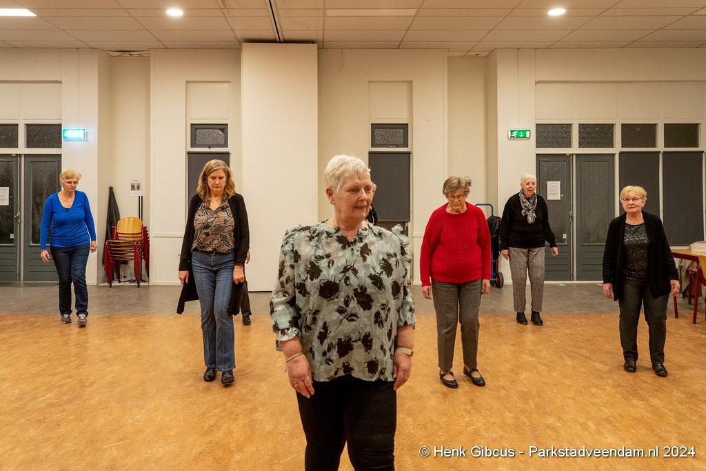 De Veendam-groep heeft op de dinsdagavond de zaal van het Jakob Bruggemacentrum (JBC) ter beschikking. Een fijne royale zaal met voor de danslessen een perfecte vloer, maar dat moet ook wel met 14 dansenthousiastelingen. De lessen duren van 19.30 uur tot rond 21.00 uur met tussendoor een koffie/thee pauze.