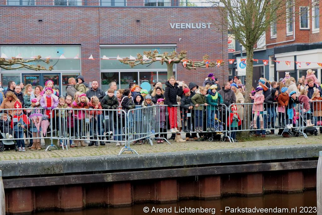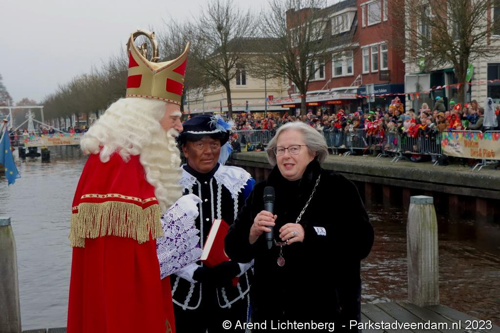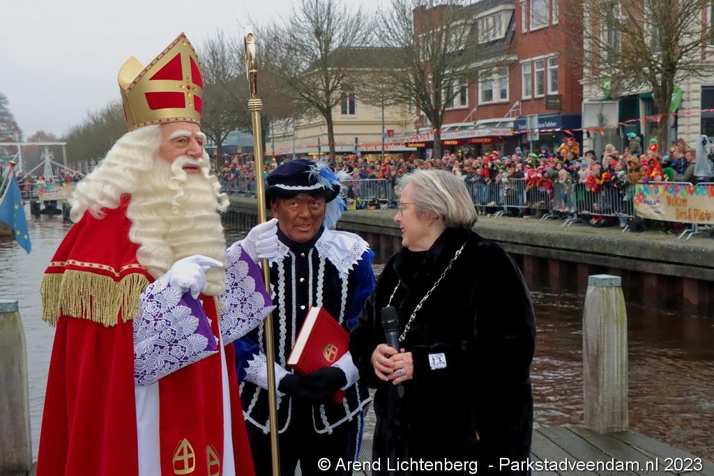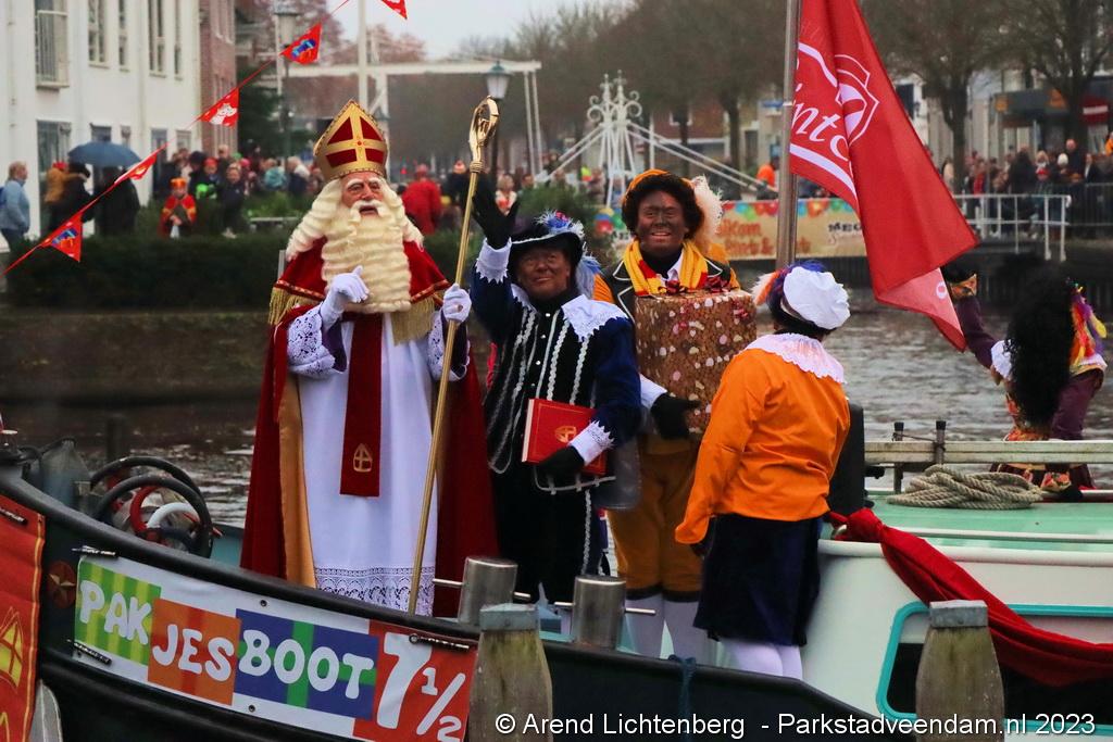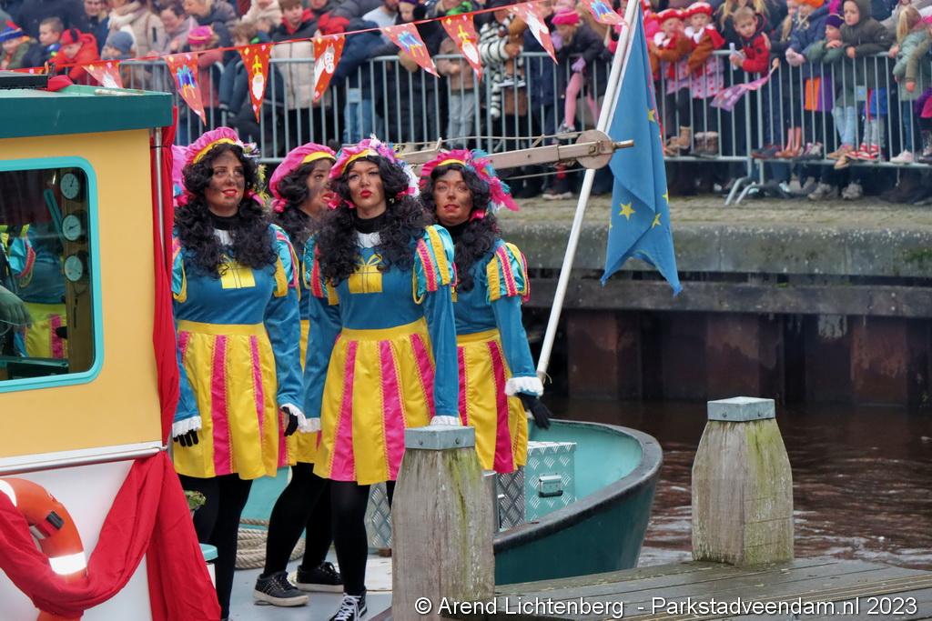 Vergezeld van de Pakjesboot is Sinterklaas zaterdagmiddag aangekomen in Veendam. Honderden kinderen met ouders, opa`s en oma`s e.v.a. zagen Sinterklaas en maar liefst 175 pieten rond 13.00 uur in de haven aan de Blankensteinkade voet aan wal zetten.