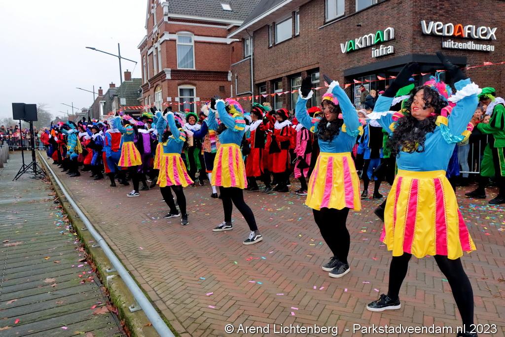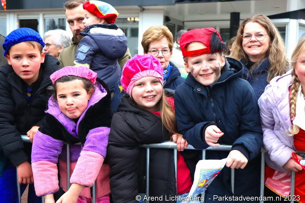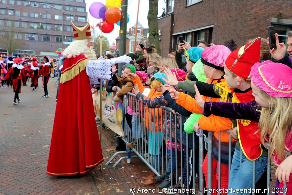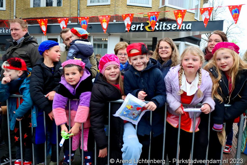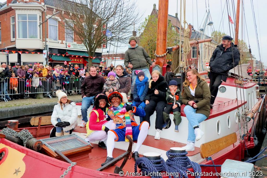 Vergezeld van de Pakjesboot is Sinterklaas zaterdagmiddag aangekomen in Veendam. Honderden kinderen met ouders, opa`s en oma`s e.v.a. zagen Sinterklaas en maar liefst 175 pieten rond 13.00 uur in de haven aan de Blankensteinkade voet aan wal zetten.