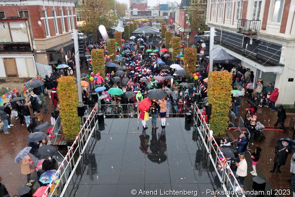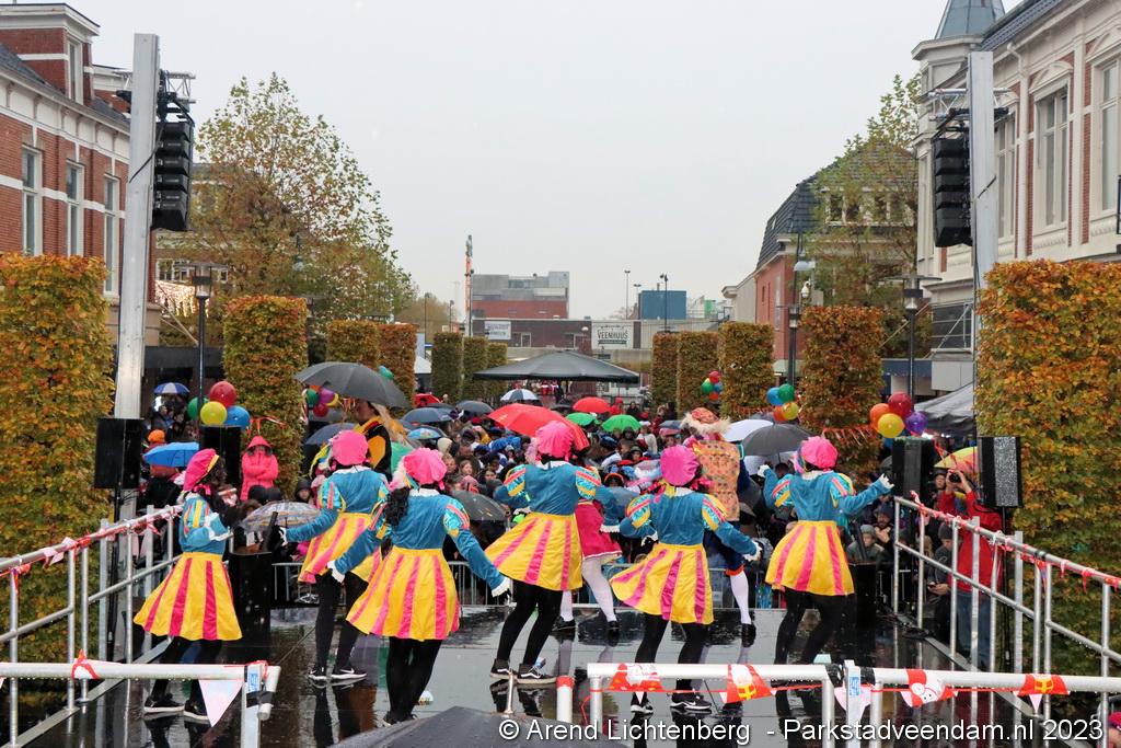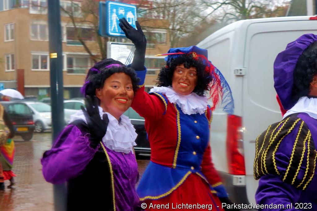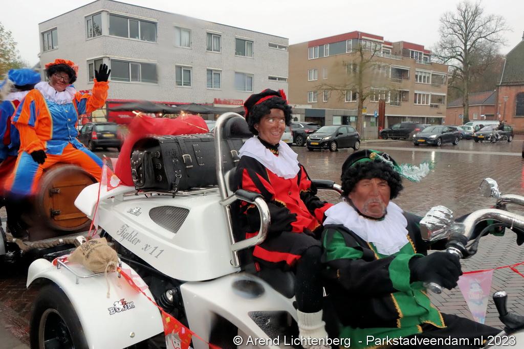 Sinterklaas ging na de aankomst bij de haven op zijn paard Ozosnel een rondrit maken door het centrum van Veendam, onder leiding van een muziekkorps en de speciale voertuigen van de pieten. Na zijn rondrit ging Sinterklaas naar het Raadhuisplein om daar alle kinderen persoonlijk te kunnen begroeten.
