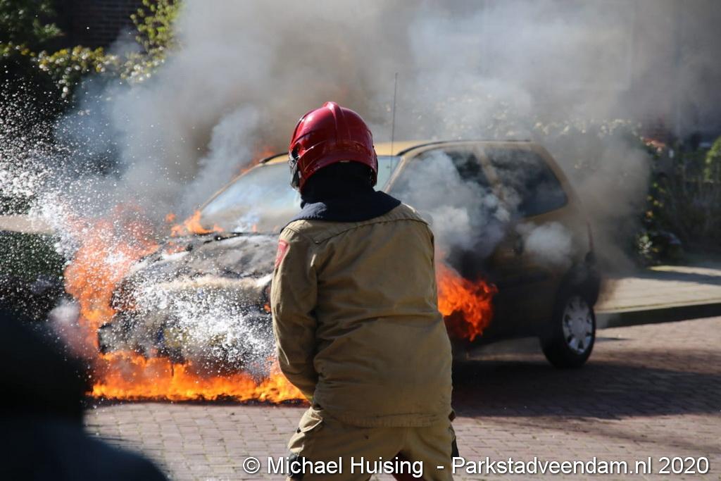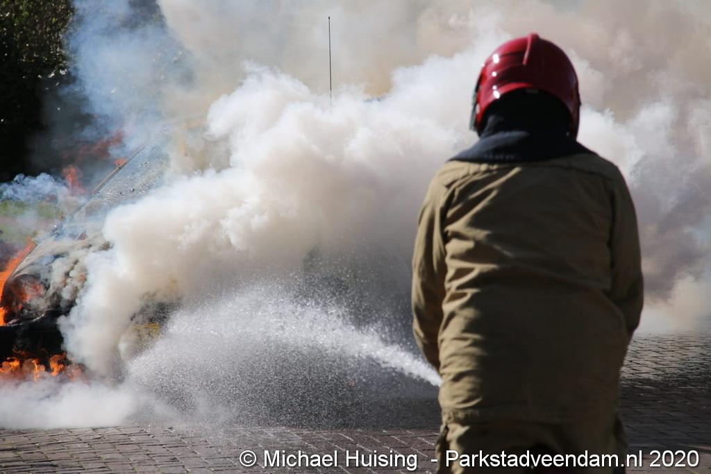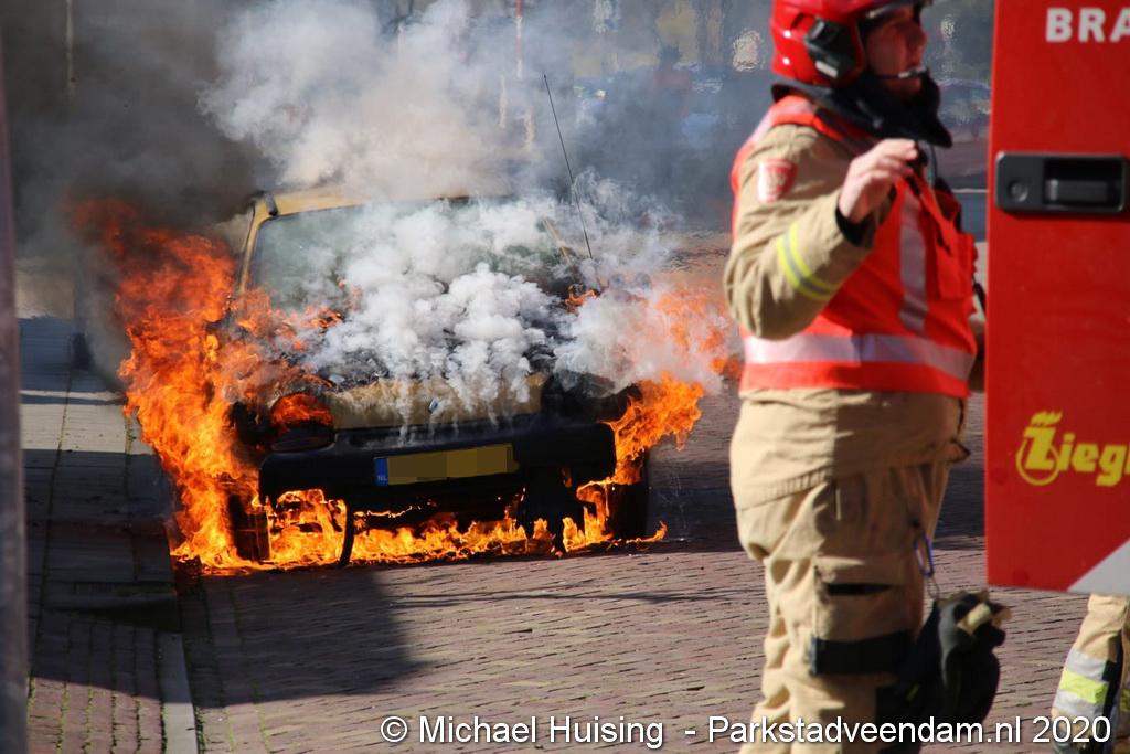 De brandweer was zeer snel ter plaatste, maar kon niet voorkomen dat de auto volledig uitbrandde.