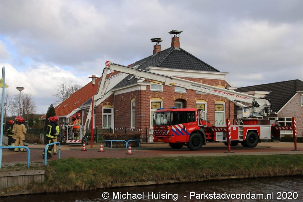 Hoogwerker brandweer Veendam ingezet