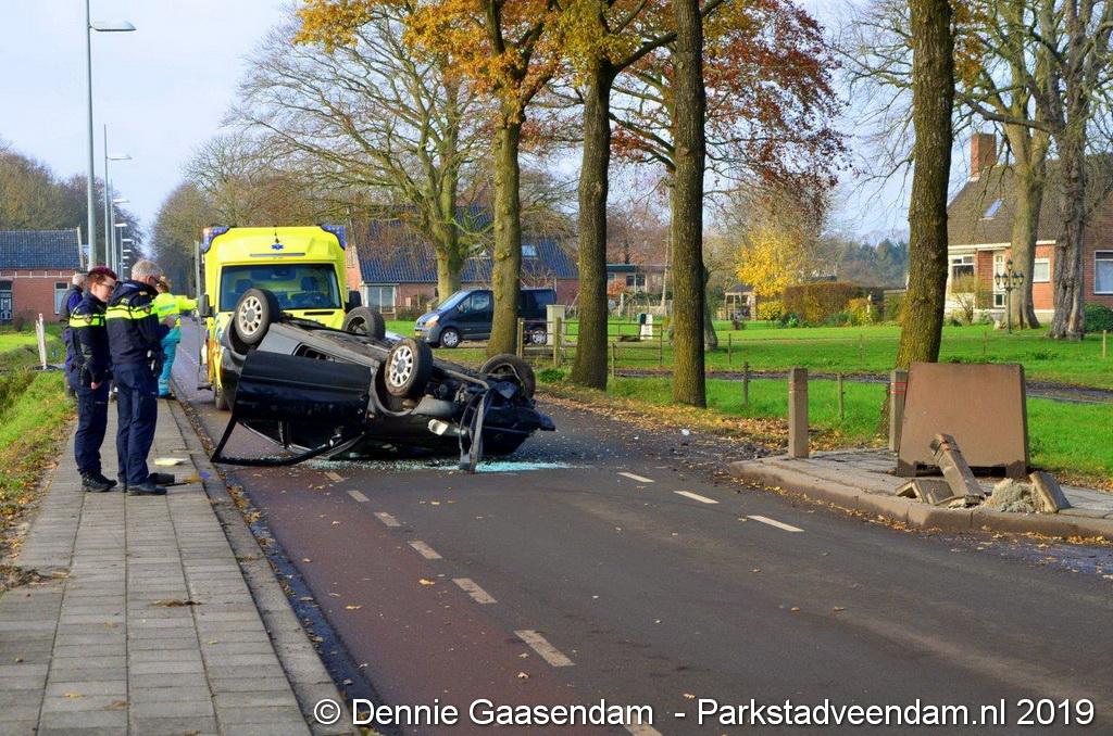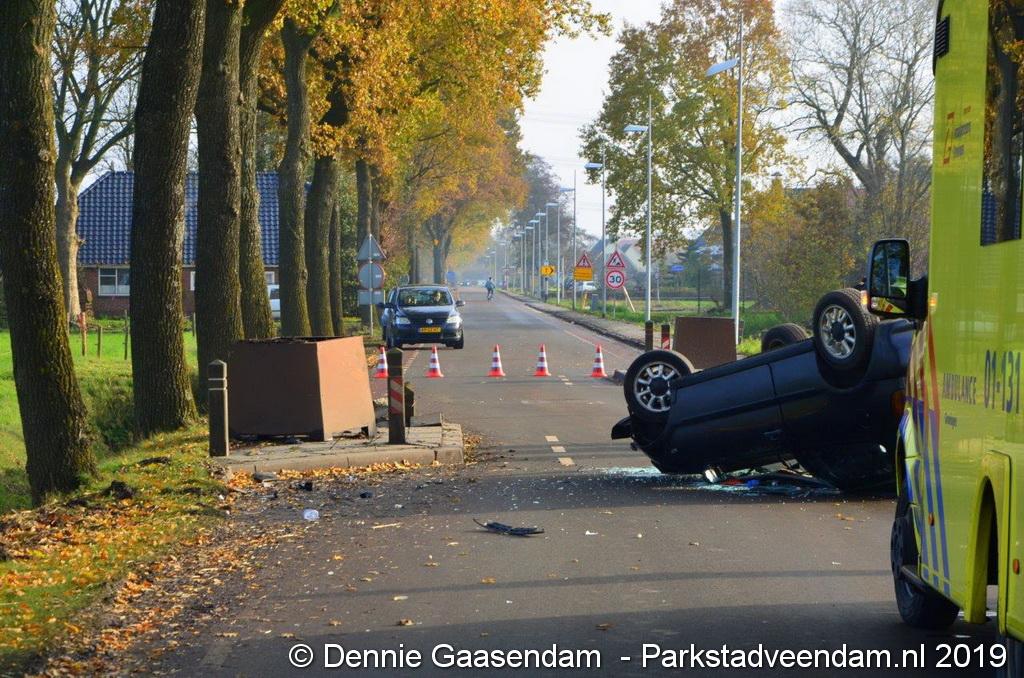 Naar verluidt kon de bestuurder niet meer tijdig remmen doordat een bestuurder uit tegengestelde richting ook door de wegversmalling reed. De doorgaande weg was ten tijde van de hulpverlening en berging (Fruitema Oude Pekela) van het voertuig afgesloten.