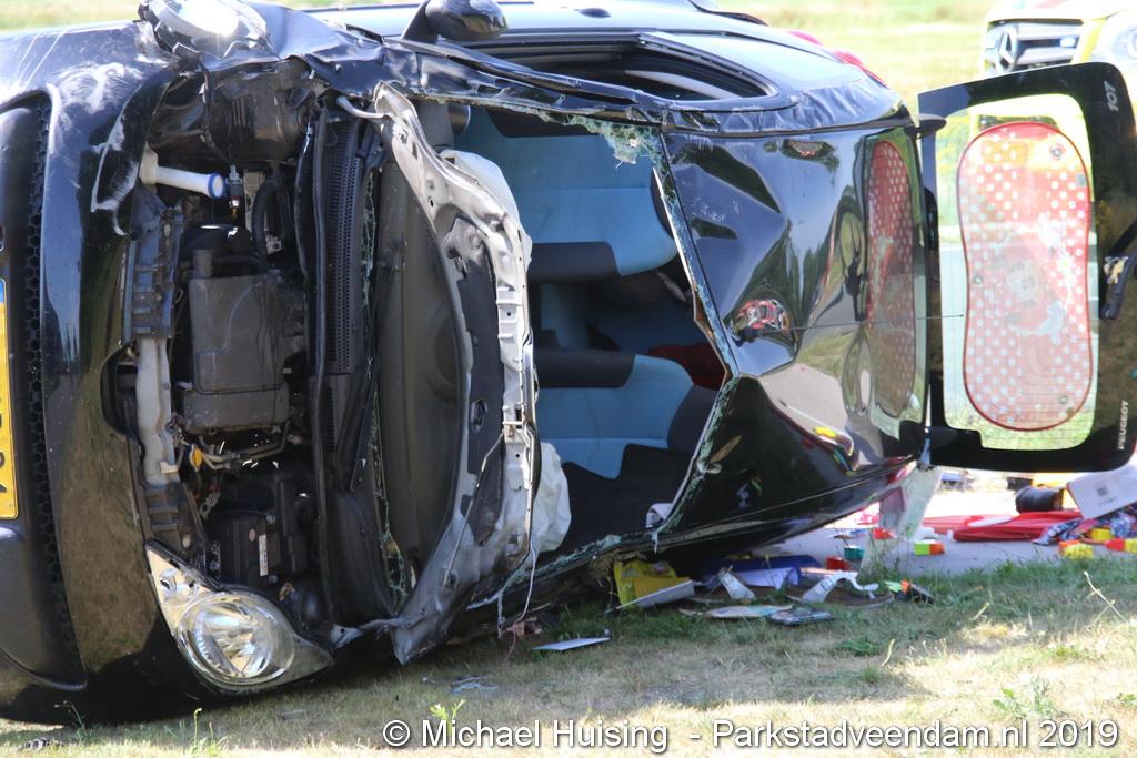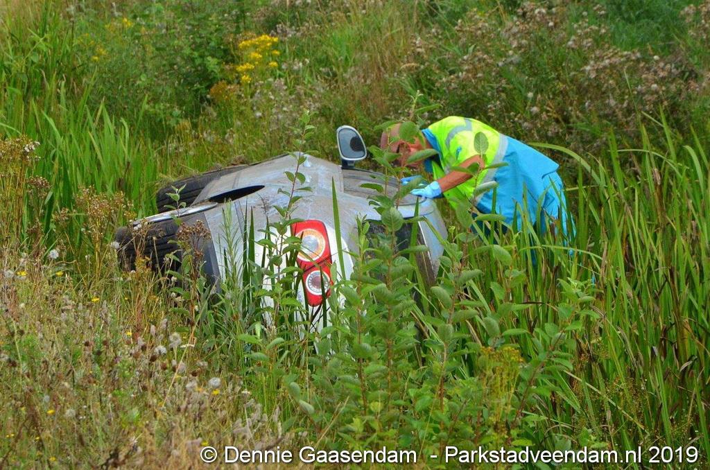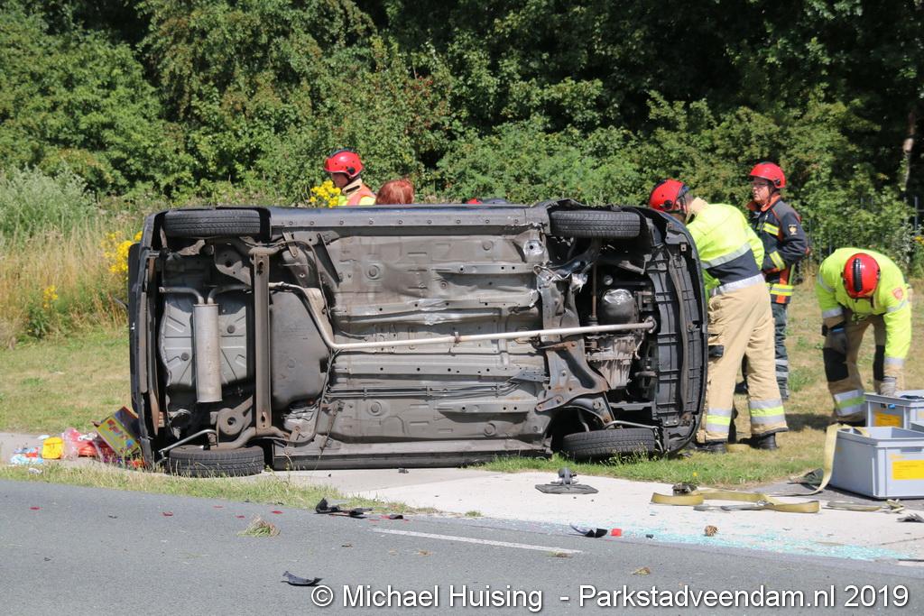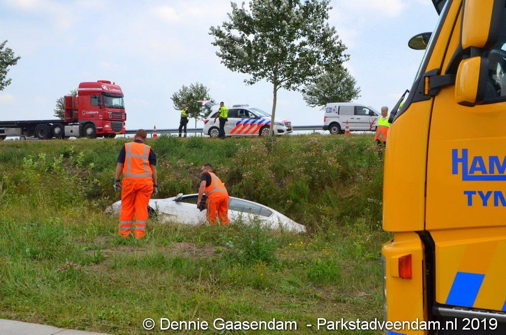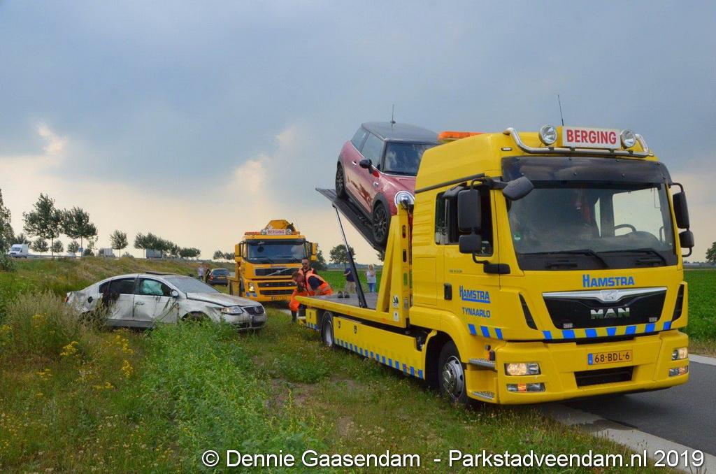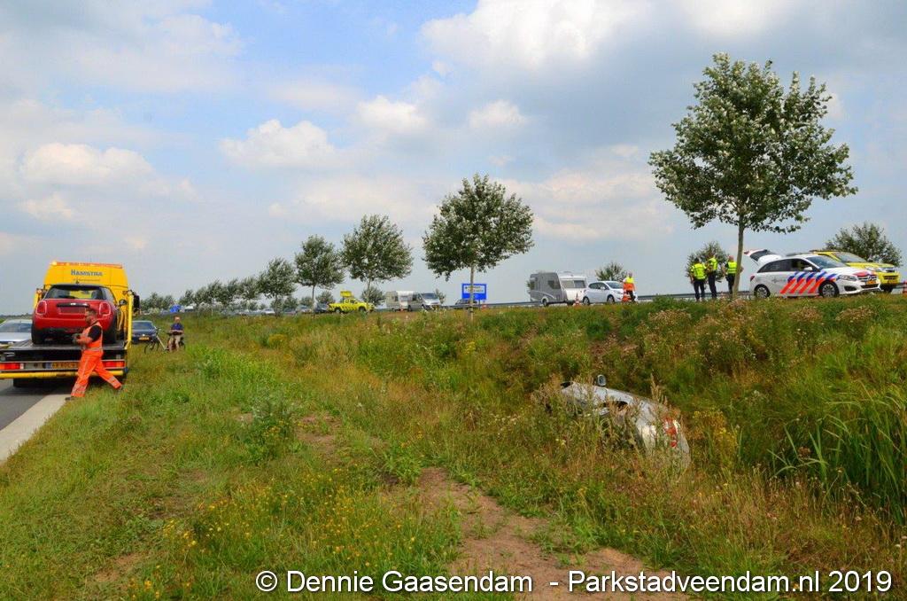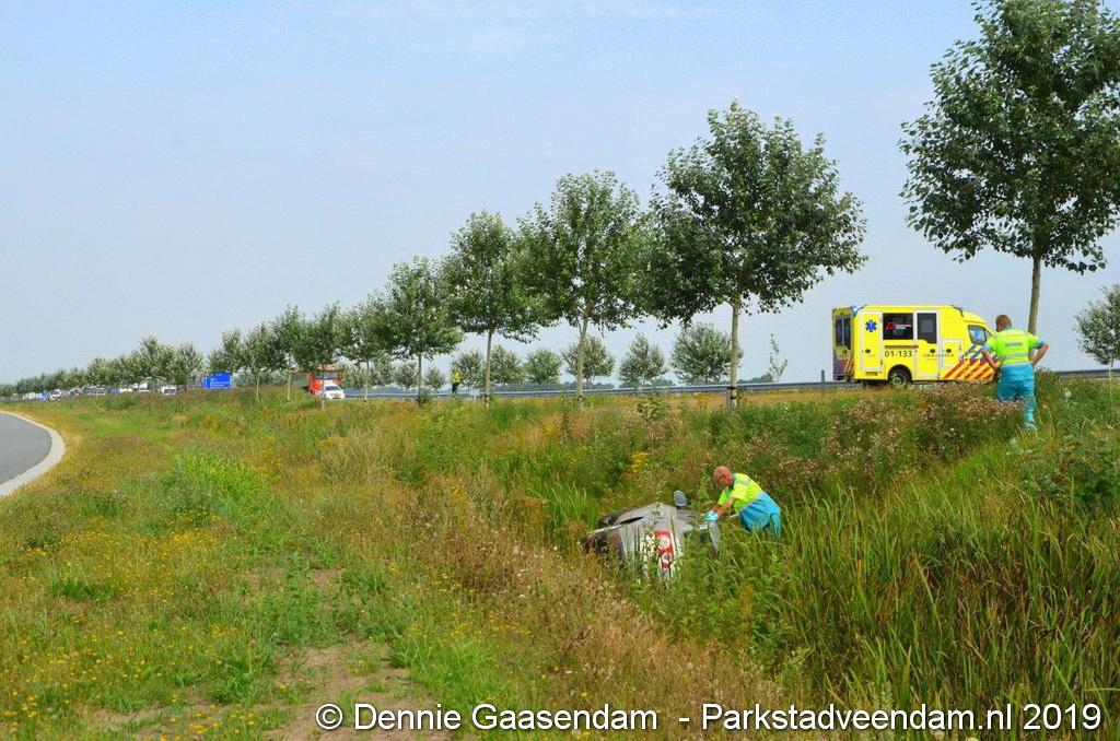Het Duitse gezin, met twee kleine kinderen, was rond 13:15 uur in botsing gekomen met een andere auto. De Duitse familie sloeg over de kop en eindigde in de sloot. De andere auto kwam in de vangrail terecht.