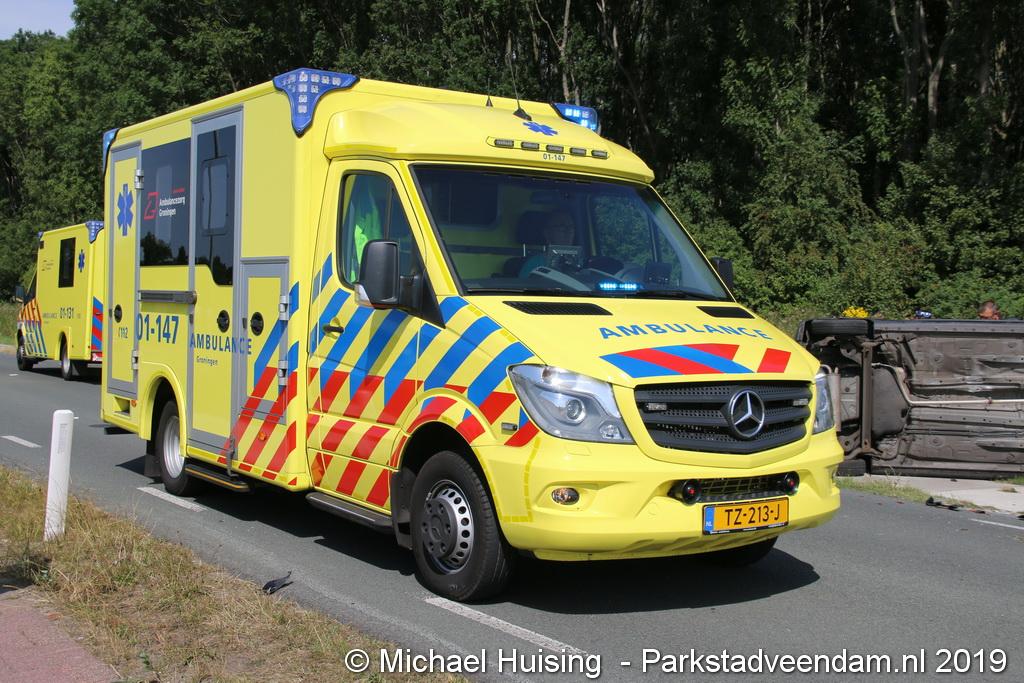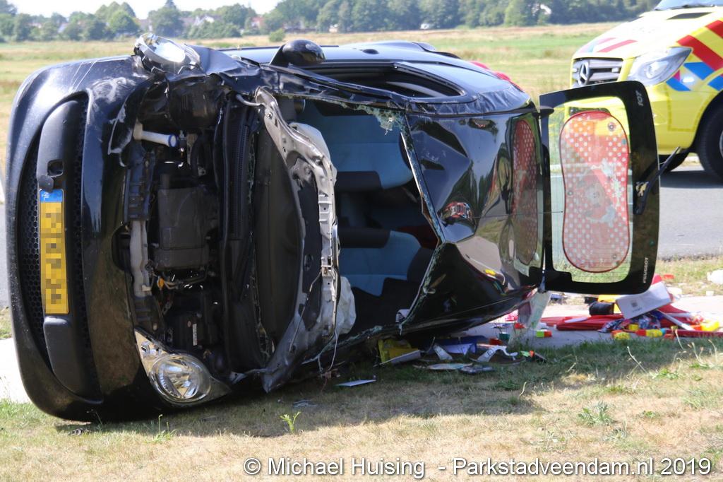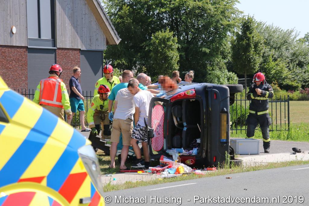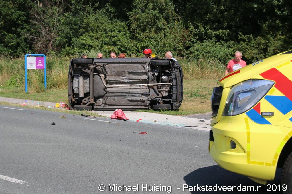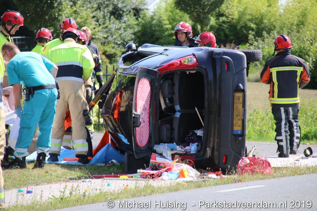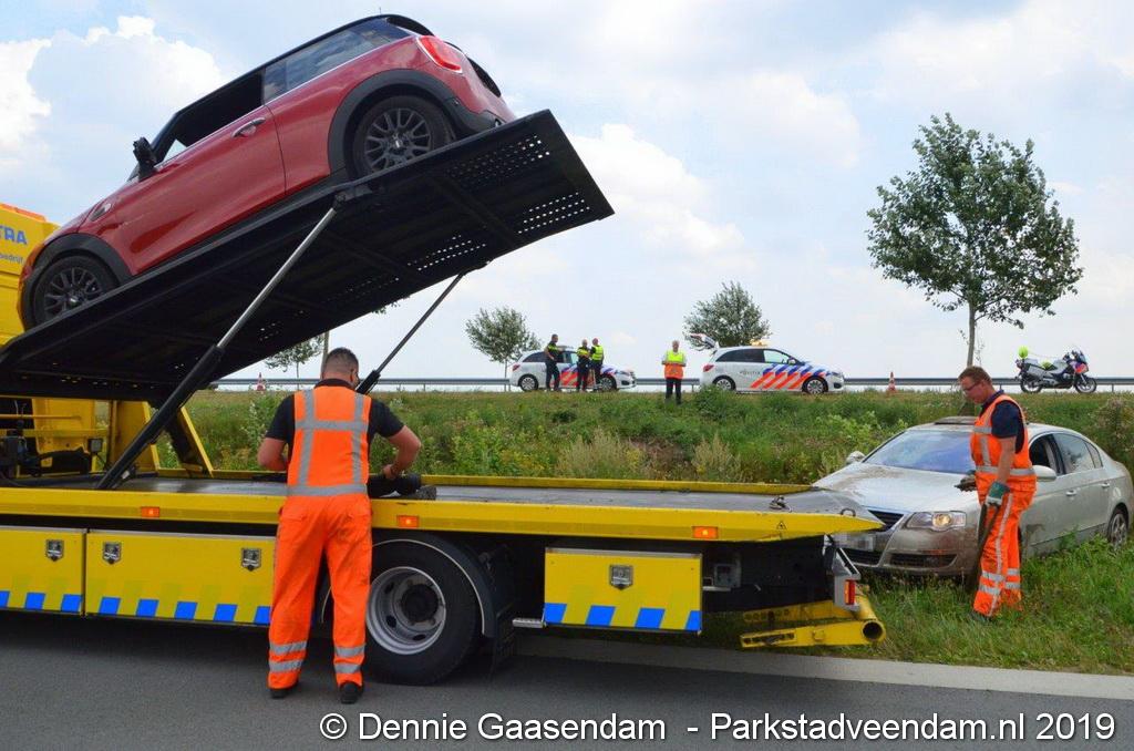 Het Duitse gezin, met twee kleine kinderen, was rond 13:15 uur in botsing gekomen met een andere auto. De Duitse familie sloeg over de kop en eindigde in de sloot. De andere auto kwam in de vangrail terecht.
