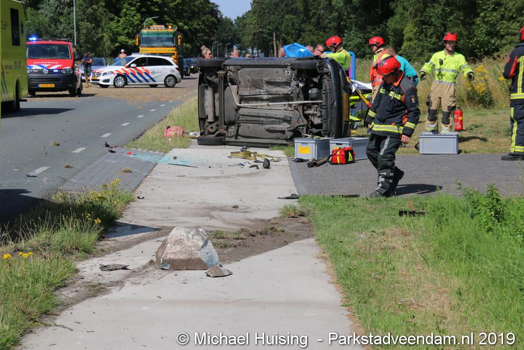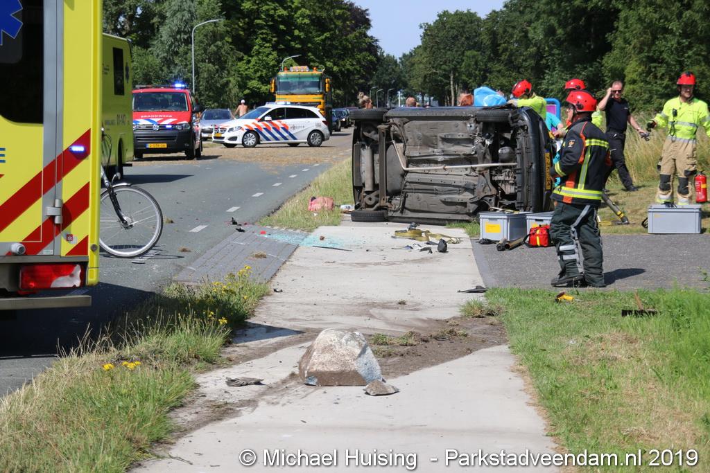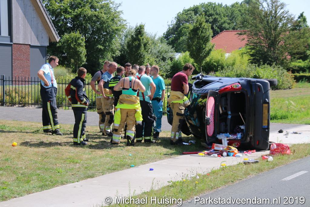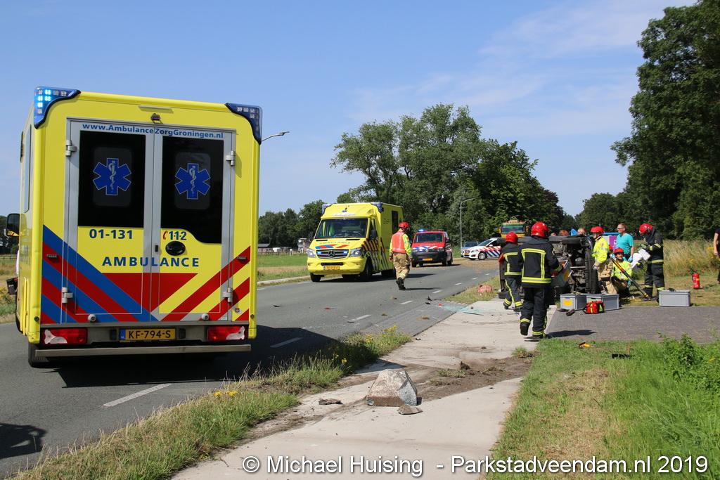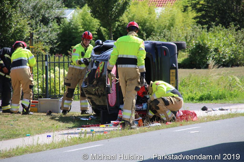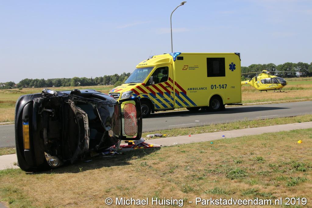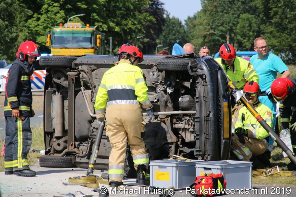 Het Duitse gezin, met twee kleine kinderen, was rond 13:15 uur in botsing gekomen met een andere auto. De Duitse familie sloeg over de kop en eindigde in de sloot. De andere auto kwam in de vangrail terecht.
