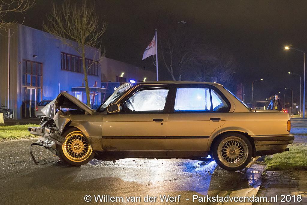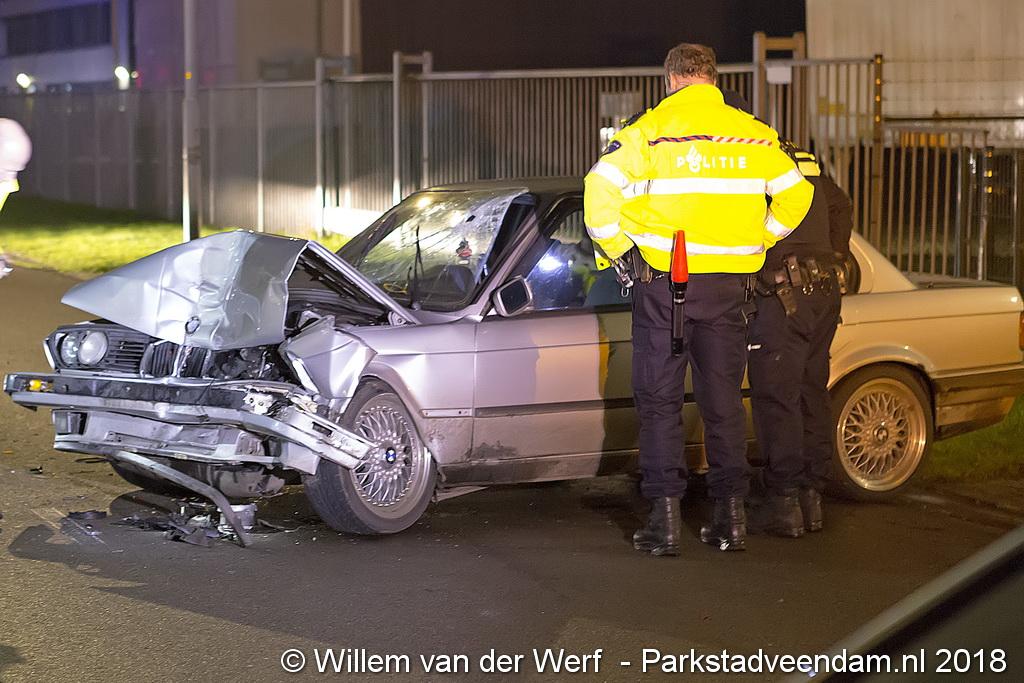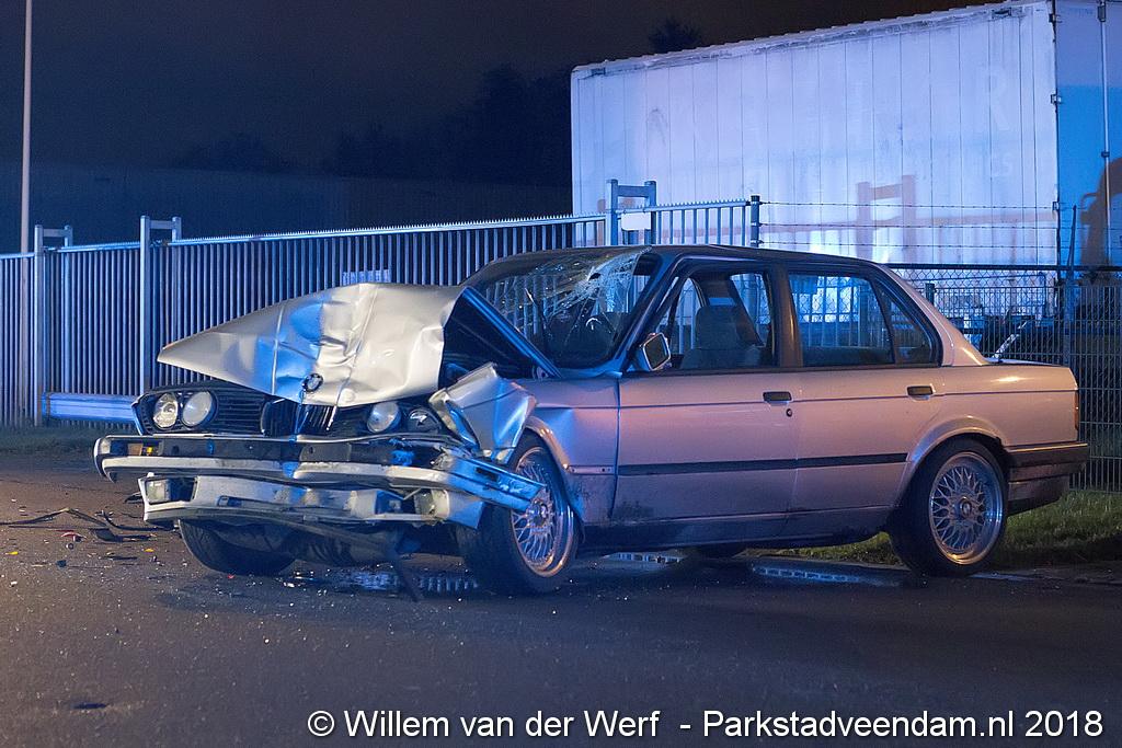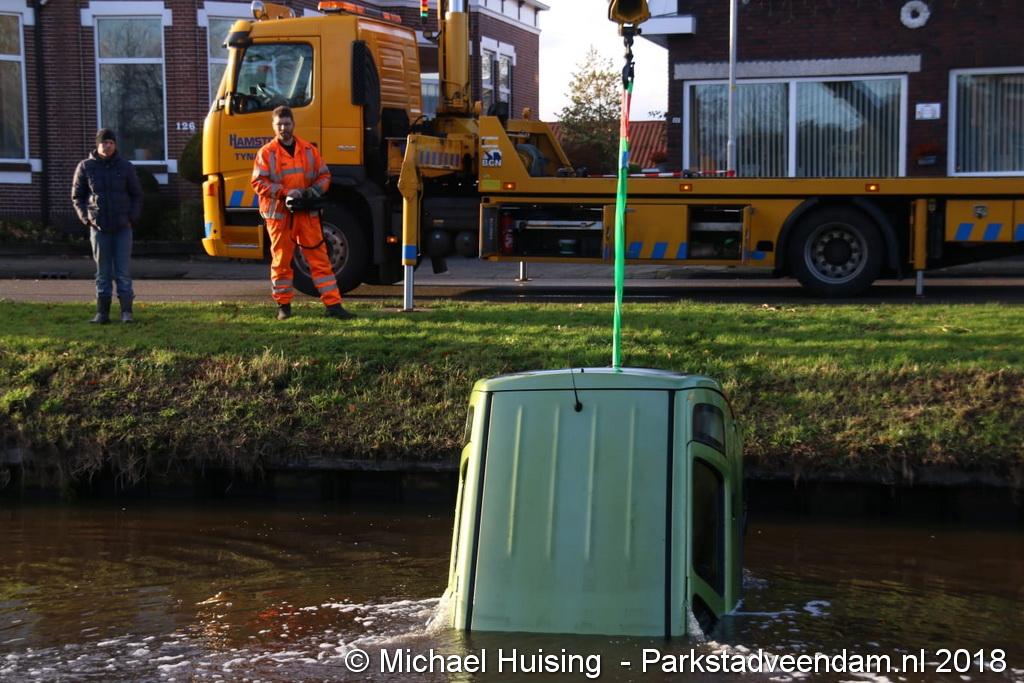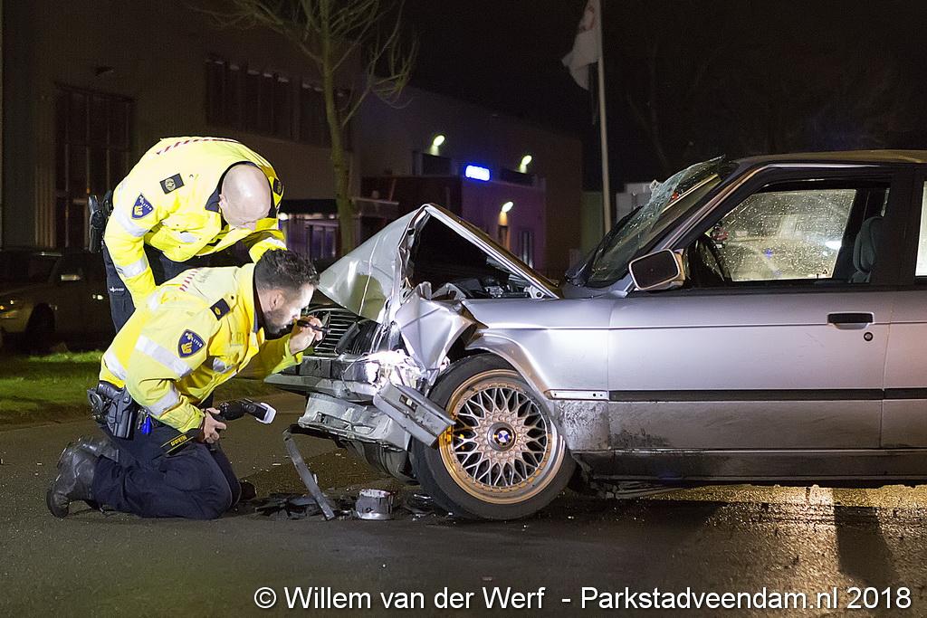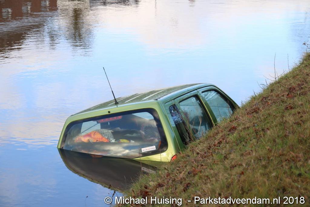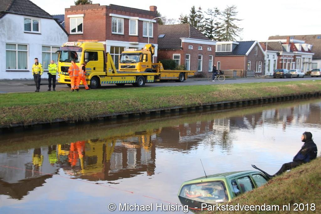 Maandagmiddag zijn op de J.Kammingastraat twee auto's op elkaar gebotst. Dit gebeurde nadat de bestuurster van de witte auto de oprit bij de woning wilde oprijden. Een achterop komende auto had dit niet in de gaten en botste op de auto. Of de laagstaande zon een rol heeft gespeeld is niet bekend. Door de klap schoot de witte auto tegen een geparkeerde auto, deze belandde hierdoor in het water.