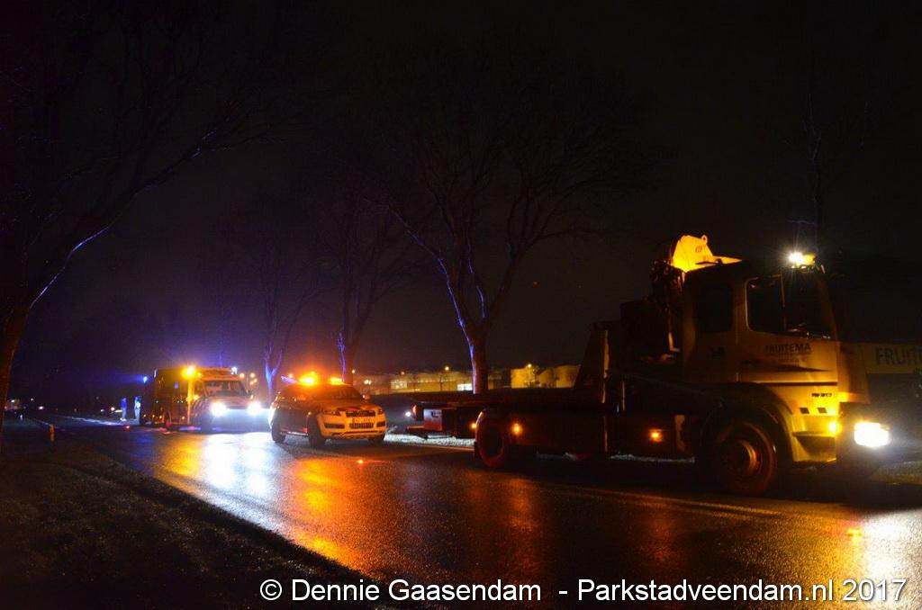 Na drie kwartier kwam een tweede ambulance ter plaatse evenals het Mobiel Medisch team. Het mobiel medisch team kwam ter plaatse met de auto in verband met de weersomstandigheden. De bestuurder werd met onbekende verwondingen overgebracht naar het ziekenhuis. De auto is afgesleept. Vanwege hulpverlening en bergingswerkzaamheden is de weg ruim twee uur afgesloten geweest.