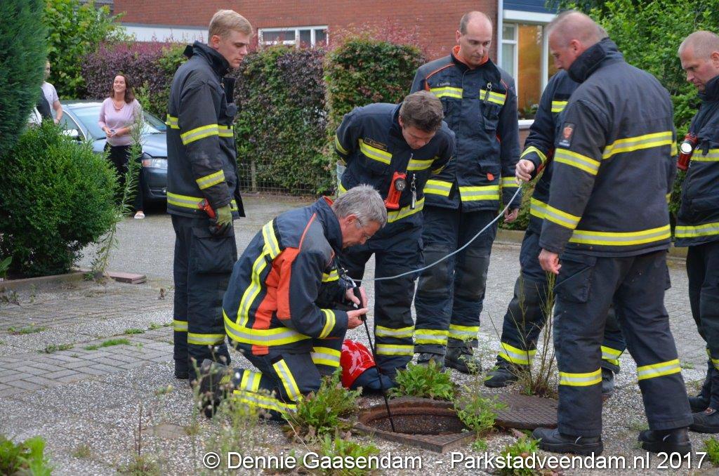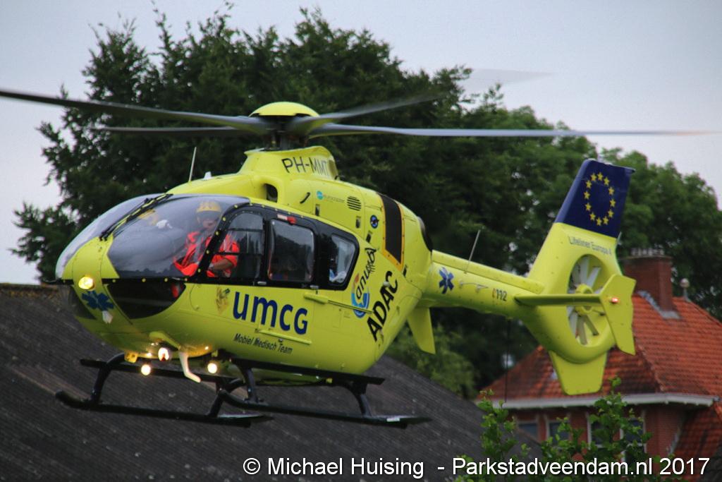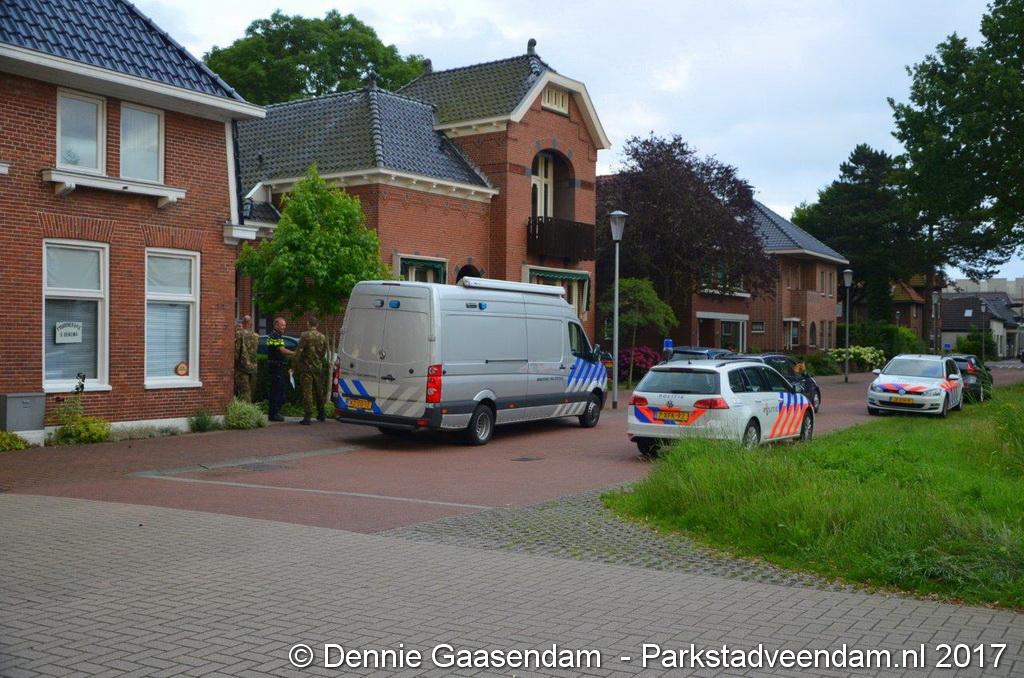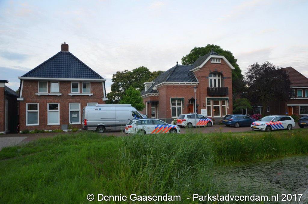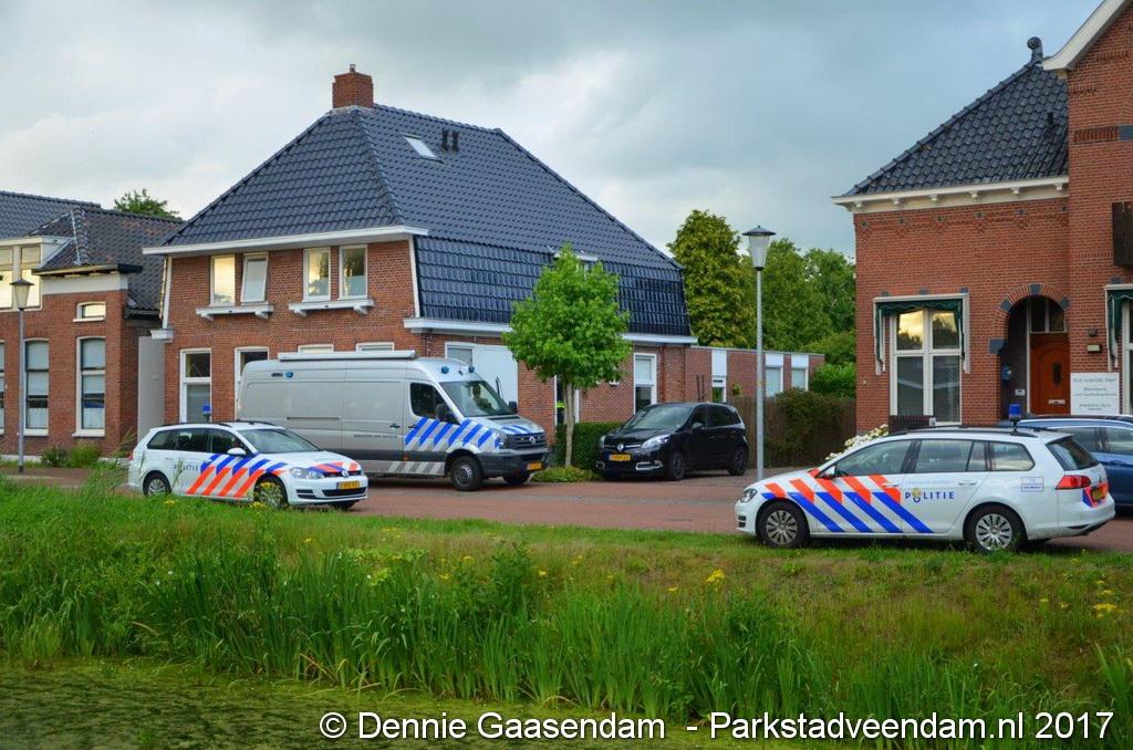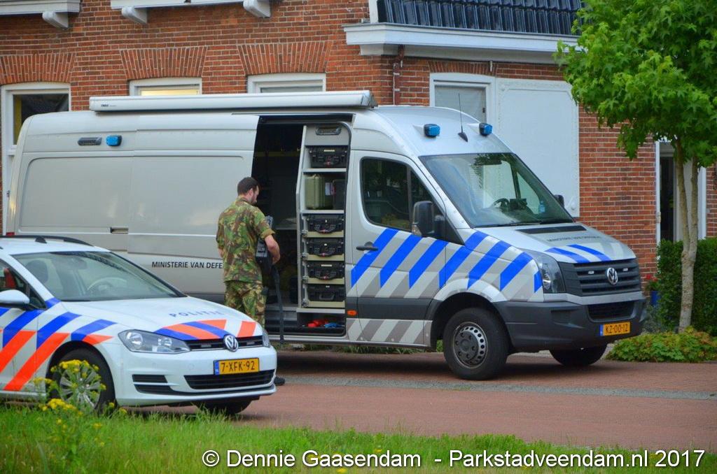 Maandag aan het einde van de middag moesten politie, brandweer en ambulance uitrukken naar de Beneden Westerdiep in Veendam. In eerste instantie leek de situatie ernstig waarop ook de traumahelikopter ter plaatse kwam. Na een tijdje kon de bewoner met behulp van de hulpdiensten zelf naar beneden komen. Volgens ooggetuigen is de man vervolgens in de boeien geslagen en meegenomen naar het politiebureau. Niet veel later stond de straat vol met politiewagens. Een onderzoek in de woning werd opgestart. Ook de Explosieven opruimingsdienst van Defensie werd opgeroepen.