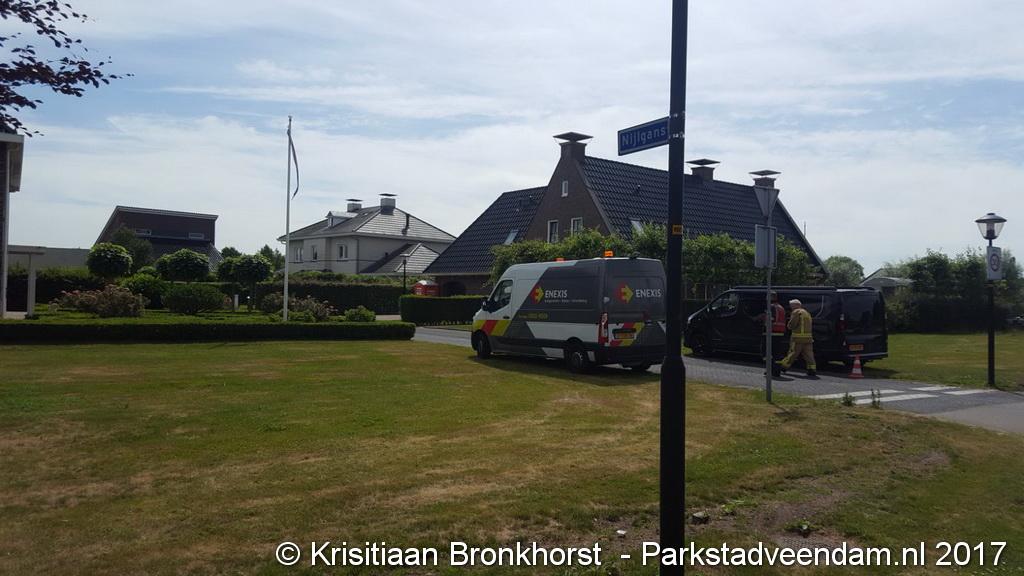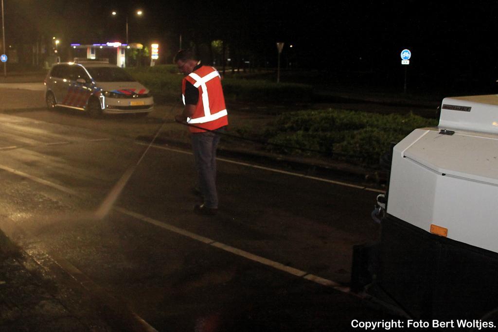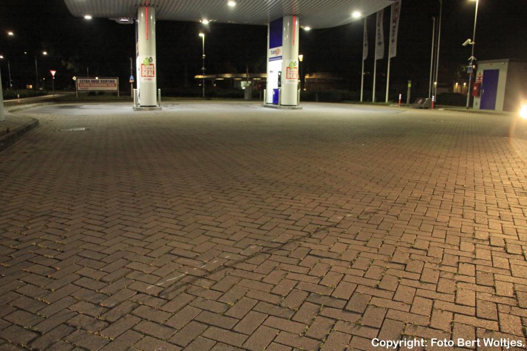 Ik kreeg omstreeks 23.40 een melding. Ben gelijk in de auto gestapt en legde het tafereel vast. Het bleek om een Suzuki Swift te gaan de in een slip was geraakt en de stoeprand had geraakt en daardoor ging de airbag eruit en kon de bestuurder uit Borgercompagnie gelijk niets meer zien, maar hij wist de auto veilig aan de kant te krijgen. Volgens de bestuurder reed hij ongeveer 50 km, maar het wegdek was wel weer door de regen glad geworden. Even later stond ik met de agenten te praten en opeens hoorden we achter ons het geluid van een slippende auto in de bocht verder op. Deze bestuurster uit Veendam wist niet hoe ze het had want ze vloog met de auto het terrein van de benzine pomp op. Ze kwam er met de schrik vanaf en een kapotte velg + band. Gelukkig raakte ze niet de pompen zelf anders was het heel anders afgelopen en had de brandweer er wel bij moeten komen. (Daarom stond ik er als fotograaf heerlijk alleen) Even later kwam er wel een busje met aanhangwagen van de gemeente aanrijden.