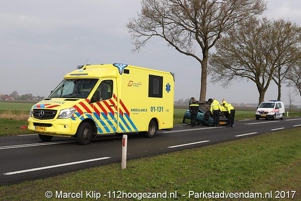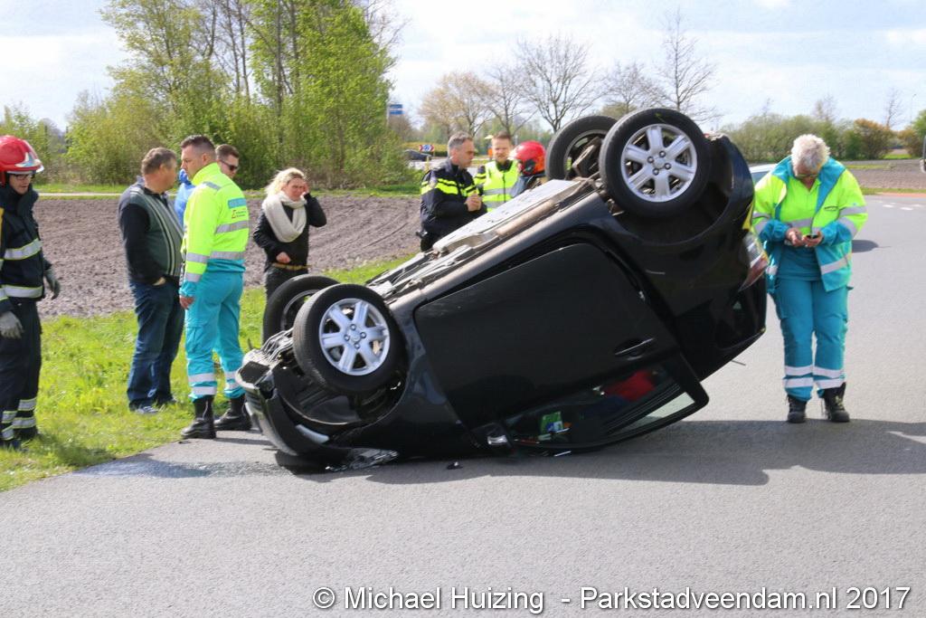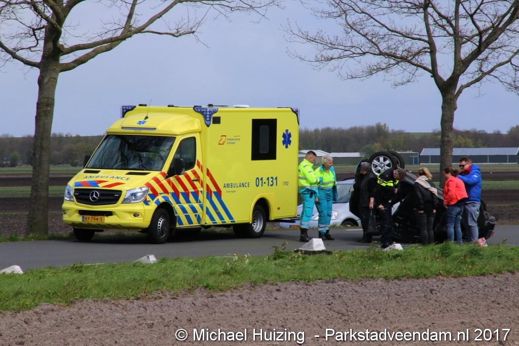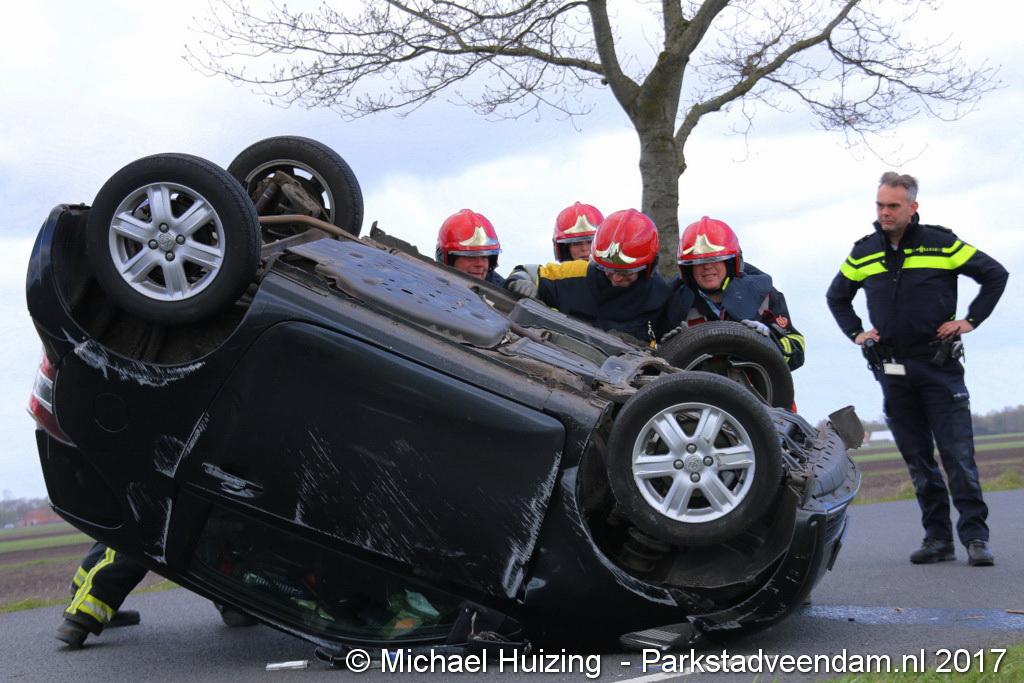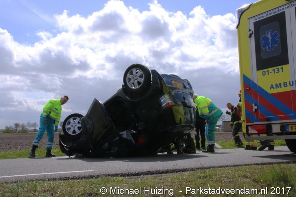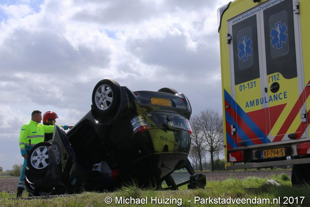 Auto op de kop Kielsterachterweg Veendam Wildervank