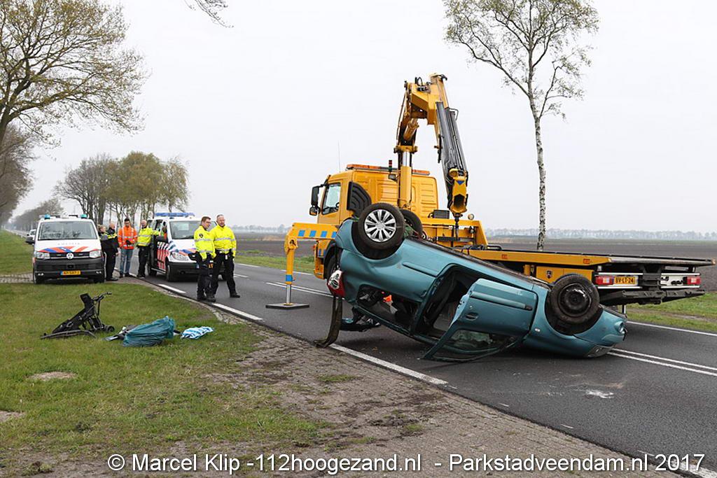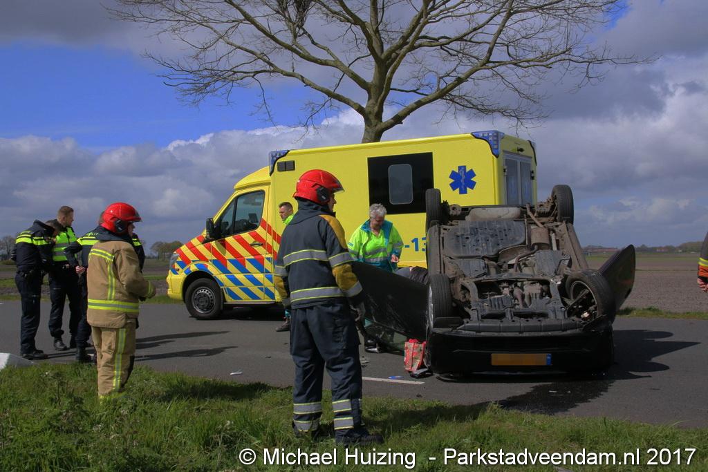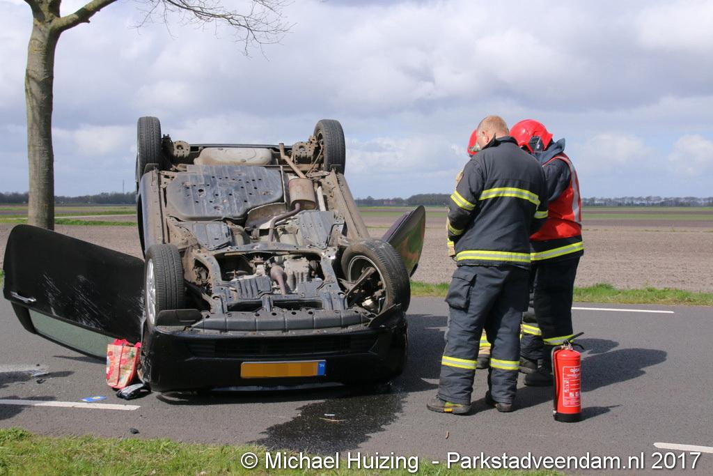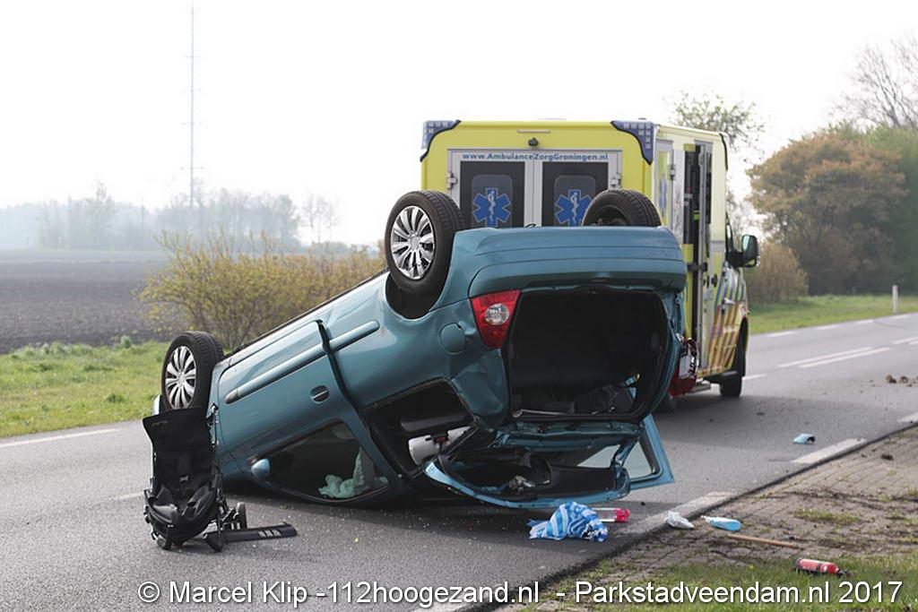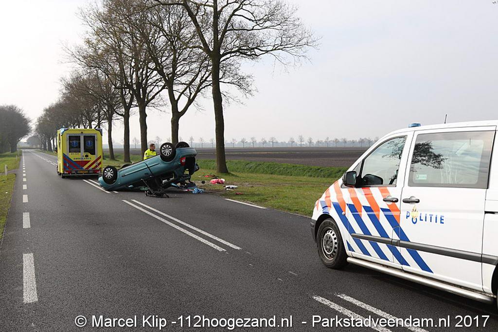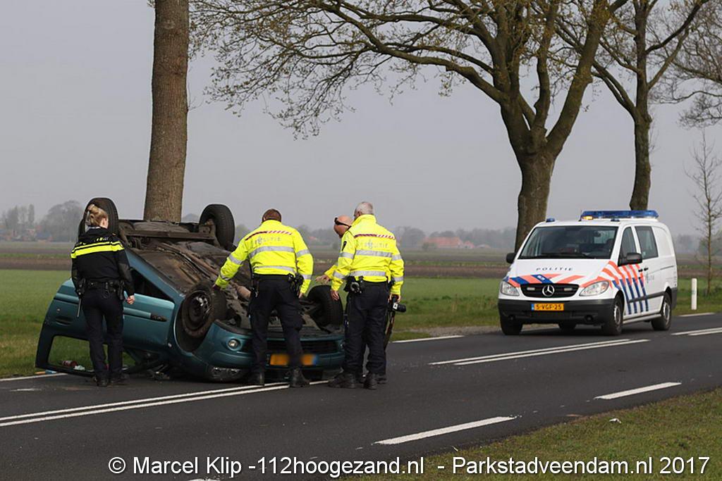 Auto op de kop Kielsterachterweg Veendam Wildervank