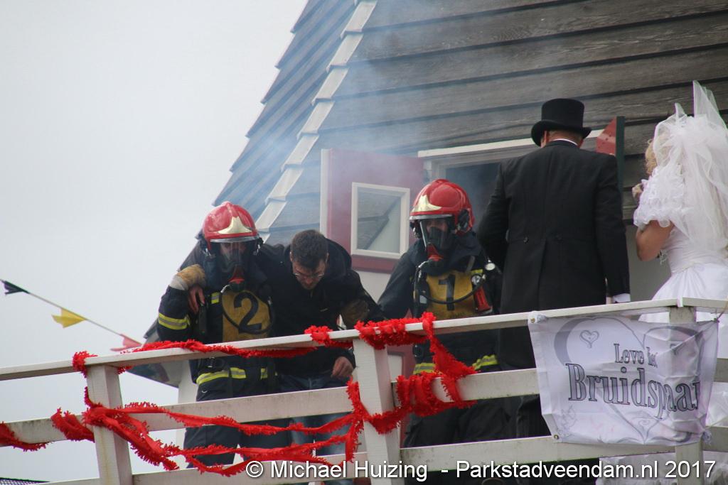 Tijdens een bruiloftsfeest in de molen aan de Hamweg breekt er brand uit. Het bruidspaar is samen met een fotograaf op de bovenverdieping en zij kunnen pas naar beneden als de brand is geblust. De feestgangers die beneden zijn moeten worden geëvacueerd. Tijdens de evacuatie wordt opa onwel en zakt in elkaar. Hij moet gereanimeerd worden.