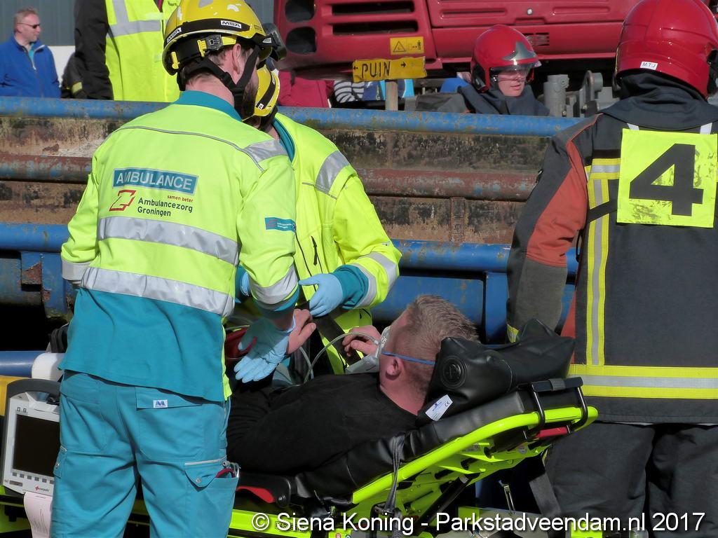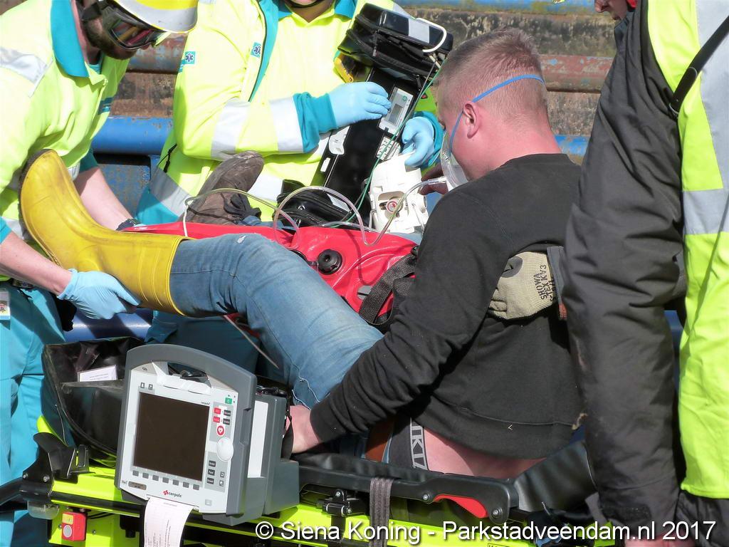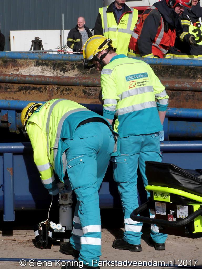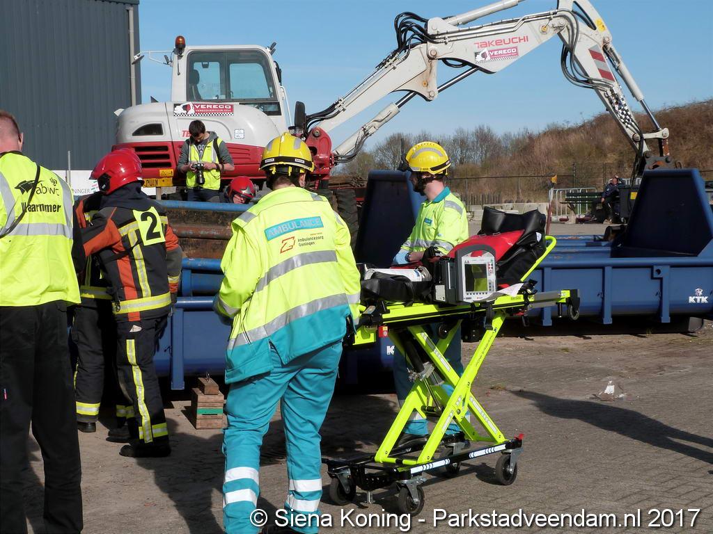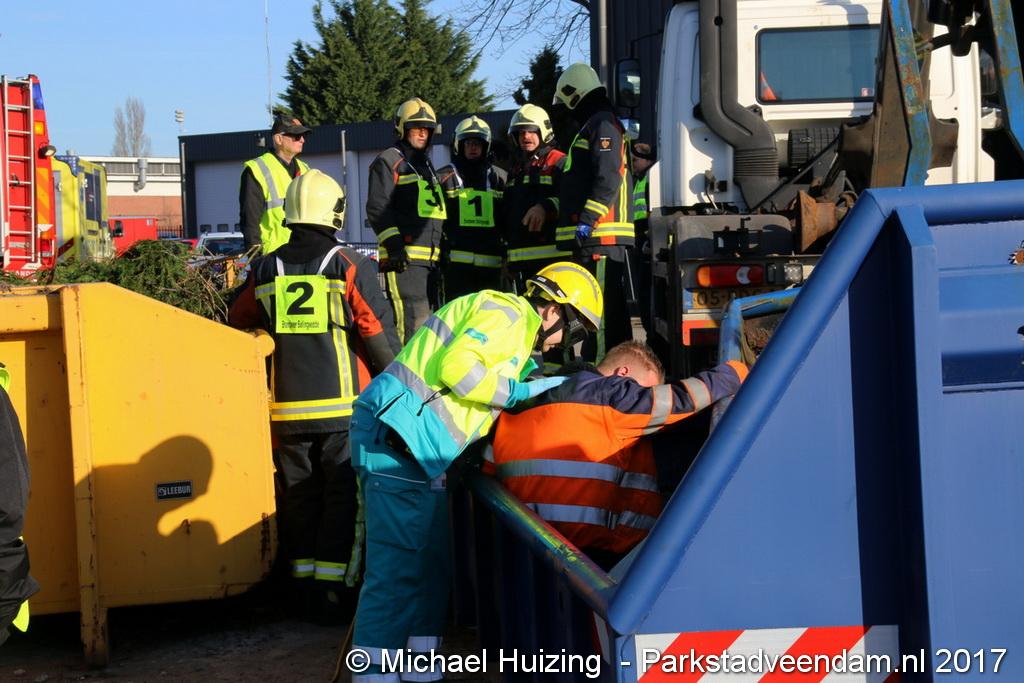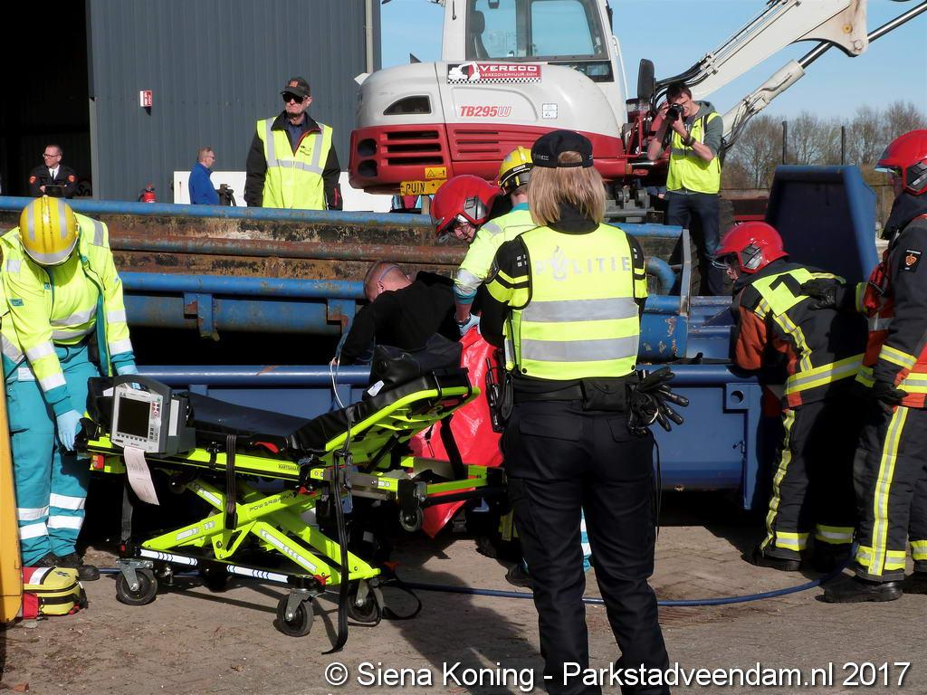 112 baan - Hier werd een gemeente medewerker aangetroffen die met een been bekneld lag onder een container. Naast de TS kwam er ook een HV ter plaatse. Tijdens het bevrijden van dit slachtoffer klinken er na enige tijd een aantal schoten van een jager. Door deze knallen schrikt een andere medewerker van de gemeente die bezig was een vijzel schoon te maken en raakt hierin bekneld. Vervolgens moet dit slachtoffer ook worden bevrijdt.