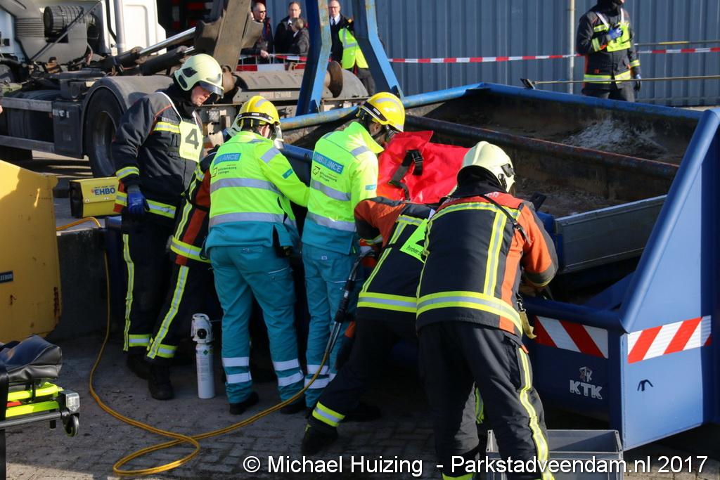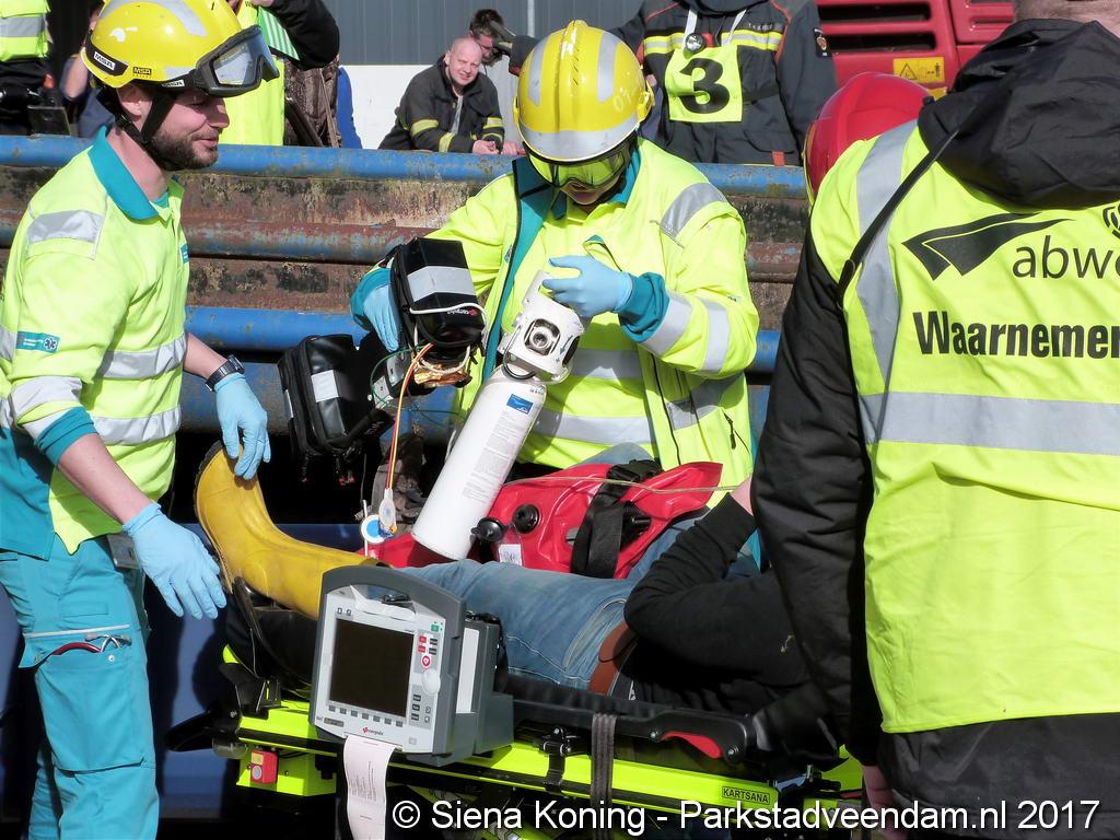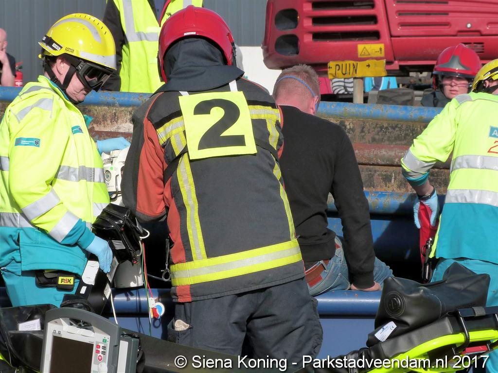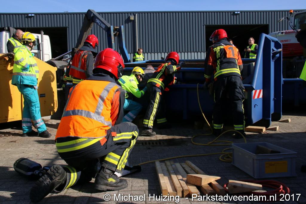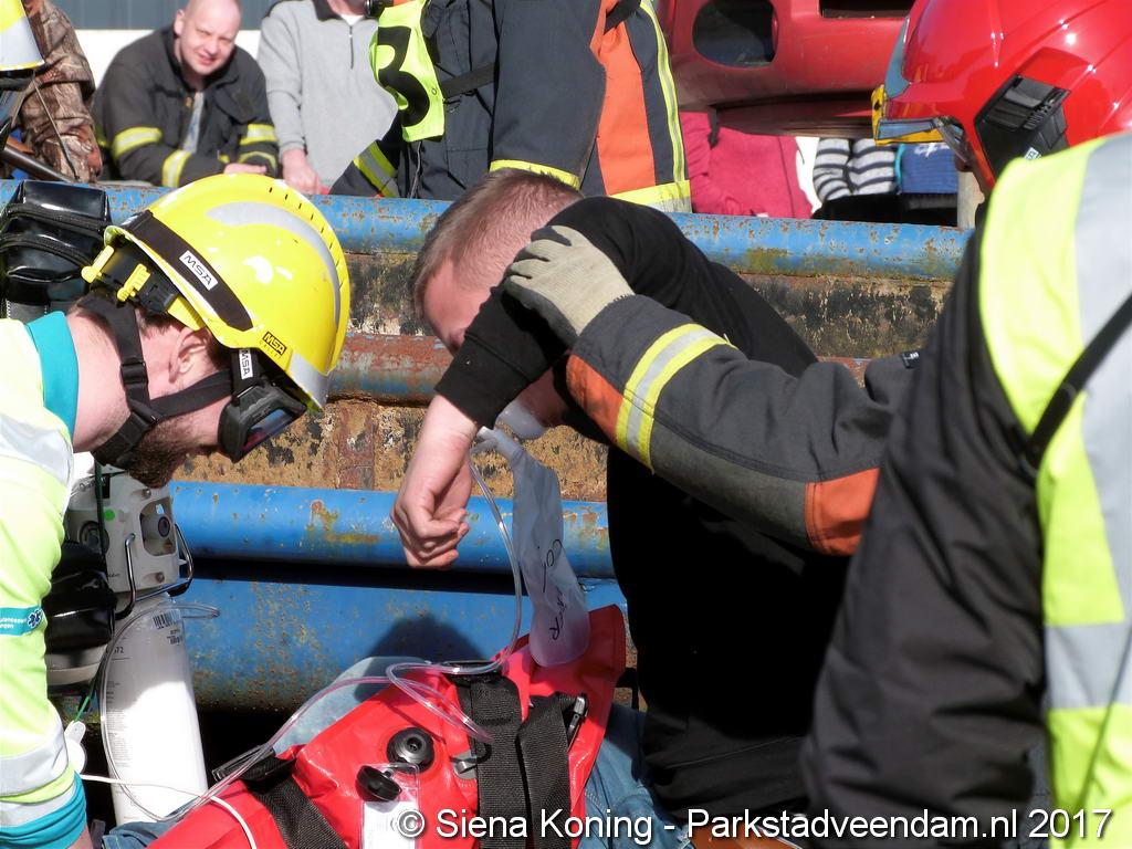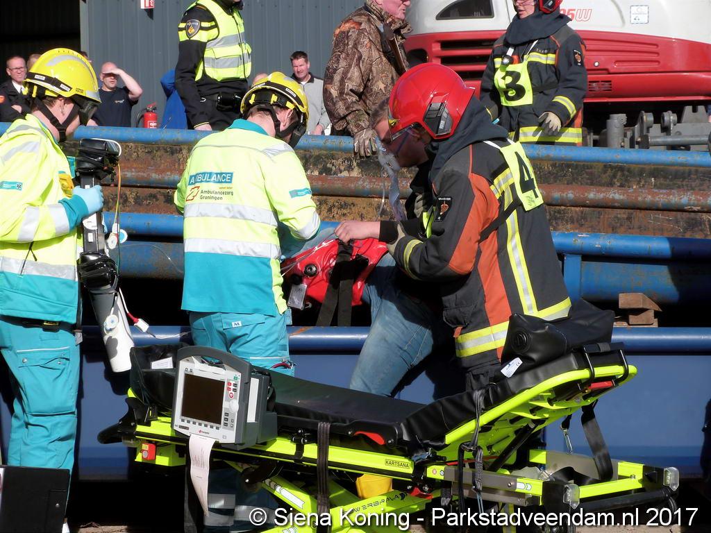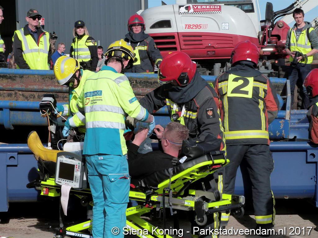 112 baan - Hier werd een gemeente medewerker aangetroffen die met een been bekneld lag onder een container. Naast de TS kwam er ook een HV ter plaatse. Tijdens het bevrijden van dit slachtoffer klinken er na enige tijd een aantal schoten van een jager. Door deze knallen schrikt een andere medewerker van de gemeente die bezig was een vijzel schoon te maken en raakt hierin bekneld. Vervolgens moet dit slachtoffer ook worden bevrijdt.