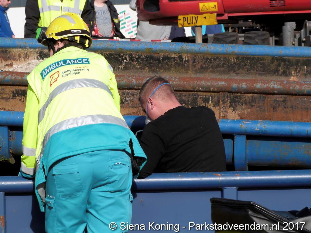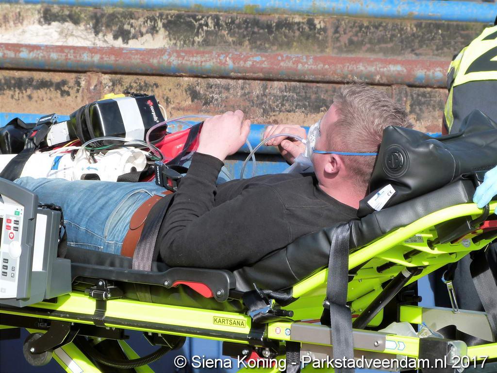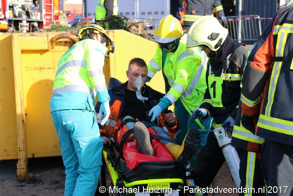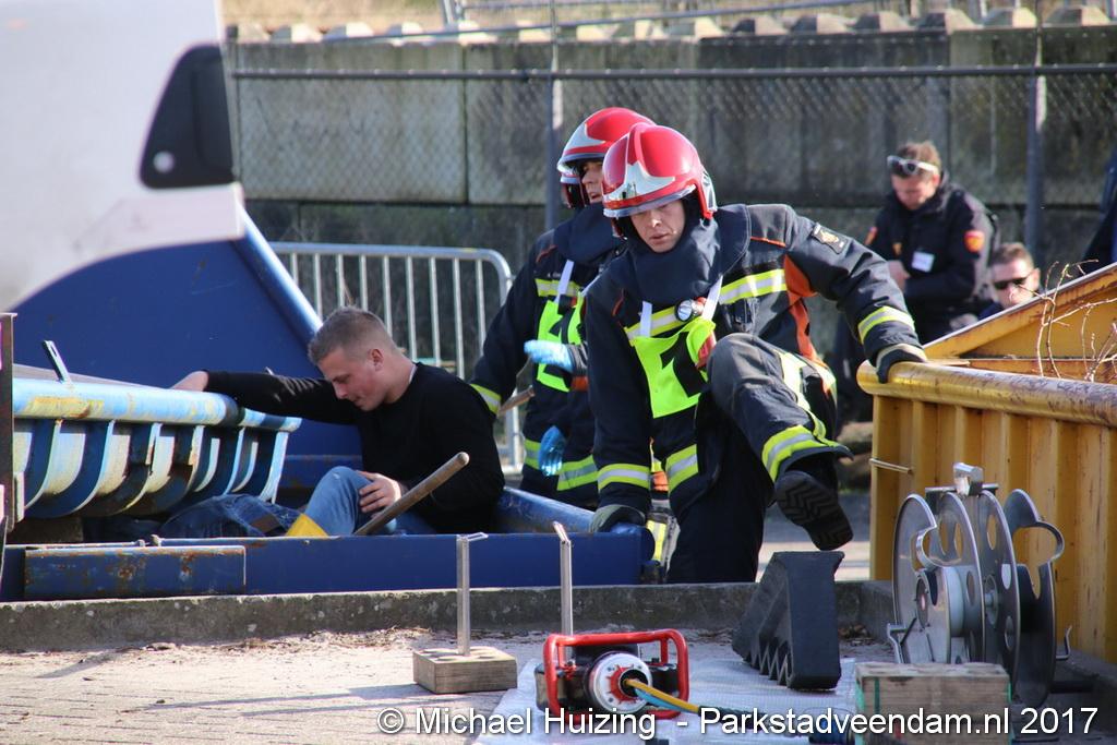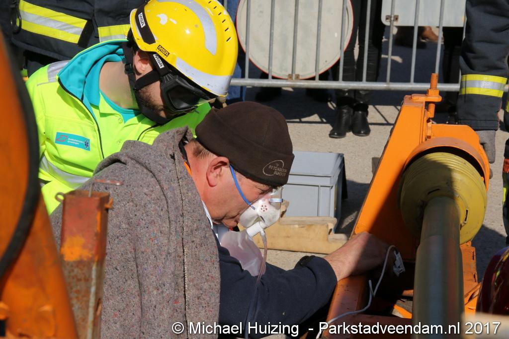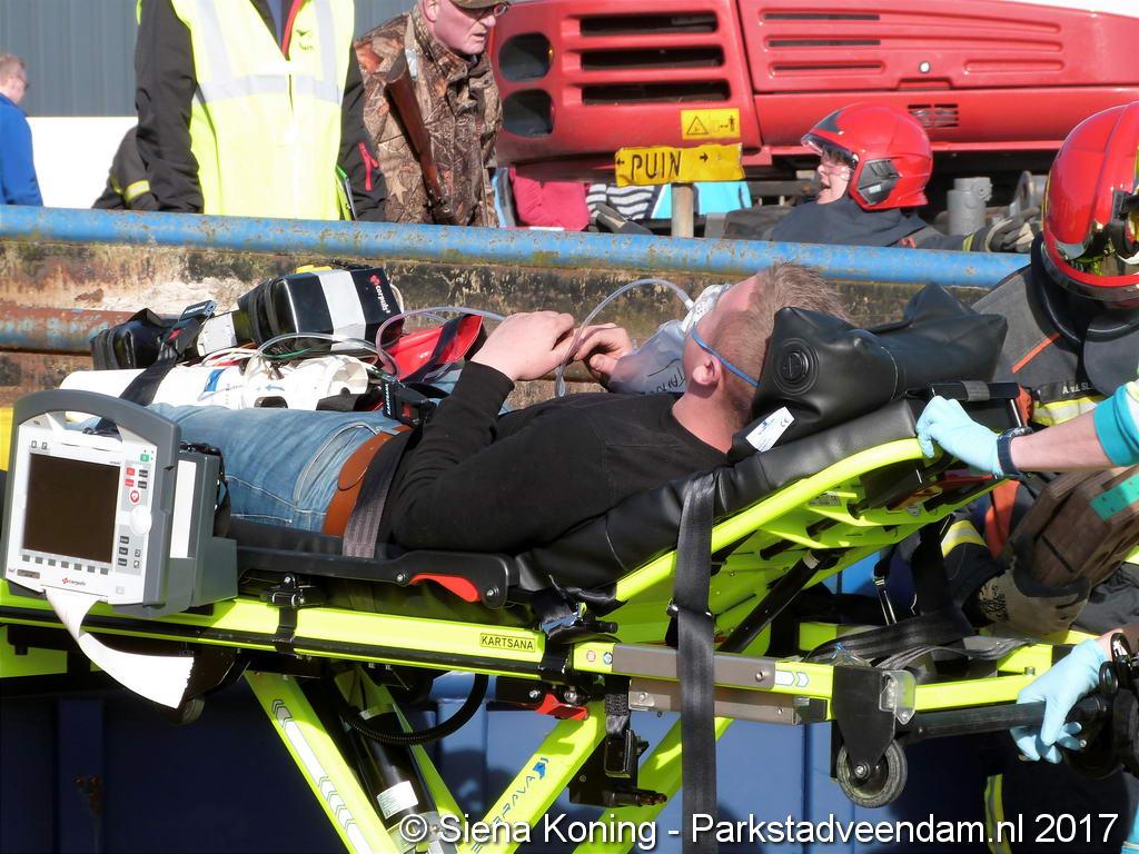 112 baan - Hier werd een gemeente medewerker aangetroffen die met een been bekneld lag onder een container. Naast de TS kwam er ook een HV ter plaatse. Tijdens het bevrijden van dit slachtoffer klinken er na enige tijd een aantal schoten van een jager. Door deze knallen schrikt een andere medewerker van de gemeente die bezig was een vijzel schoon te maken en raakt hierin bekneld. Vervolgens moet dit slachtoffer ook worden bevrijdt.
