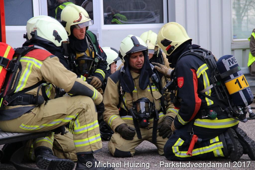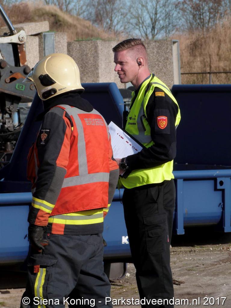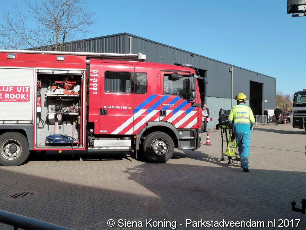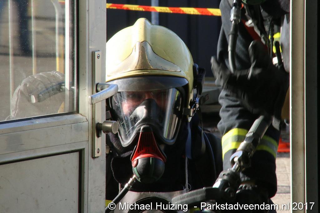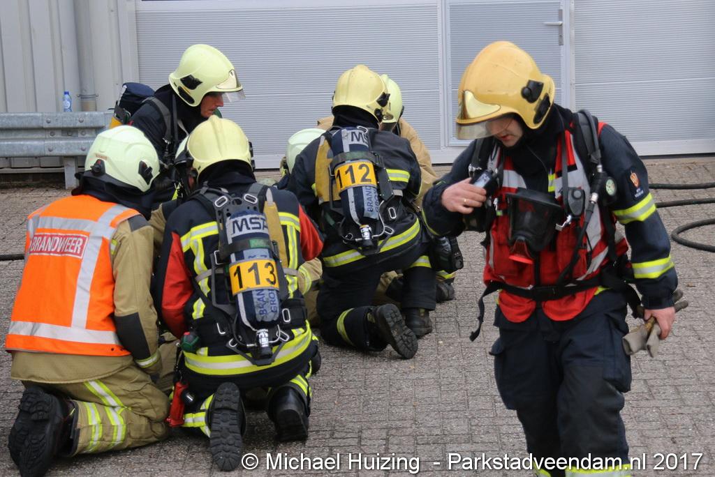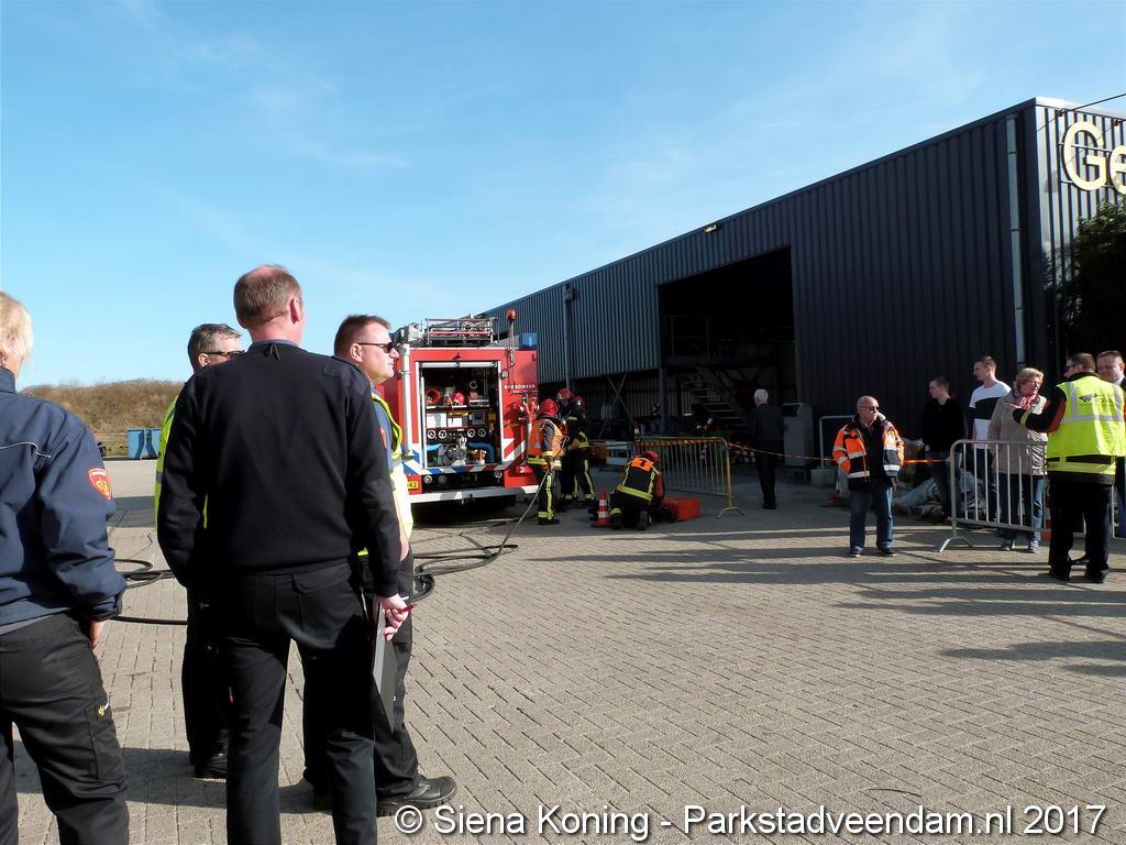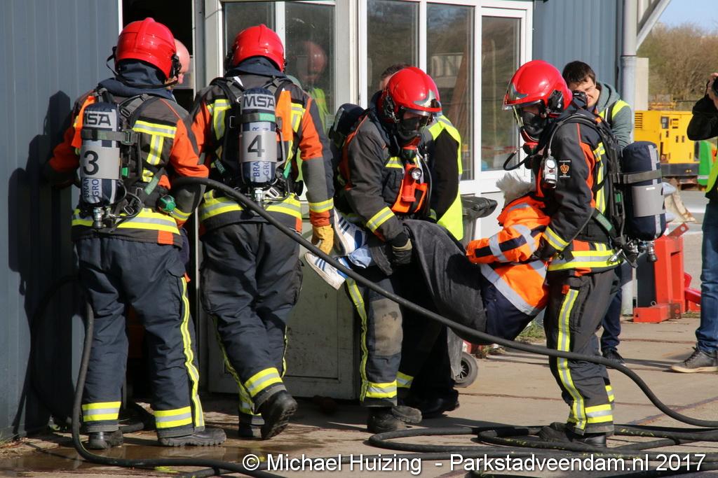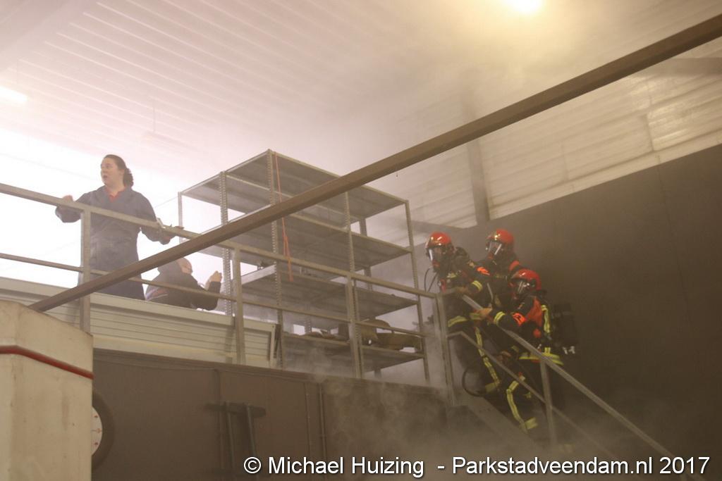 TAS-HD baan – In de werkplaats van de gemeente is een brand ontstaan in een ruimte achter de garage, de brand is doorgeslagen naar de eerste verdieping. In de garage ligt een slachtoffer die geprobeerd heeft de brand te blussen. Dit lukte niet en tijdens de vlucht naar buiten strompelt ze en raakt gewond. Dit slachtoffer was in het bezit van een sleutelbos om de deuren te openen naar de ruimtes waar de brand woedde. Naast het slachtoffer in de garage was er nog een persoon op de zolder aan het werk, deze was aan het schuren en droeg gehoorbescherming waardoor zij in eerste instantie niet meekrijgt dat er brand is. Een derde slachtoffer, die onwel is geraakt door rookinademing ligt boven aan de trap die toegang biedt naar de branddoorslag boven. In totaal drie personen die door de brandweer moesten worden gered.