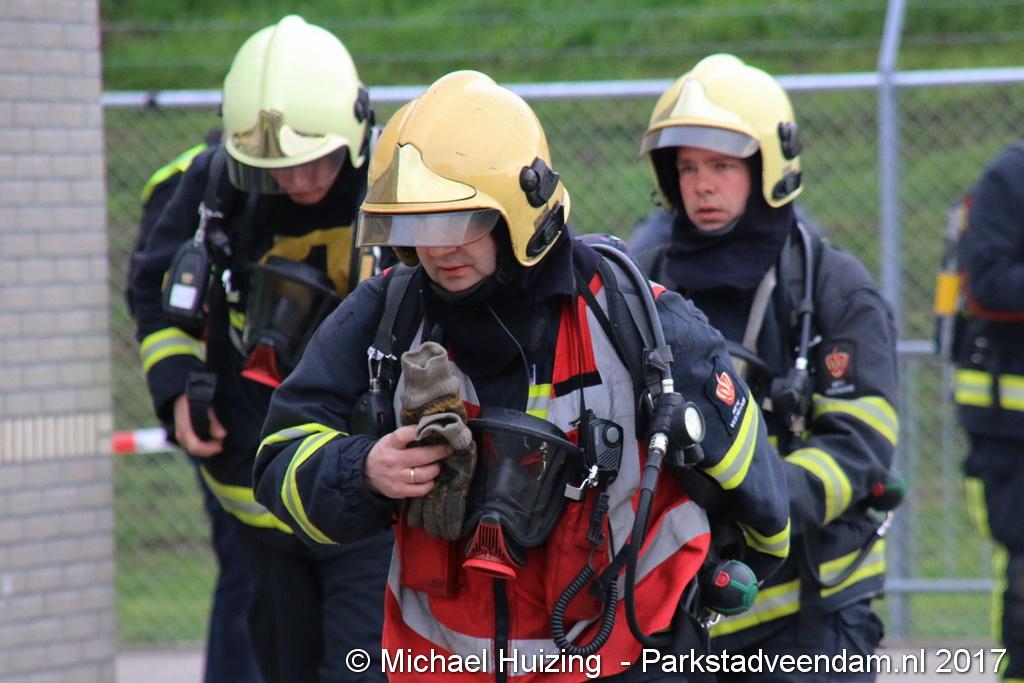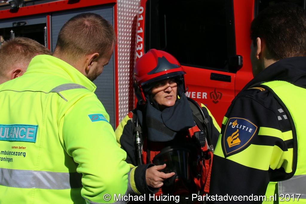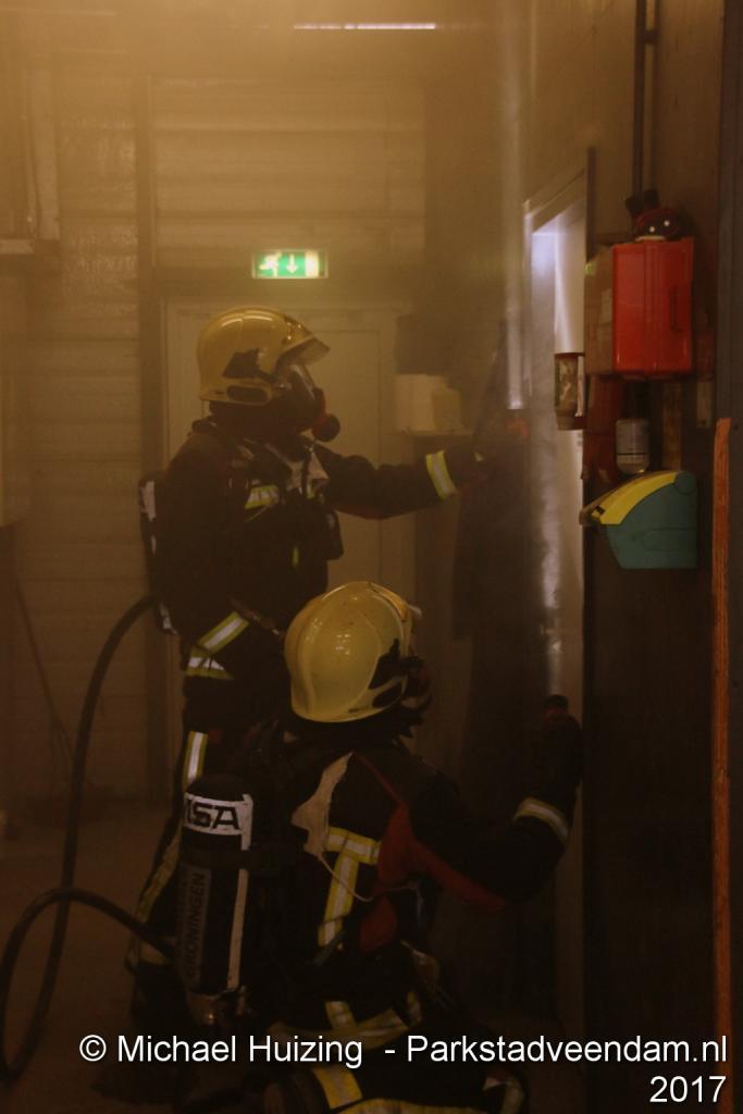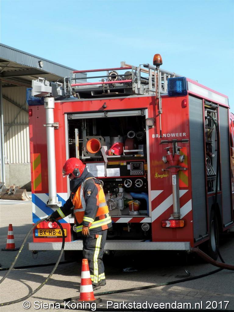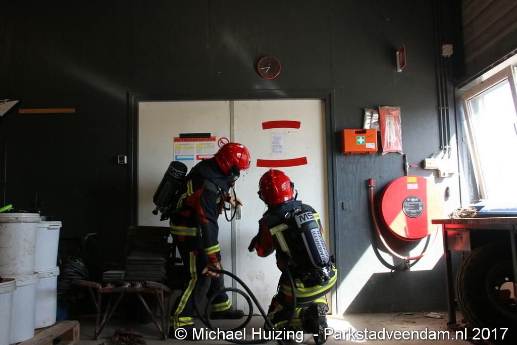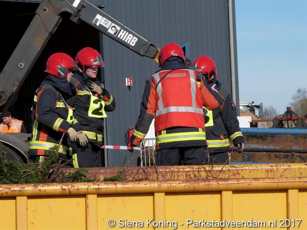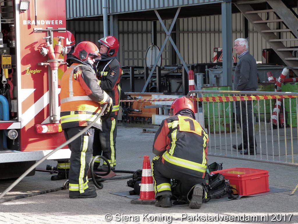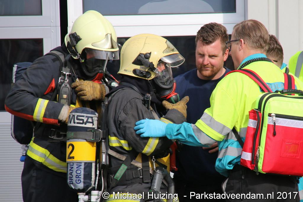 TAS-HD baan – In de werkplaats van de gemeente is een brand ontstaan in een ruimte achter de garage, de brand is doorgeslagen naar de eerste verdieping. In de garage ligt een slachtoffer die geprobeerd heeft de brand te blussen. Dit lukte niet en tijdens de vlucht naar buiten strompelt ze en raakt gewond. Dit slachtoffer was in het bezit van een sleutelbos om de deuren te openen naar de ruimtes waar de brand woedde. Naast het slachtoffer in de garage was er nog een persoon op de zolder aan het werk, deze was aan het schuren en droeg gehoorbescherming waardoor zij in eerste instantie niet meekrijgt dat er brand is. Een derde slachtoffer, die onwel is geraakt door rookinademing ligt boven aan de trap die toegang biedt naar de branddoorslag boven. In totaal drie personen die door de brandweer moesten worden gered.
