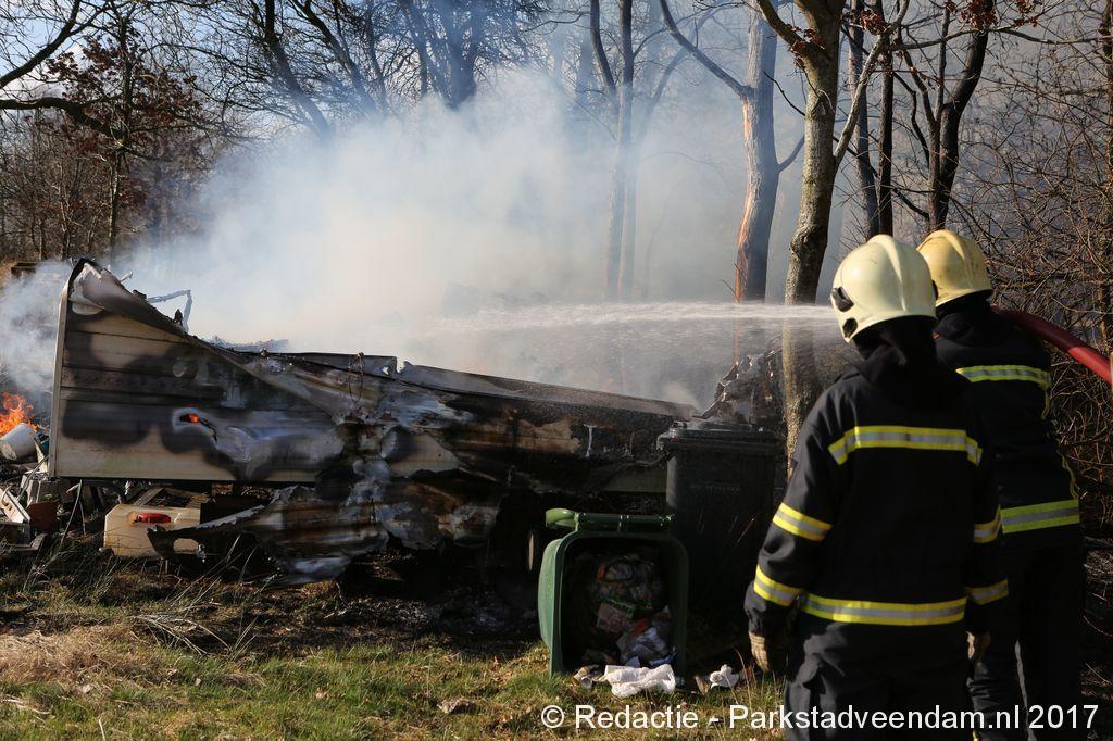 De brandweer van Veendam is zondagmiddag opgeroepen voor een brand aan de Bovenweg in Muntendam. Het bleek te gaan om een stacaravan, welke bij aankomst van de brandweer al voor de helft was opgebrand.