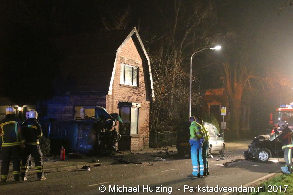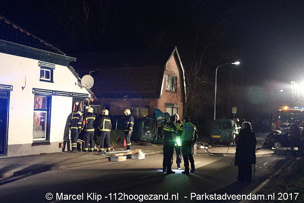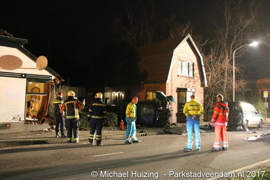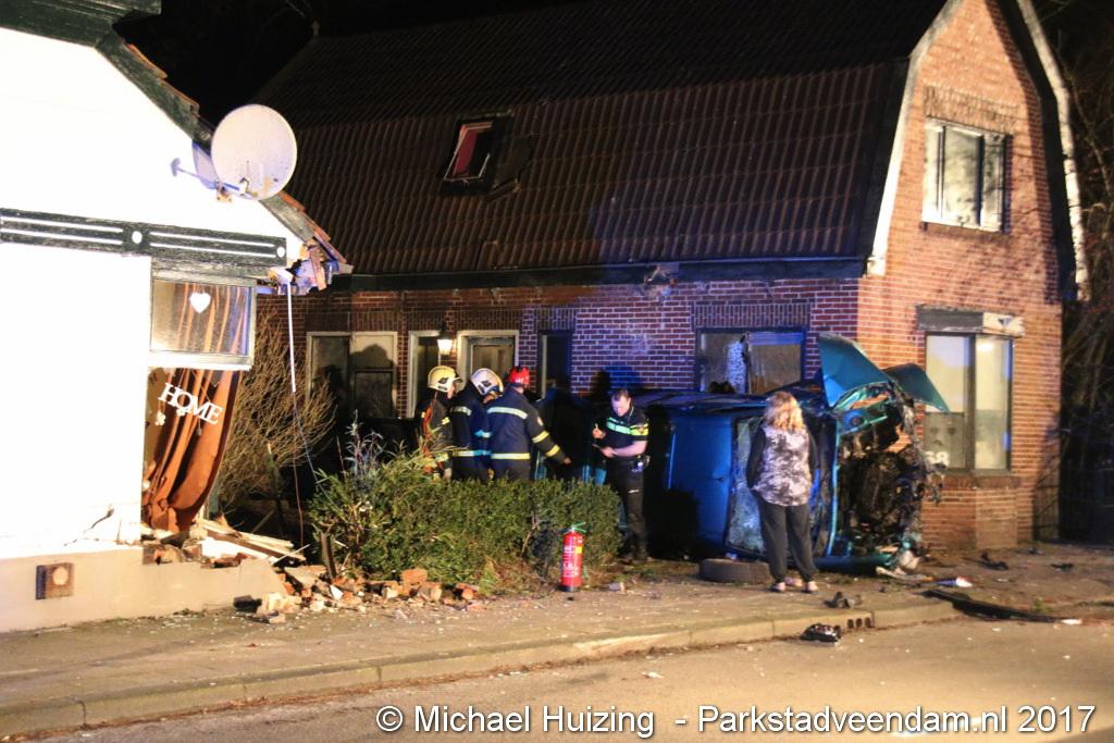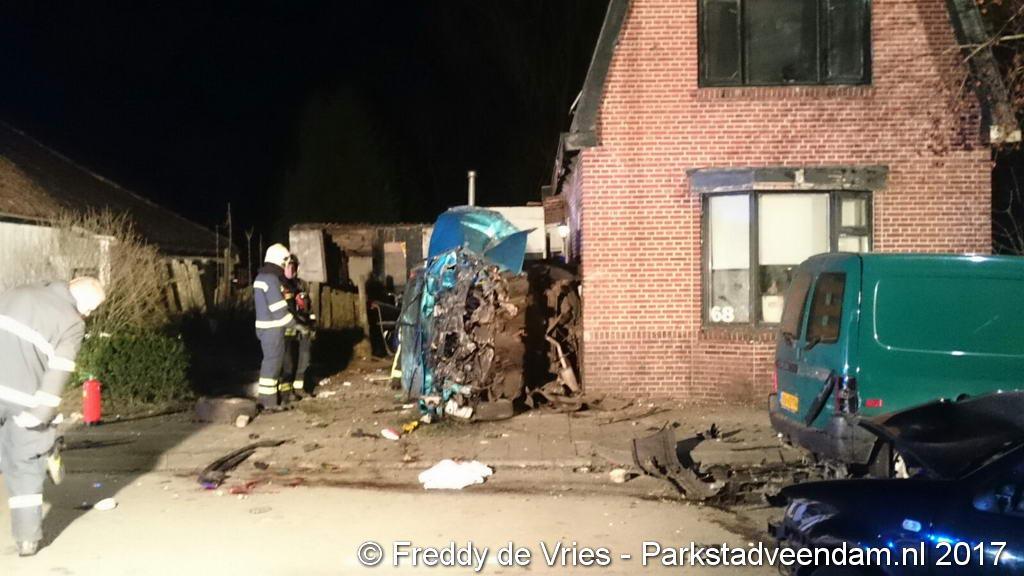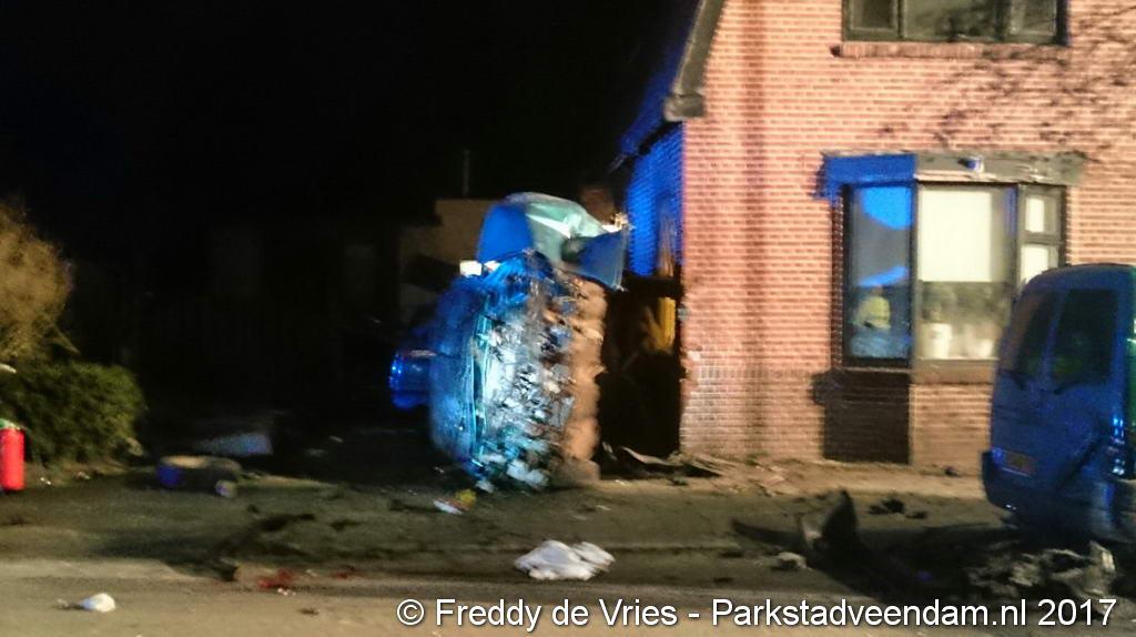 Auto ramt auto en twee woningen in Wildervank