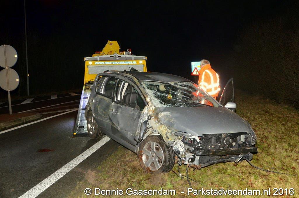 Zaterdagmorgen rond 10:30 uur raakte een personenauto in een droge sloot aan de Oosterweg in Muntendam. De toedraagt van deze enkelzijdige ongeval is onbekend. Of er gewonden zijn gevallen is onduidelijk.