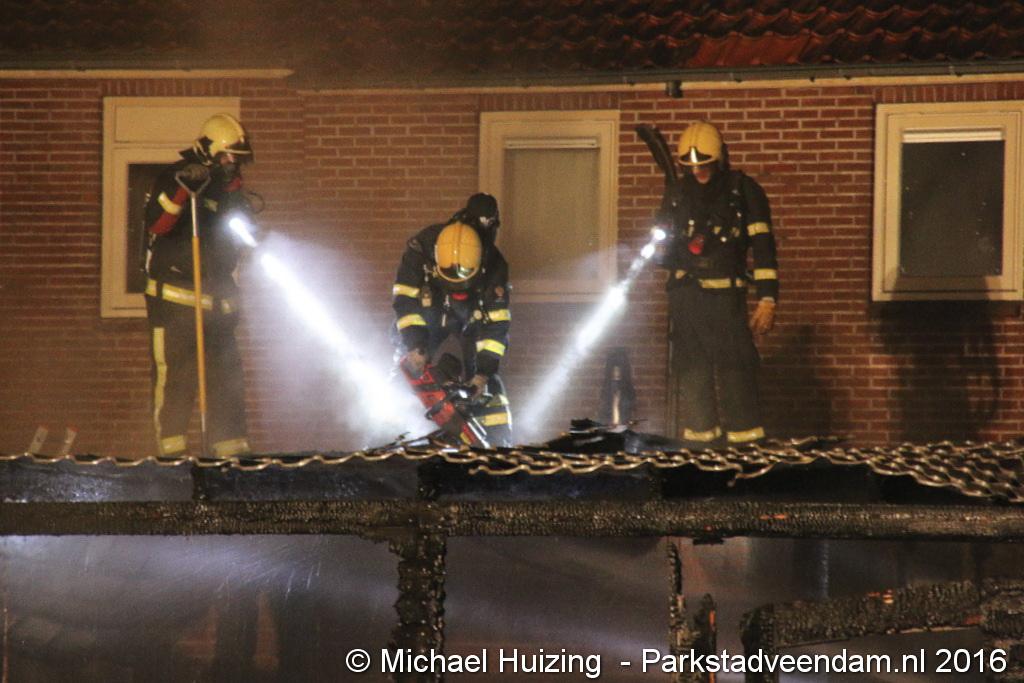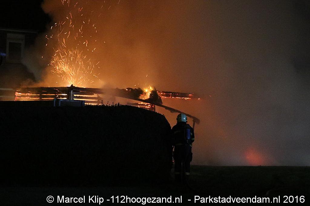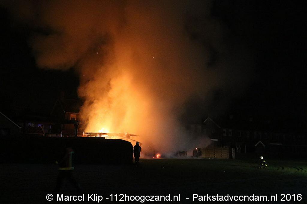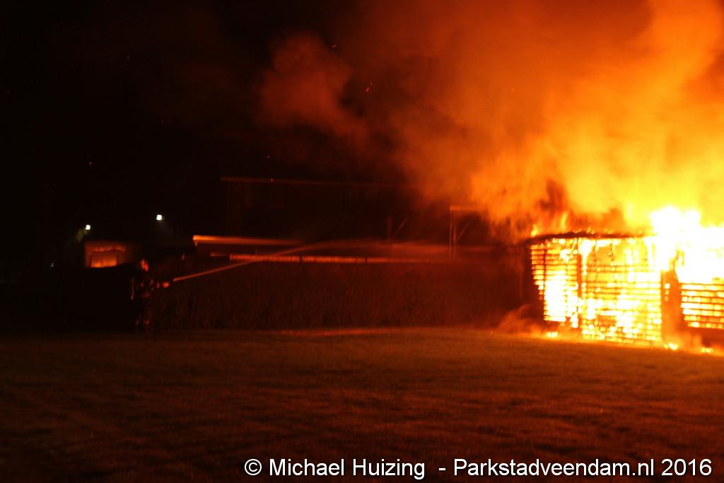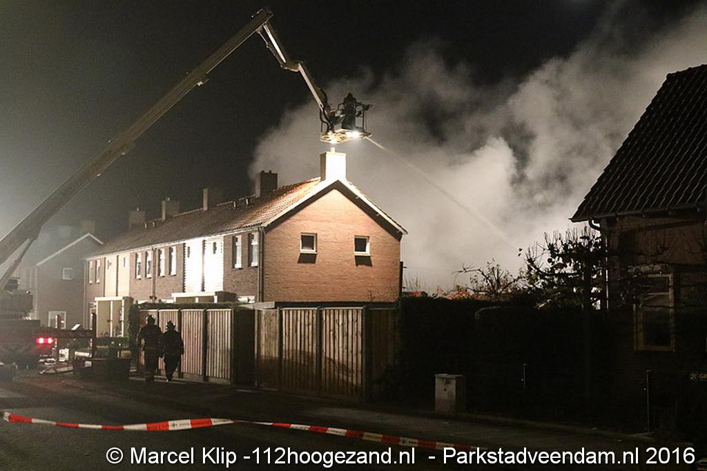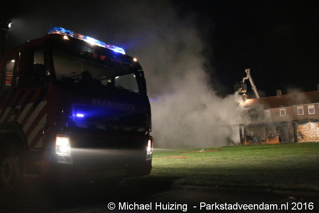 Persvoorlichter brandweer meld: We zijn de brand meester. De geschakelde schuurtjes achter meerdere woningen zijn door de brand grotendeels verloren gegaan. We blussen de gloeiende resten na. Door snel optreden hebben we de woningen kunnen behouden. We controleren en ventileren deze.