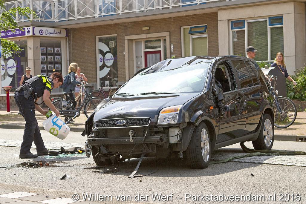Bij dit ongeval kwam ook de brandweer ter plaatse maar bij aankomst waren de drie personen al uit het voertuig.