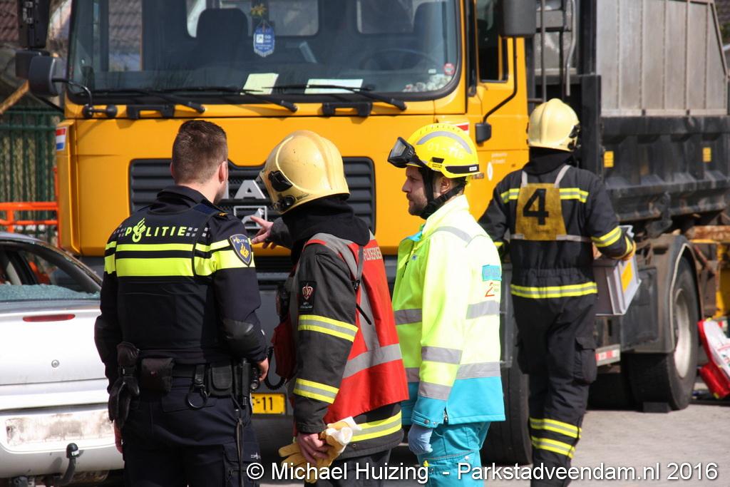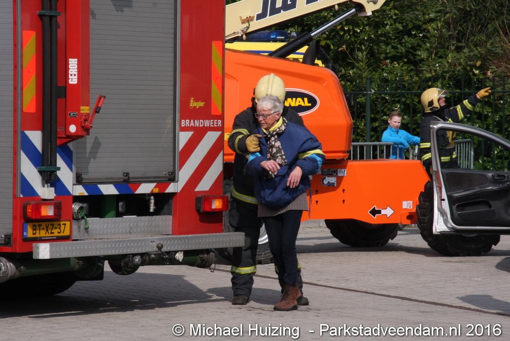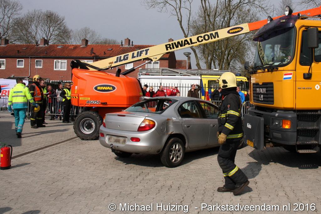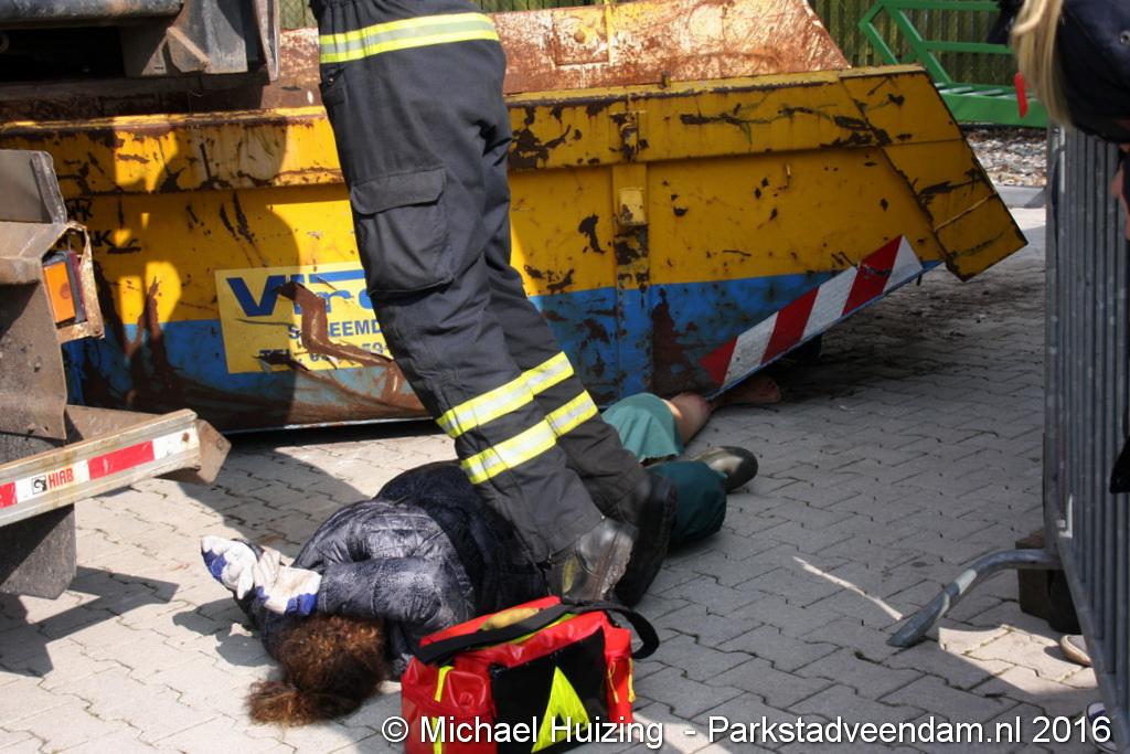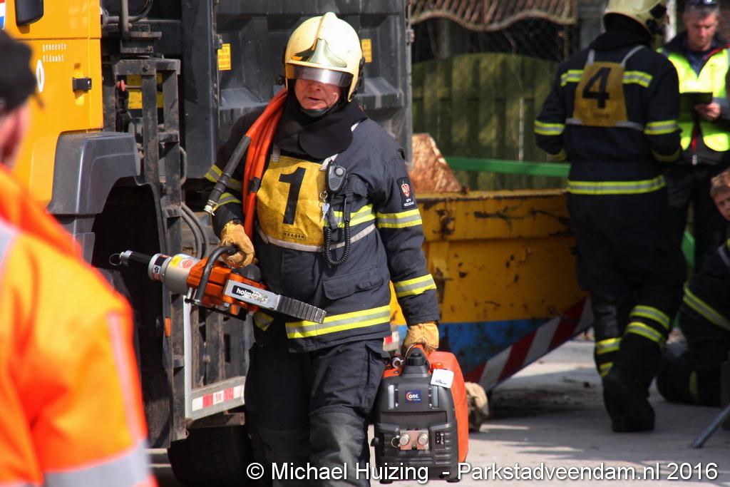 BEERTA - Brandweer Veendam heeft zaterdag 09 april meegedaan aan de 112 vaardigheidstoetsen in Beerta. De toetsen werden georganiseerd door de brandweerpost van Finsterwolde. Er deden 9 ploegen mee op de 112 baan, waar een scenario van een ongeval zo goed mogelijk volgens de richtlijnen moet worden opgelost. Vandaag ging het mis tijdens het snoeien van een aantal bomen nadat een dronken automobiliste een hoogwerker en een vrachtauto van de gemeente heeft geramd. De persoon in de hoogwerker zaagt zich in de arm en kan de hoogwerker niet meer bedienen. Achter de gemeente vrachtwagen raakt een persoon bekneld met een been onder een container.  Veendam wist de 2e plaats te behalen en is hiermee door naar de gewestelijke toets op 21 mei in Appingedam .