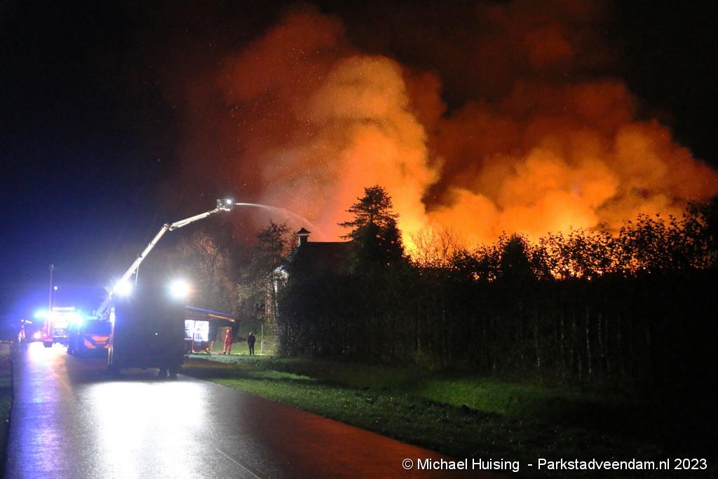Een grote brand heeft zondagavond de schuur van een woonboerderij volledig in de as gelegd. De brand werd rond 19.40 uur gemeld als schoorsteenbrand waarvoor brandweer Siddeburen en de hoogwerker van Winschoten werden gealarmeerd.