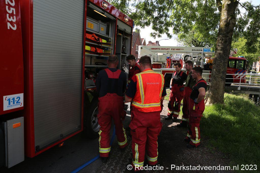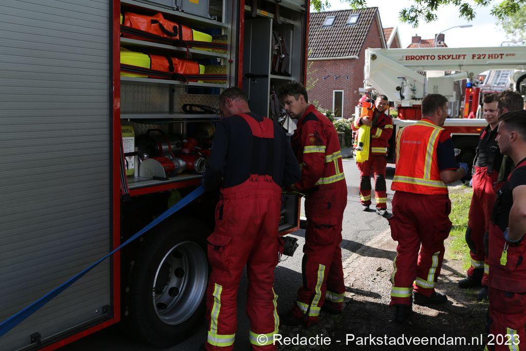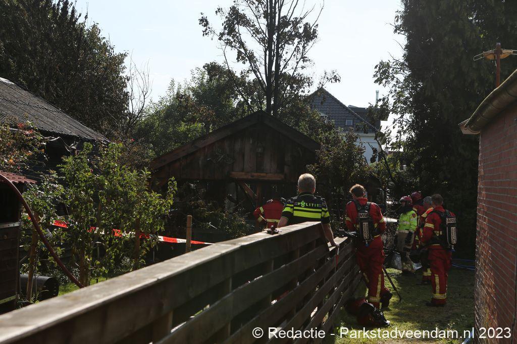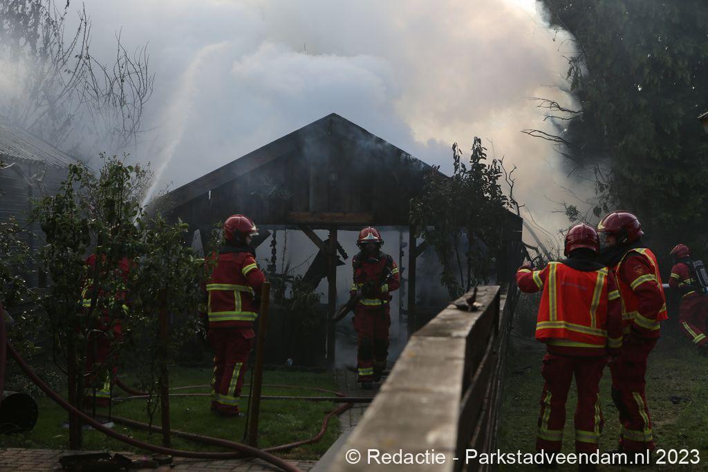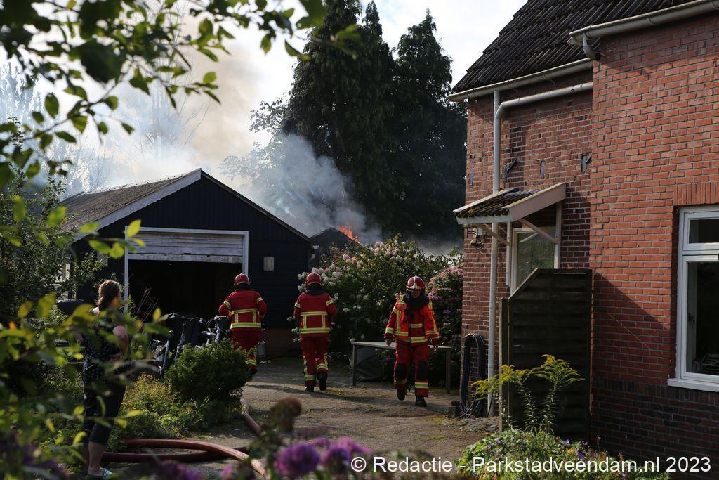 De Veendammer brandweer rukte uit met twee tankautospuiten en een hoogwerker en spoeden zich naar Wildervank waar reeds grote rookwolken te zien waren boven de tuinen. Met een snelle inzet werd de brand spoedig onder controle gebracht. Zoals meestal in schuurtjes stond er nog een gasfles in de schuur welke in veiligheid werd gebracht door de brandweermensen. De schuur brandde volledig af en een naast gelegen schuur had lichte schade. Rond een uur of elf gingen de spuitgasten weer terug naar hun post.