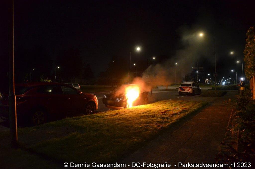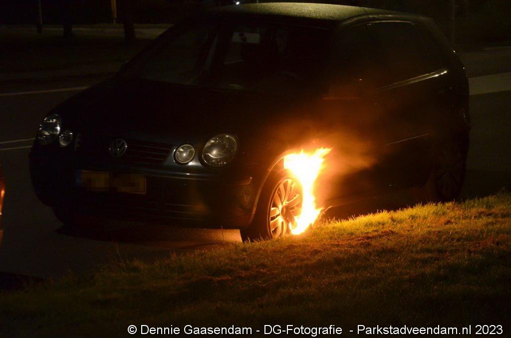 De brand, die begon bij de voorwiel, werd door de brandweer snel geblust. Ondanks de snelle blusactie liep de auto zware schade op. De politie houdt rekening met brandstichting.