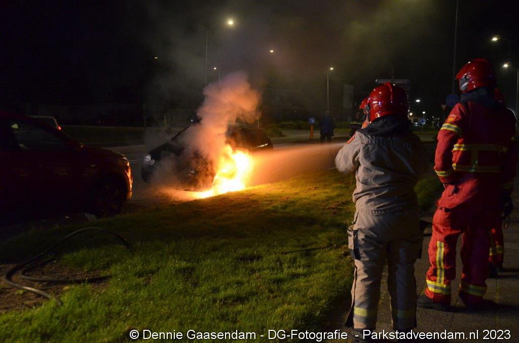 In de nacht van zaterdag op zondag werd de brandweer van Veendam opgeroepen voor een autobrand aan de J. Kazemierstraat in Veendam. Voorbijgangers merkten de beginnende brand op even voor half twee waarop 112 werd gebeld.