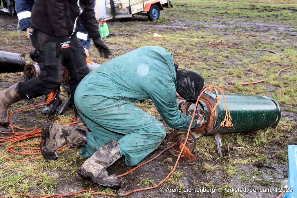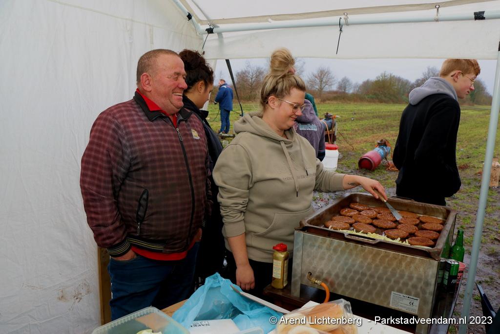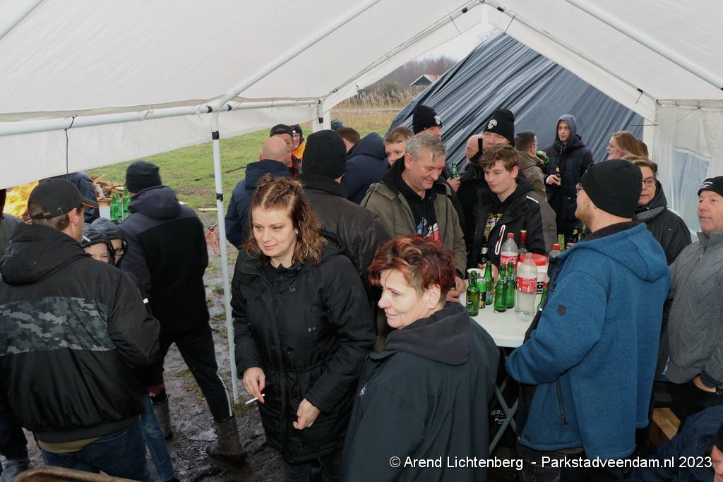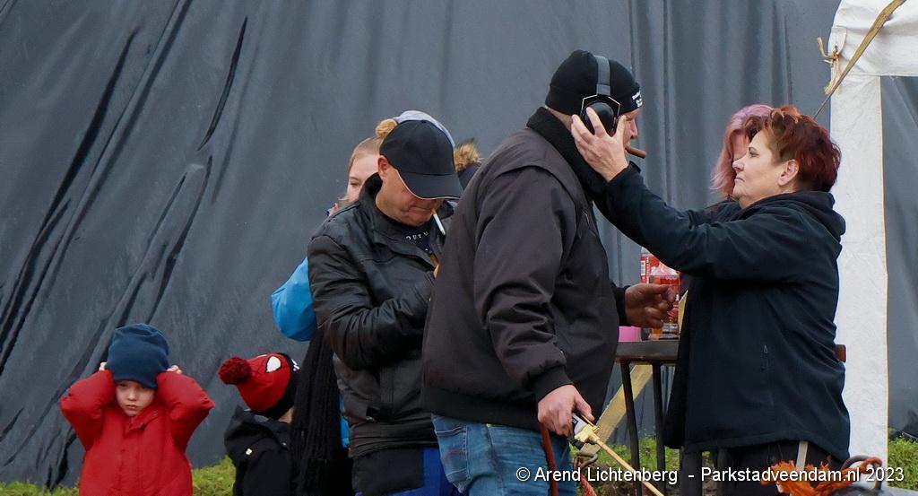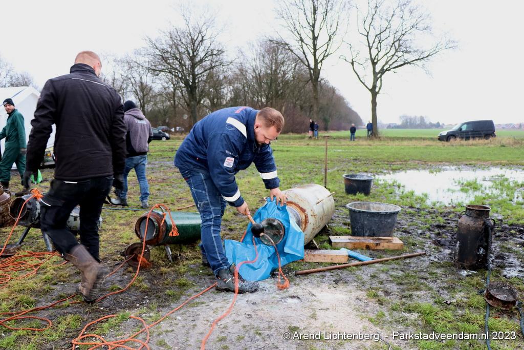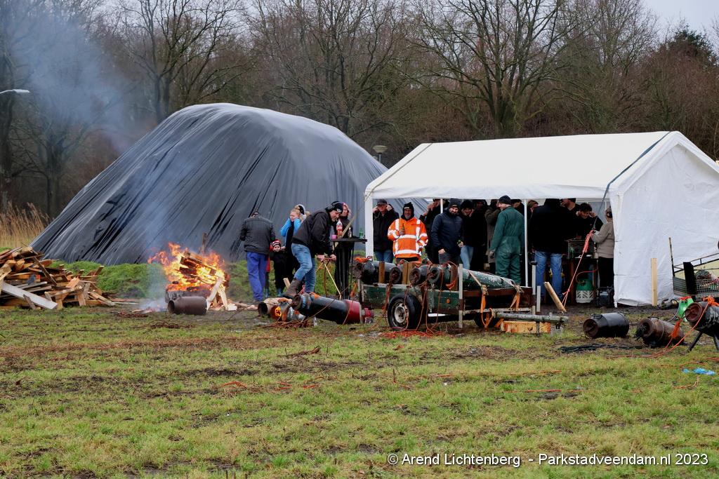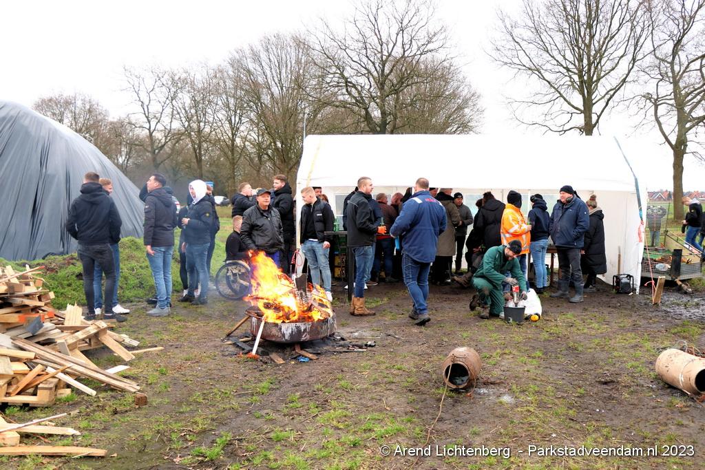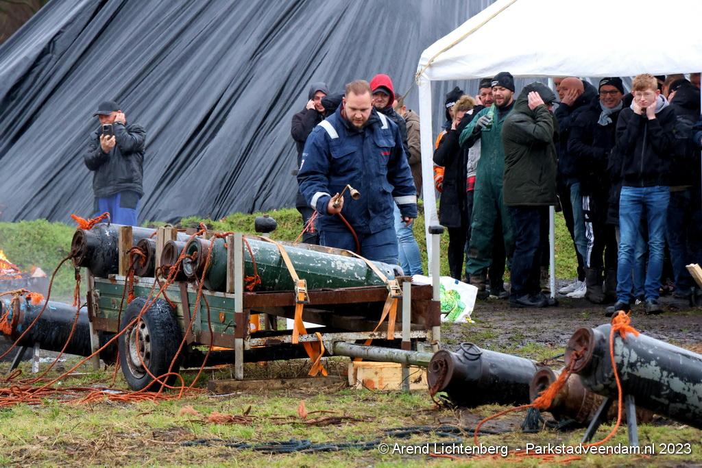 De Vrolijke Drinkers uit Muntendam zijn  sinds zondagmorgen aan het carbidschieten op het landbouwgrond Veenpad Veendam / Muntendam. Het carbidteam bestaat uit 10 Muntendammers.  Vele passerende fietsers bleven even staan kijken naar de carbidschieten.