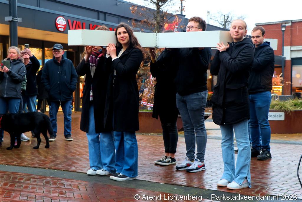 Veendammers kregen ook dit jaar weer de unieke mogelijkheid om Lutje Passion op een persoonlijke manier te beleven. Donderdagavond werd er verzameld op het Museumplein.