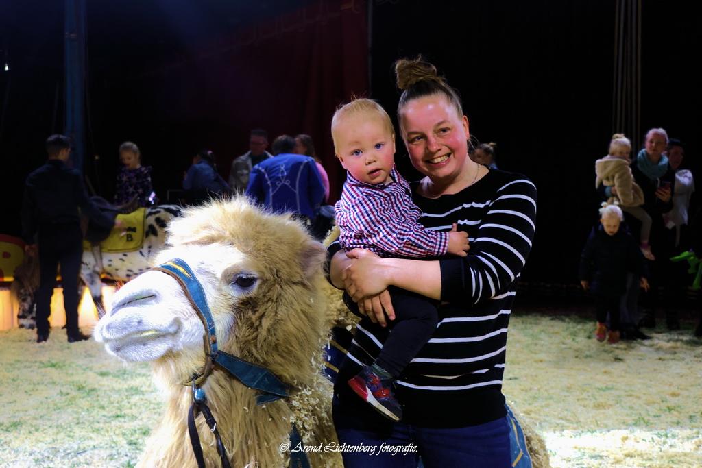 Het was zaterdag een drukke dag voor Circus Renz. Het was behoorlijk druk en het publiek genoot met volle teugen. In de pauze konden de kinderen op een ezel of op een kameel zitten voor een leuke foto.
