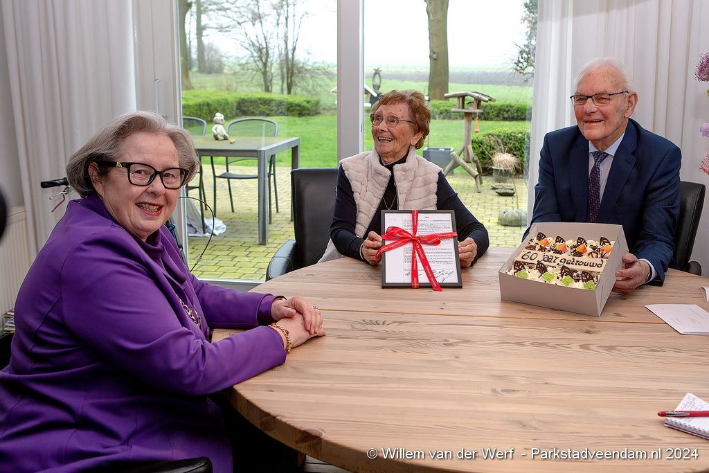 Vandaag woensdag 28 februari zijn de heer en mevrouw Sluis uit Veendam 60 jaar getrouwd. Burgemeester Sandra Korthuis feliciteerde het echtpaar thuis aan de Zuidwending namens de gemeente Veendam.