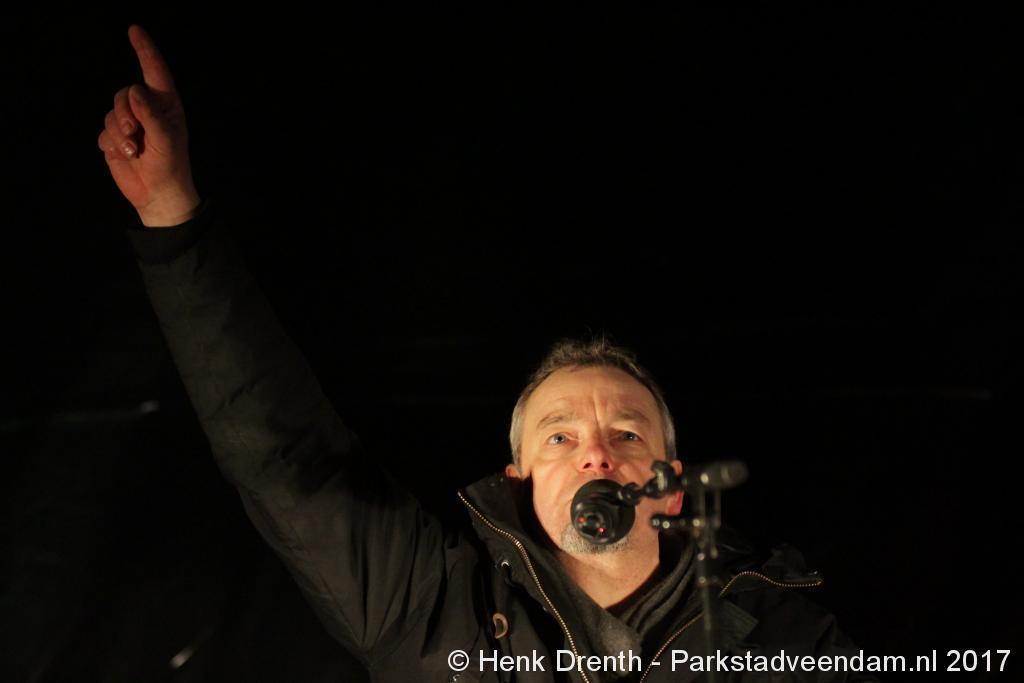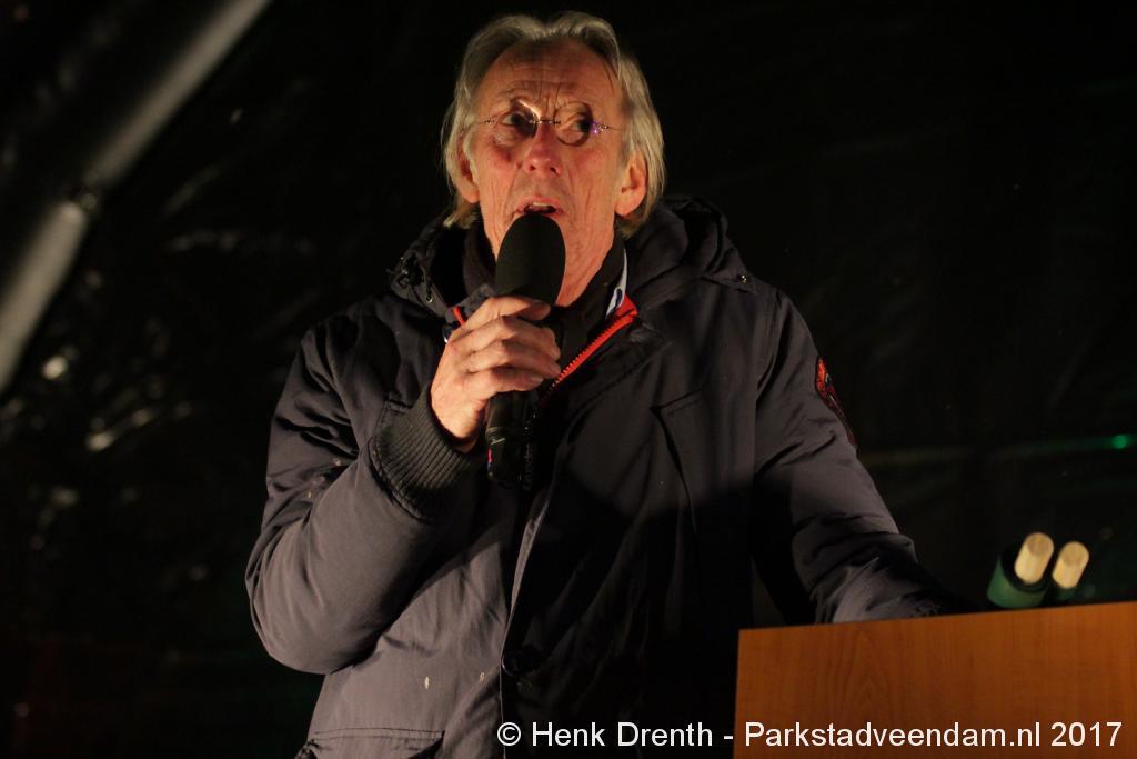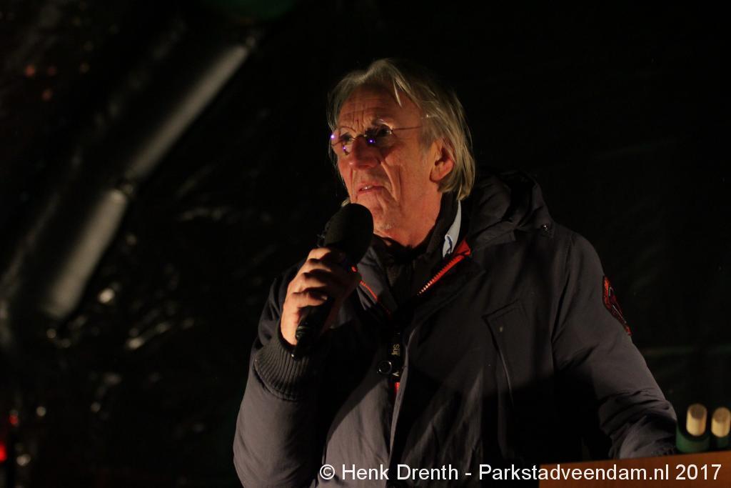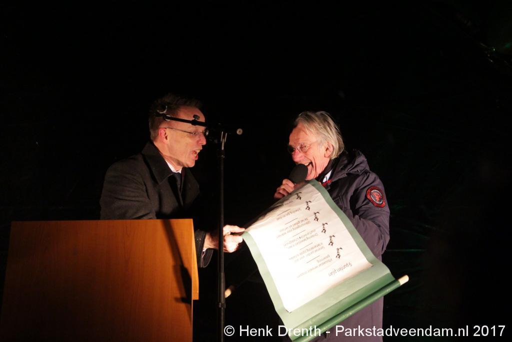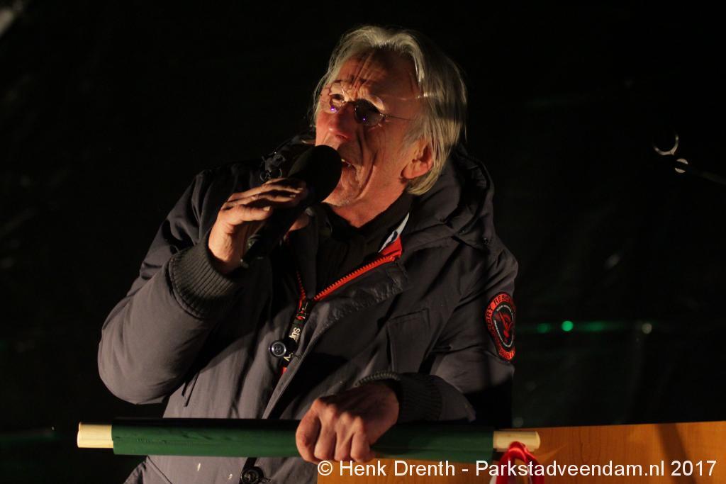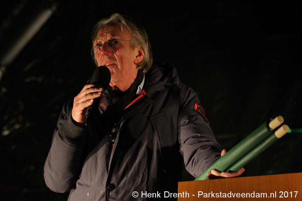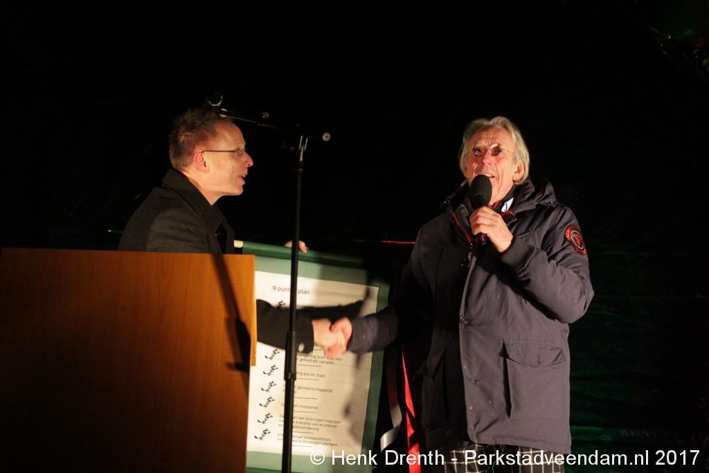 Na de tocht overhandigde cabaretier en geboren Groninger Freek de Jonge op het podium een petitie aan de Commissaris van de Koning René Paas.