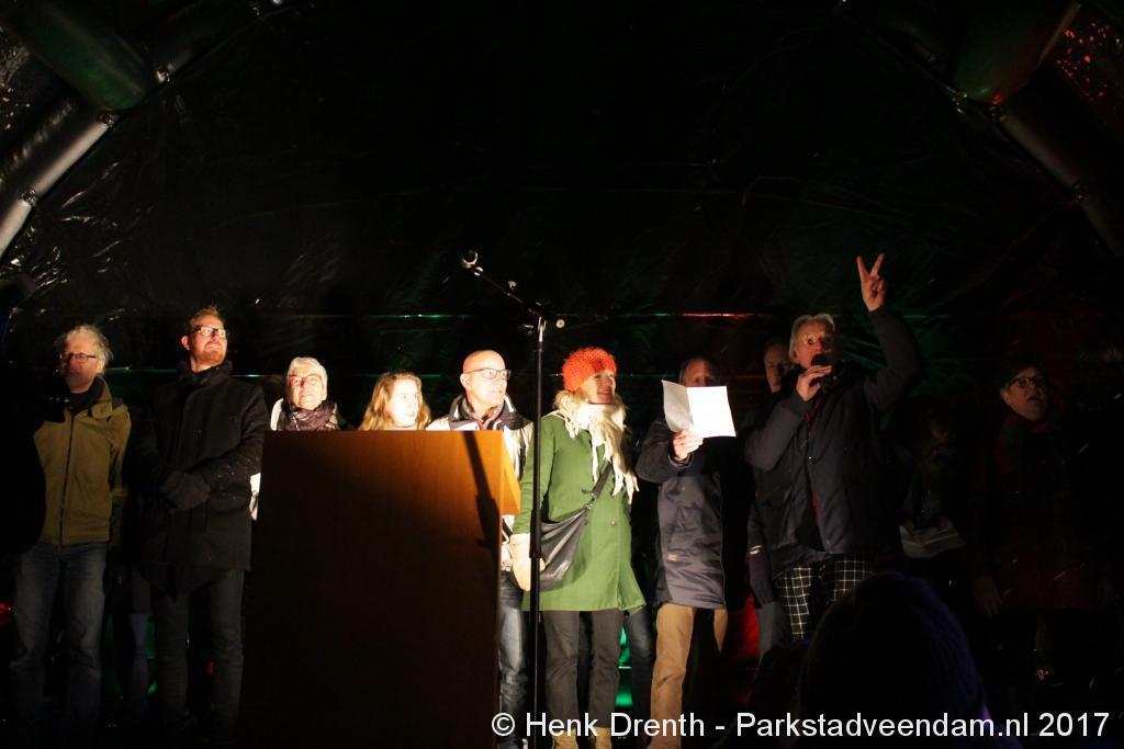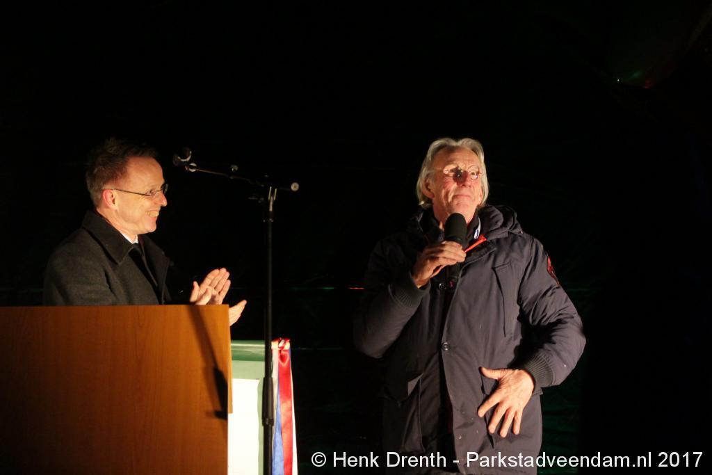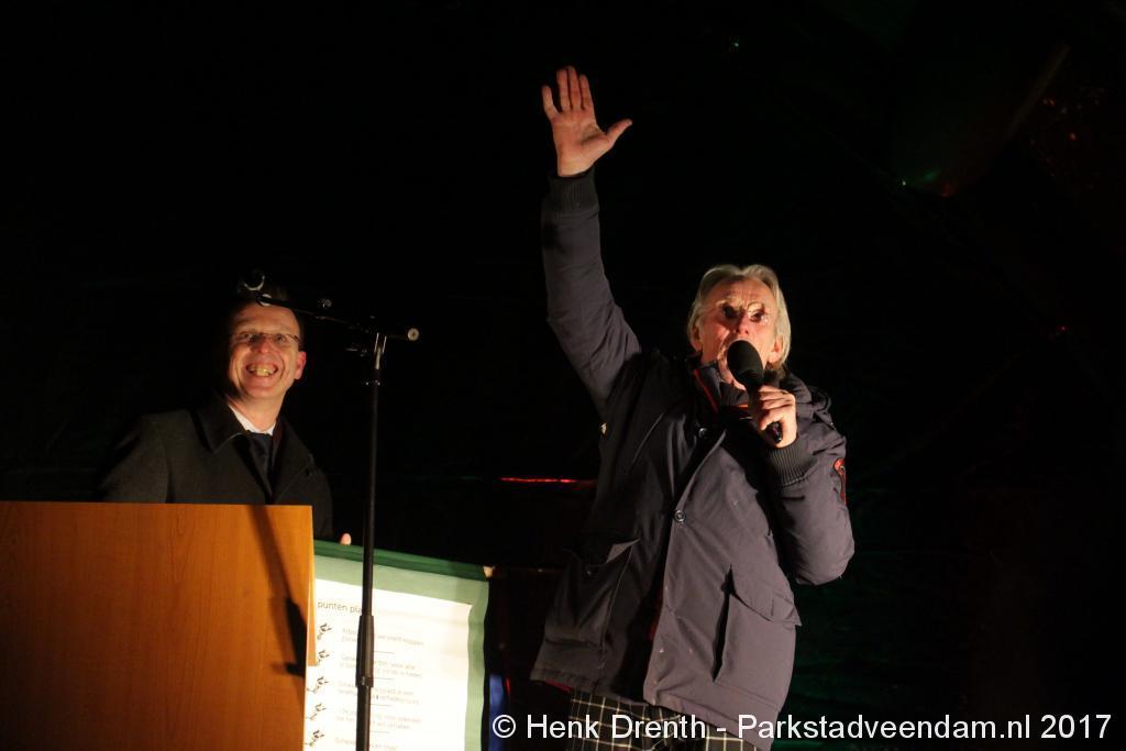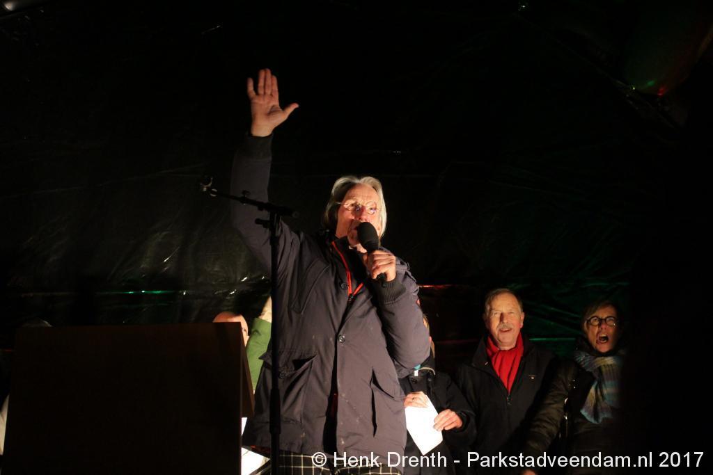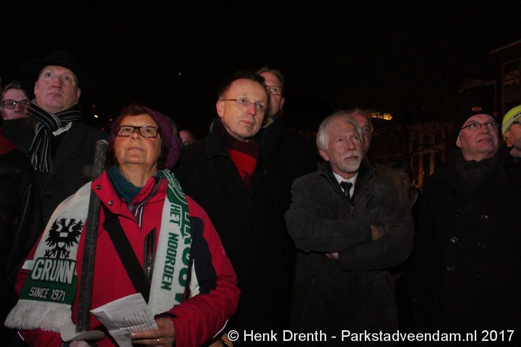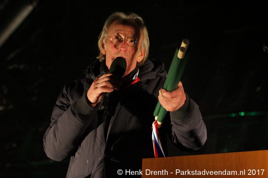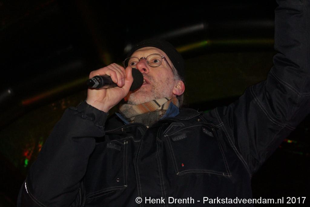 Na de tocht overhandigde cabaretier en geboren Groninger Freek de Jonge op het podium een petitie aan de Commissaris van de Koning René Paas.