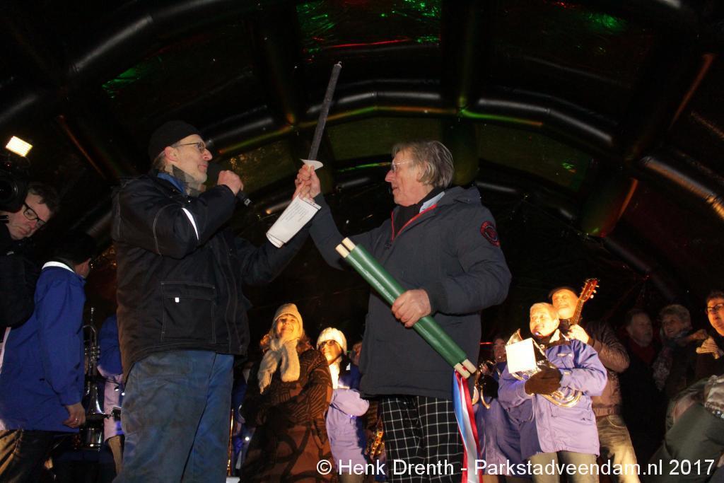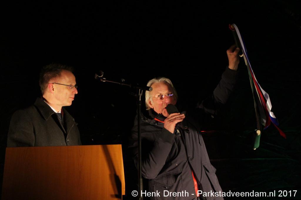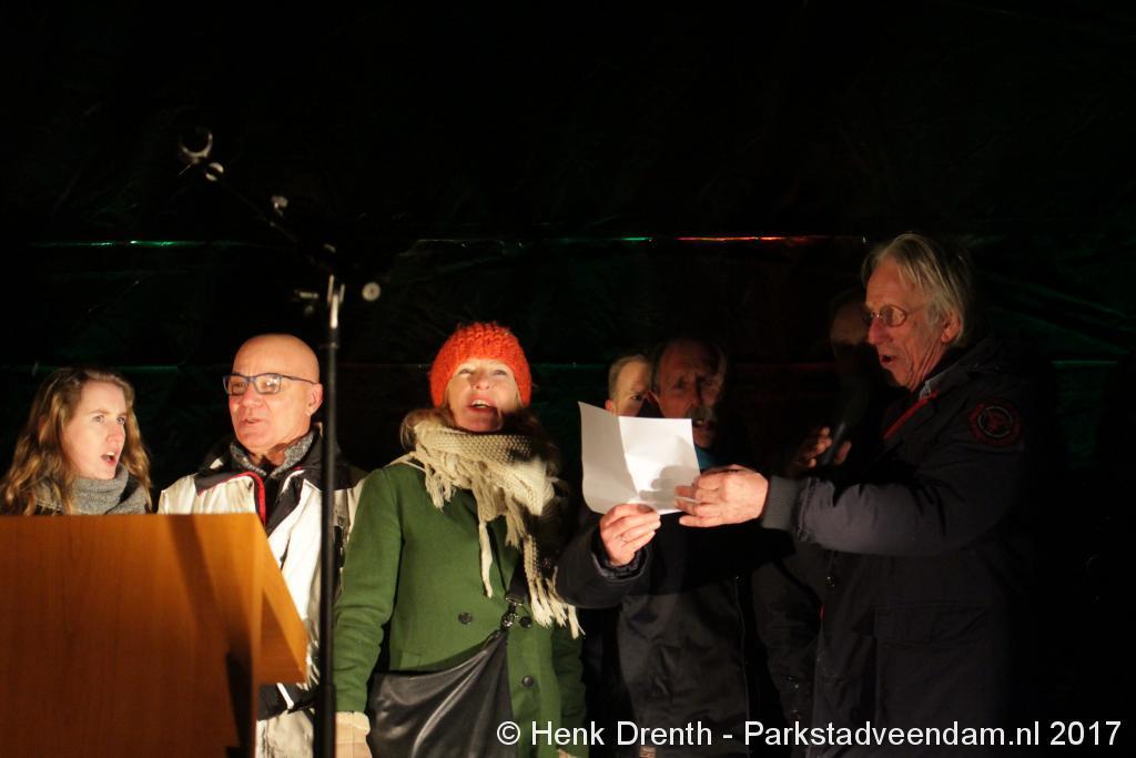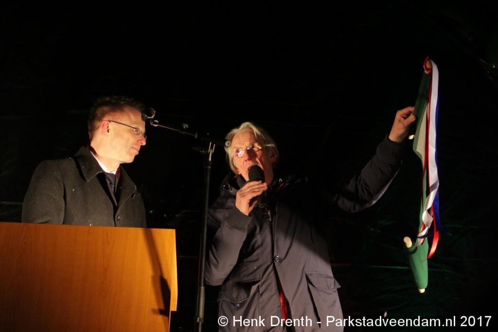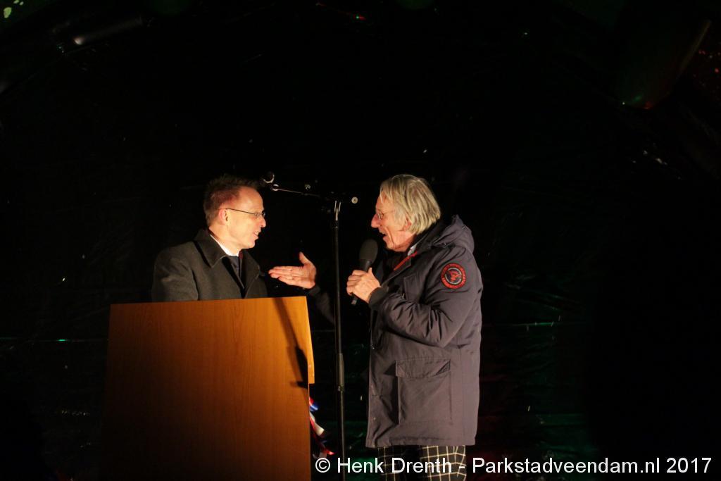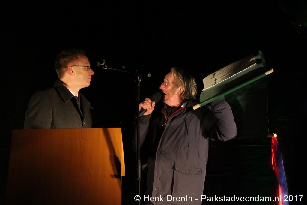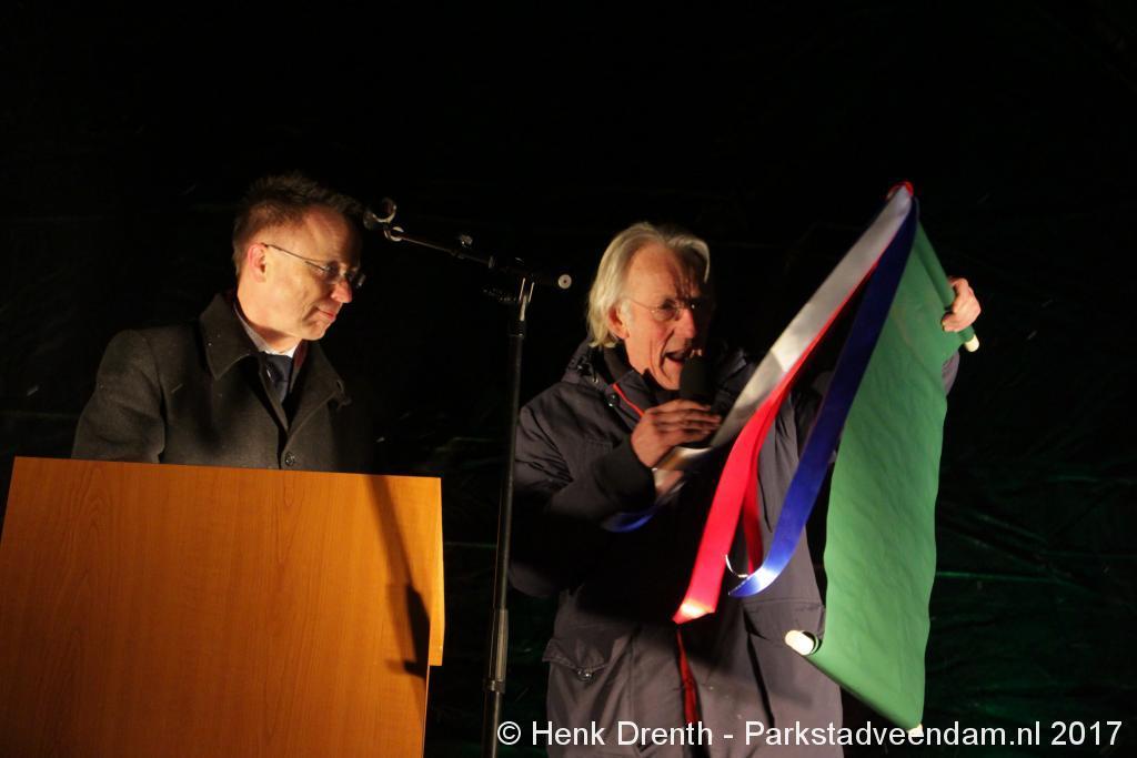 Na de tocht overhandigde cabaretier en geboren Groninger Freek de Jonge op het podium een petitie aan de Commissaris van de Koning René Paas.