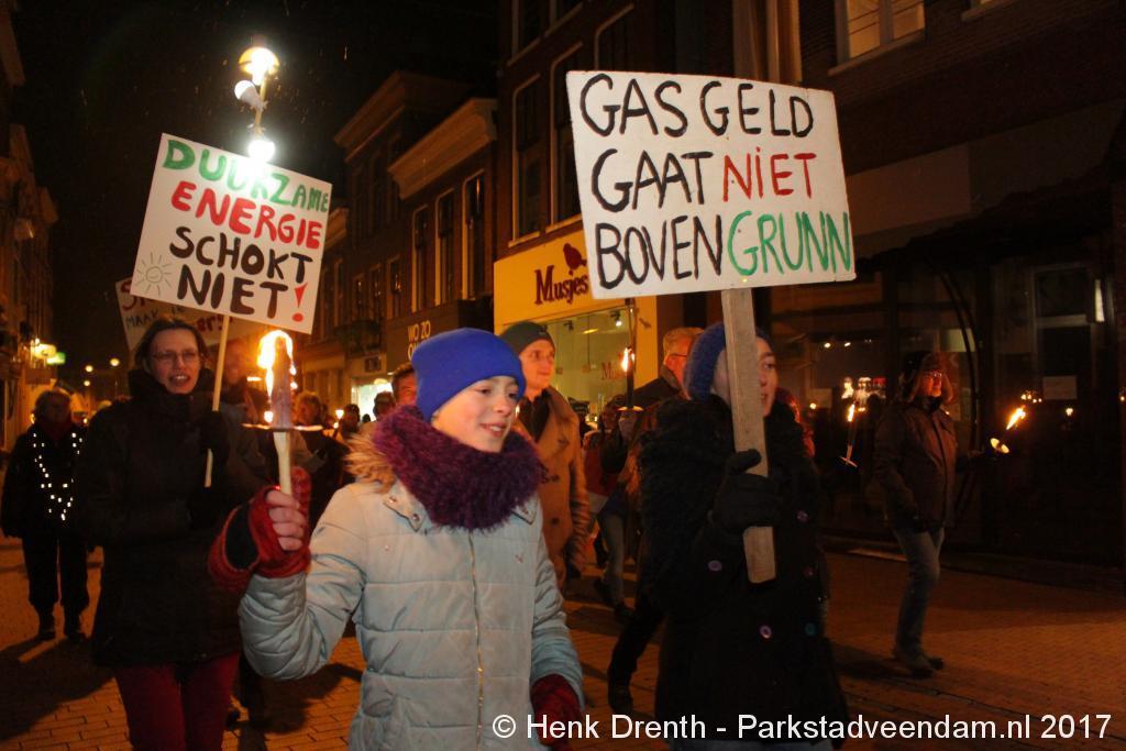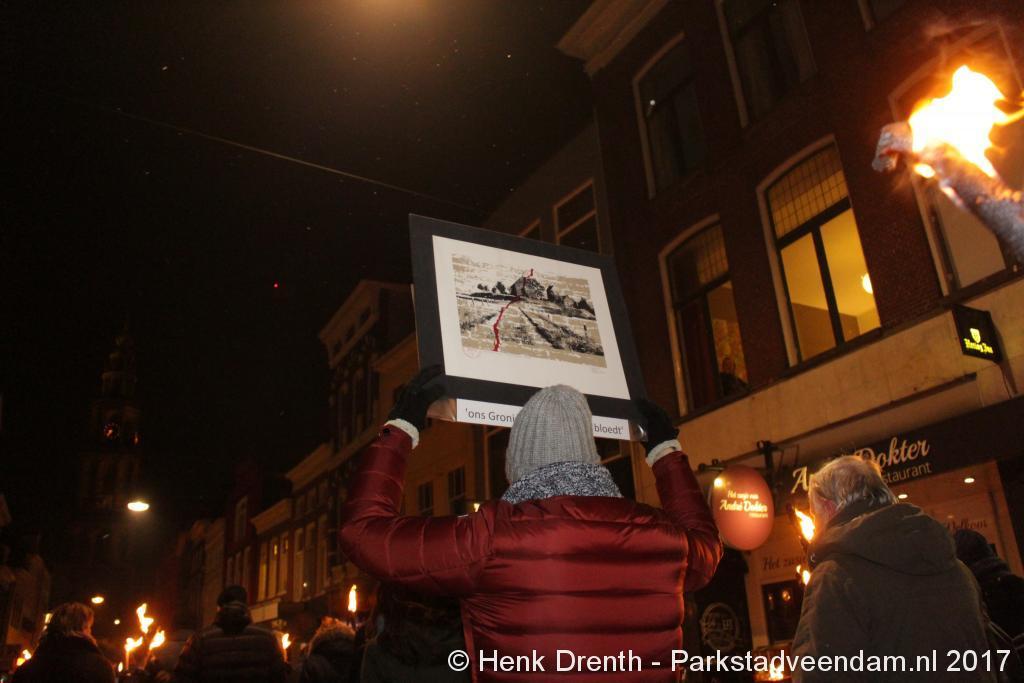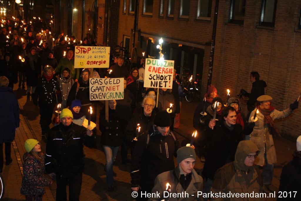 Naar schatting hebben 4500 mensen dinsdagavond de grote fakkeltocht gelopen door de Groningse binnenstad als protest tegen het beleid over de gaswinning in de noordelijke provincie. Na een korte toespraak van Dick Kleijer, voorzitter van de Groninger Bodem Beweging (GBB), en de Groningse burgemeester Peter den Oudsten gingen de deelnemers even na 20.00 uur vanaf de Vismarkt van start. Circa 21.45 uur eindigde de fakkeltocht daar ook.