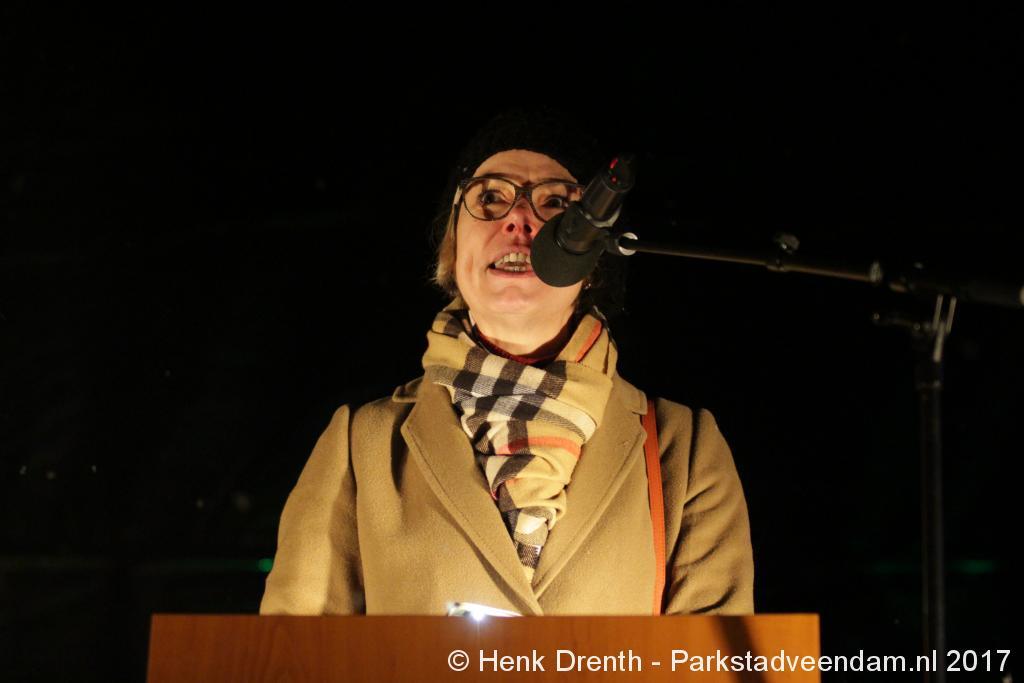 “En maak dan ook vaart met het investeren in leefbaarheid en duurzaamheid binnen de gemeenschappen, Groningen verdiend meer dan schadeafhandeling alleen. Groningen verdiend een substantieel deel van alle opbrengsten. Tot slot we moeten af van onze fossiele gasverslaving. Ze riep de NAM, de Shell, en de overheid op om niet langer op elkaar te wachten. Maar om werk te maken van een verregaande energietransitie met positionering in het Noorden. Werk samen met Groningen aan concrete oplossingen".