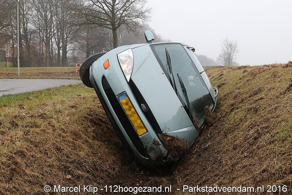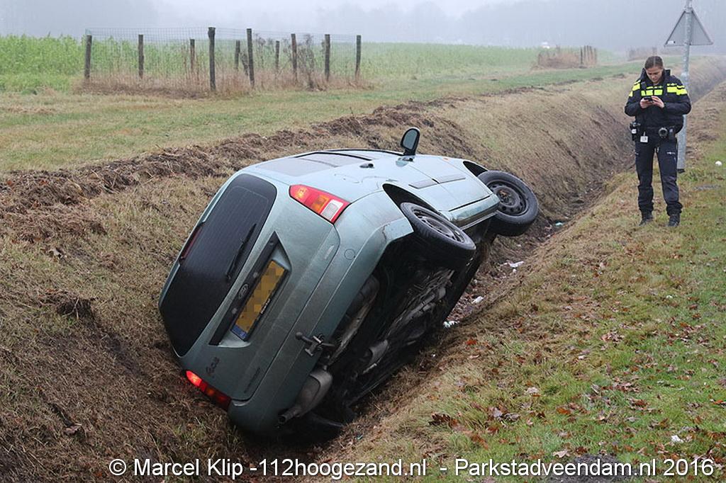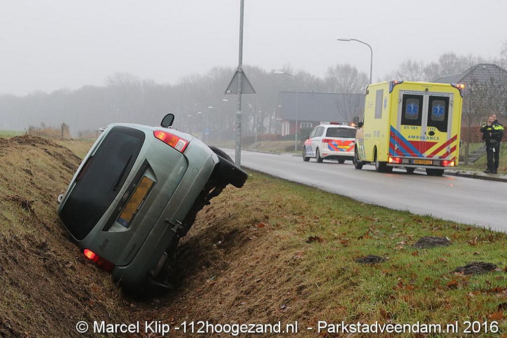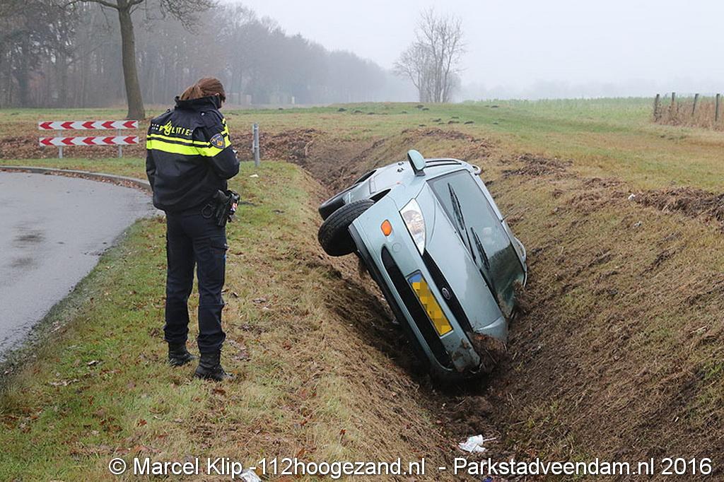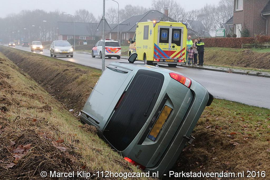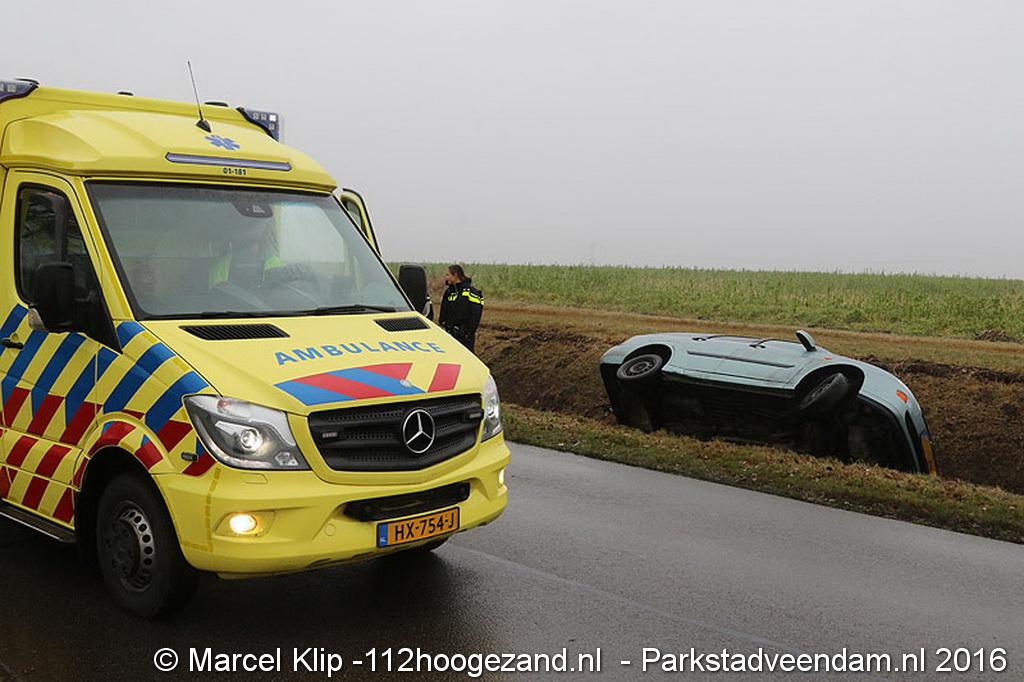 Zaterdagmorgen rond 10:30 uur raakte een personenauto in een droge sloot aan de Oosterweg in Muntendam. De toedraagt van deze enkelzijdige ongeval is onbekend. Of er gewonden zijn gevallen is onduidelijk.