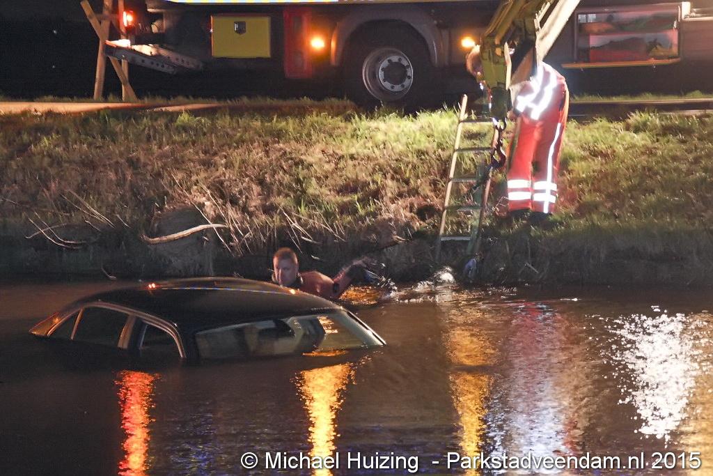 MUNTENDAM - Dinsdagmorgen in alle vroegte is een auto te water geraakt langs de Tussenklappen. Een vrachtwagenchauffeur die richting Muntendam reed merkte het voertuig op en waarschuwde de hulpdiensten.