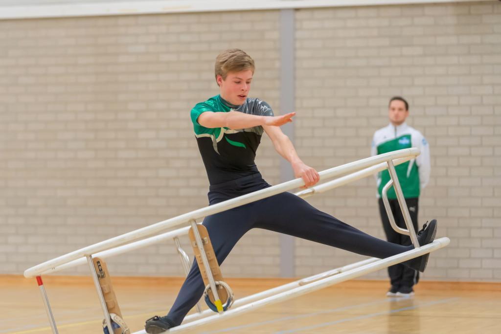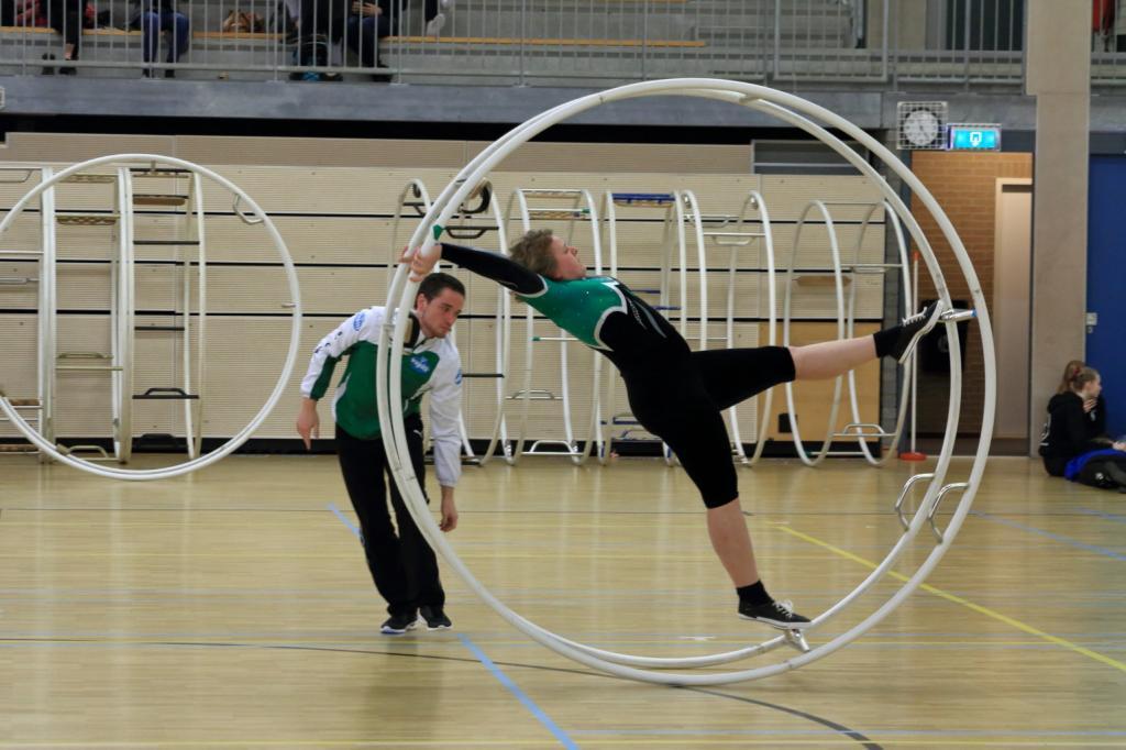 In de tweede ronde was het aan Lotte en Roel op niveau 4. Deze trainingsmaatjes streden dan wel tegen elkaar voor het kampioenschap maar steunden elkaar vooral en het doel van de dag was dan ook om beiden de NK-eis te behalen. Beginnend met het onderdeel sprong wisten beiden een goed begin te maken en een ruime voorsprong op de concurrentie te nemen. Na twee beheerste rechtuit-oefeningen was het tijd voor het spiralen. Dit onderdeel bleek bij de eerste plaatsingswedstrijd in januari nog de grootste uitdaging maar al het harde werk en extra training bleek het waard. Met een ruime verbetering behaalden beiden de NK-eis en het podium. Roel met het zilver en Lotte met het goud.