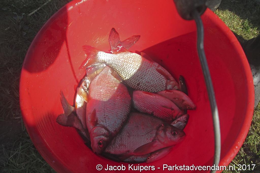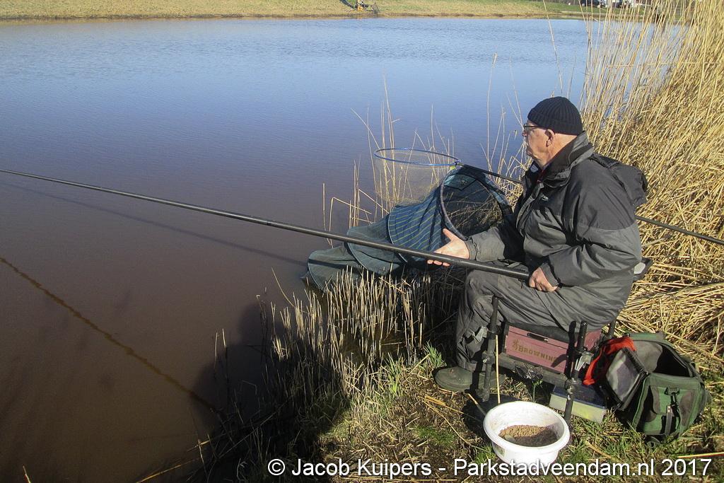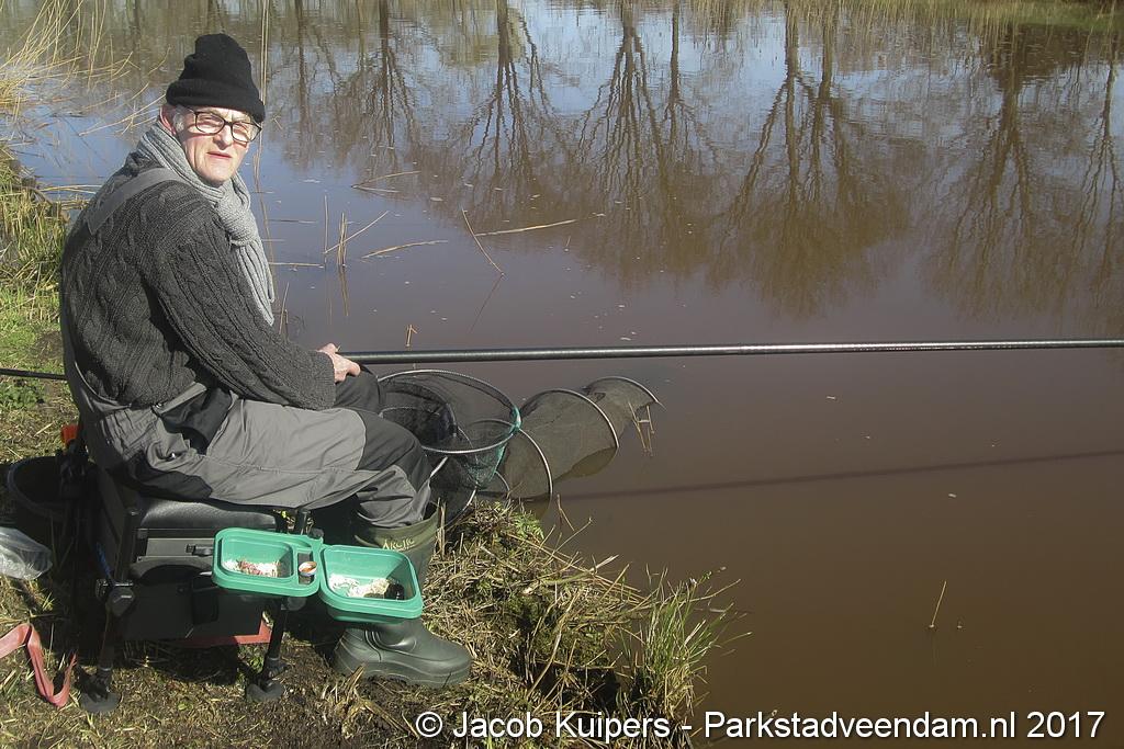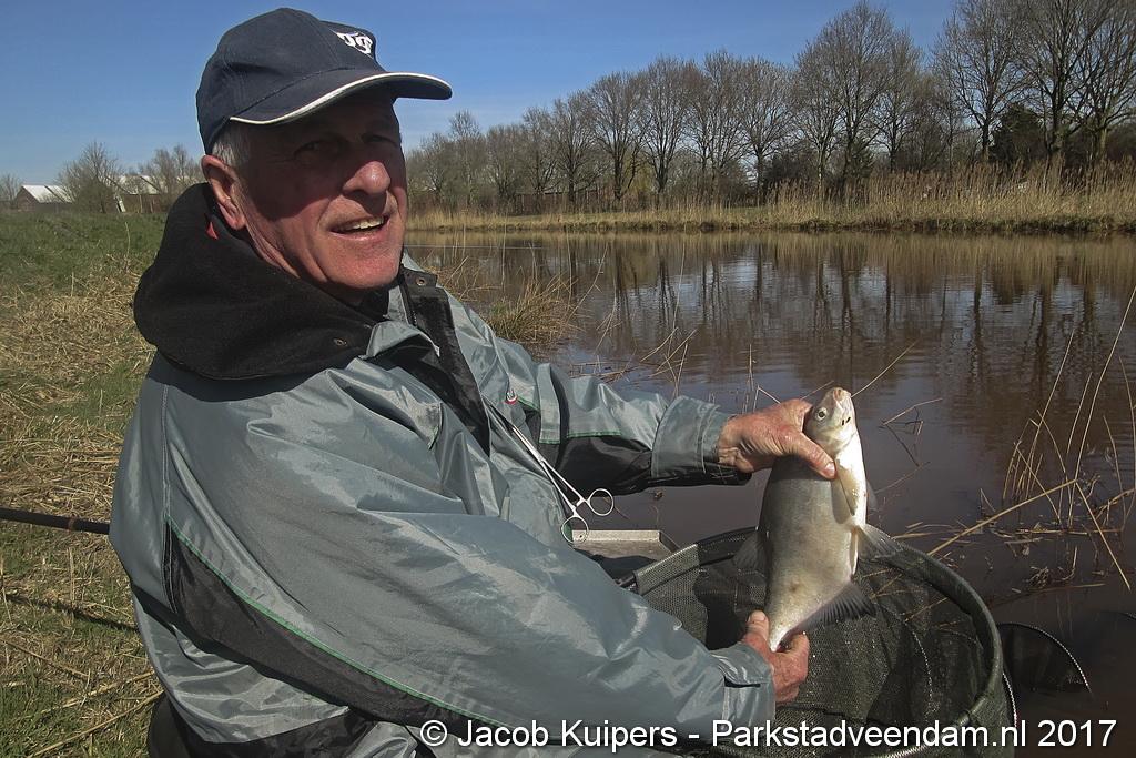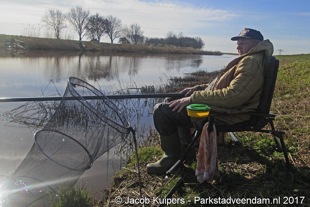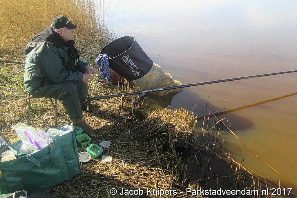 Nee, het waren niet de vissers uit San Juan, waar in vroeger tijden Frank en Mirella over zongen. Het waren de vissers van visvereniging Ons Genoegen uit Veendam. Maar misschien beschikken deze mensen ook wel over een 'gouden keeltje'. Maar op deze zonnige morgen was het muisstil. Af en toe kwam er een passant langs maar de mannen van het water gunden de voorbijganger geen blik waardig. Want ze waren met de wedstrijd bezig. Tegen 12 uur was het exit voor de hengelaars. Vervolgens naar de podium plaatsen.