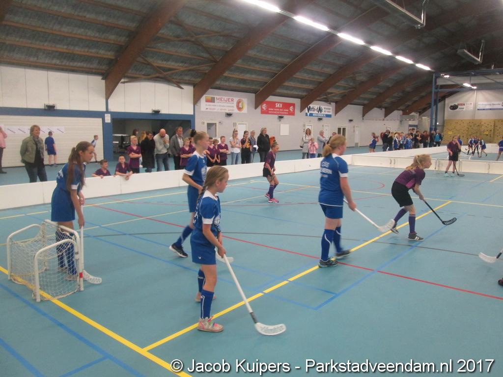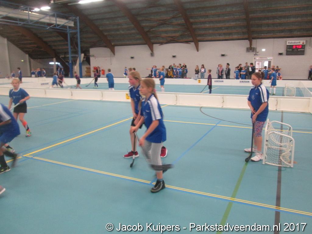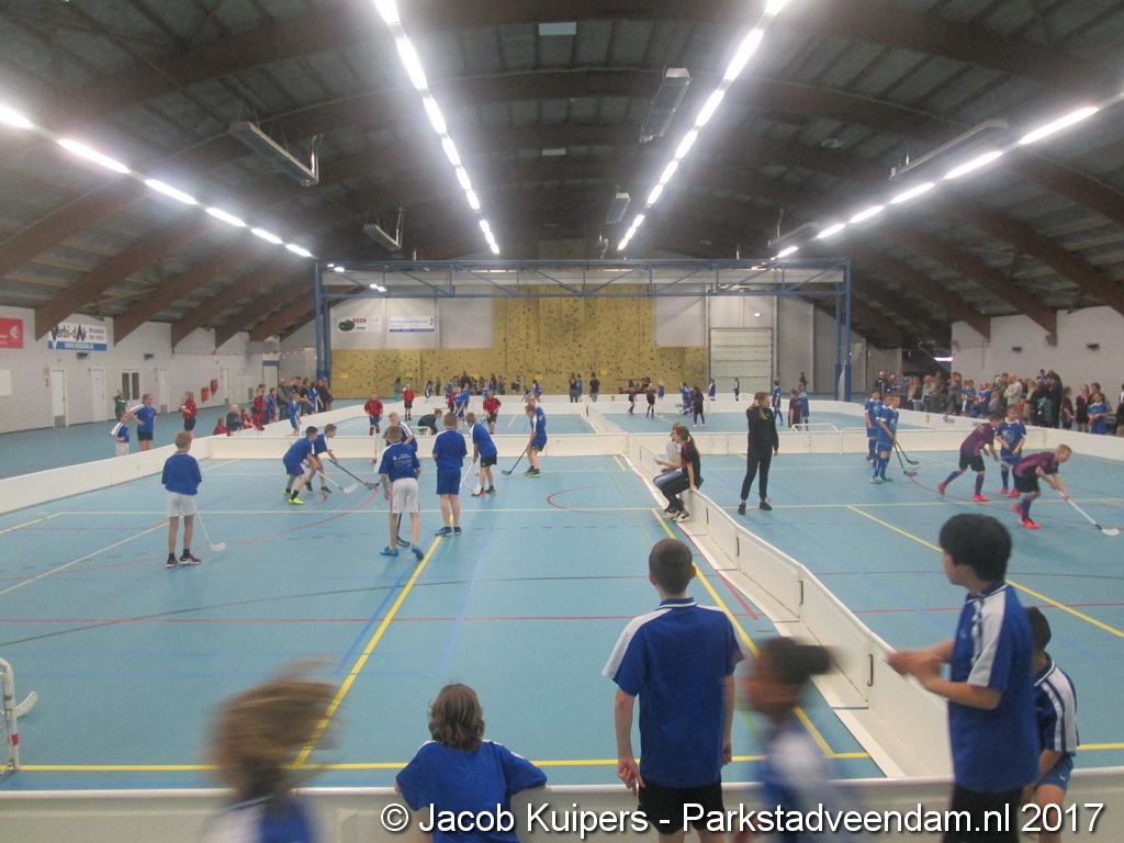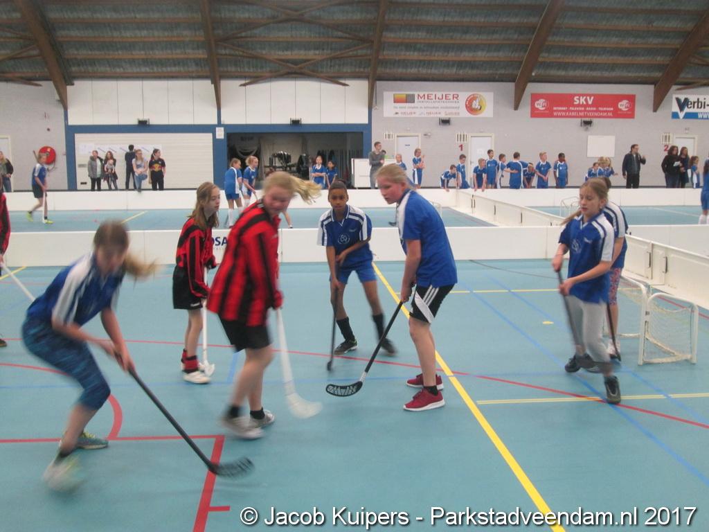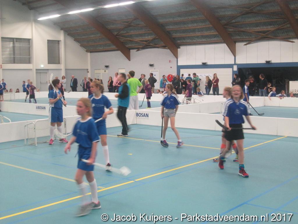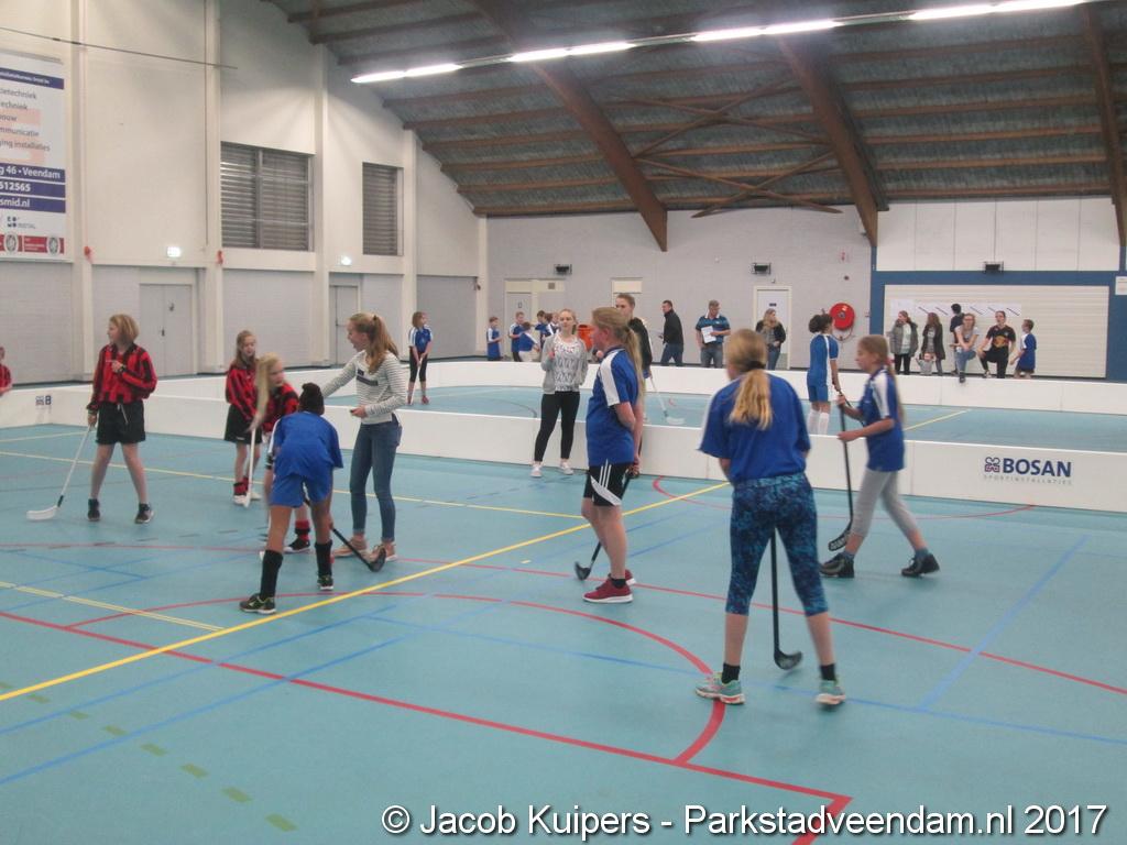 De Sorghvliethal was donderdag 30 maart het strijdtoneel voor de lagere scholen. De lange tribune zat mutje vol en voor de kinderen een mooi 'toneel' om goed gemutst ten strijde te trekken. Het uni-hockey stond op het progamma en het waren allemaal scholieren uit groep 7.