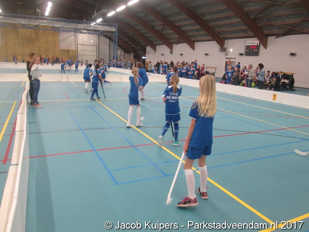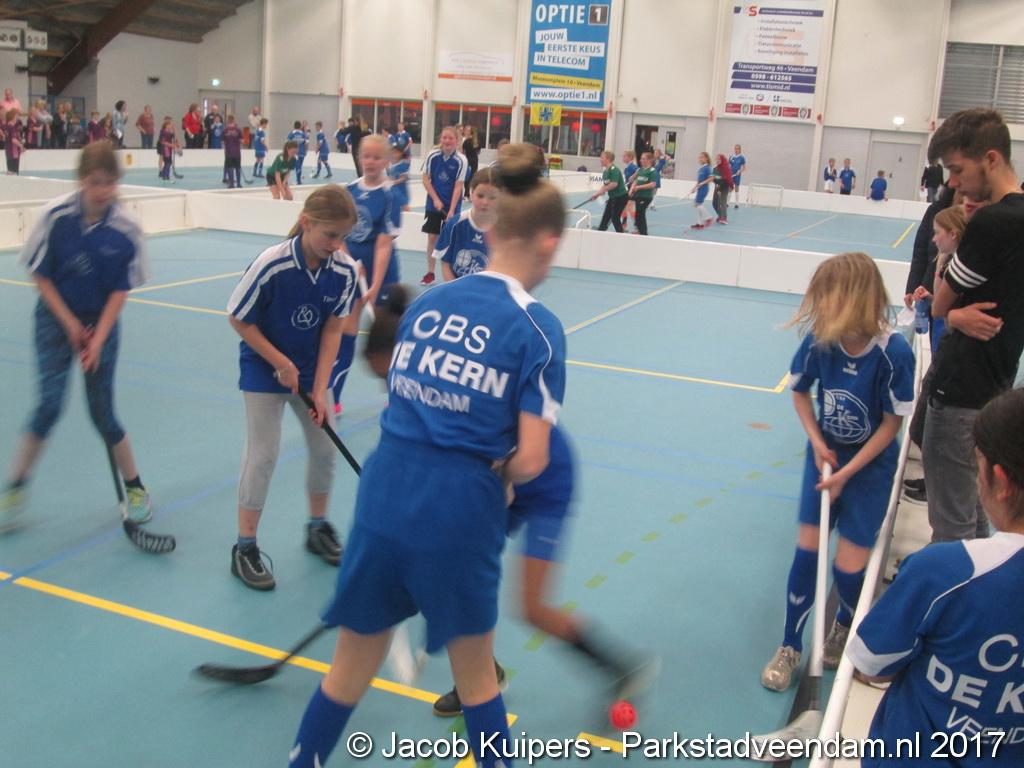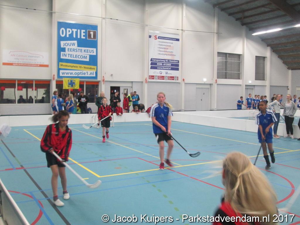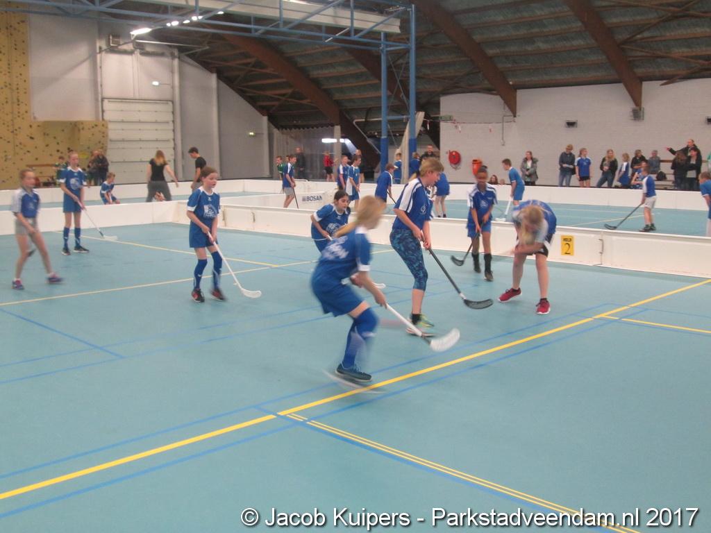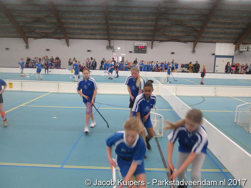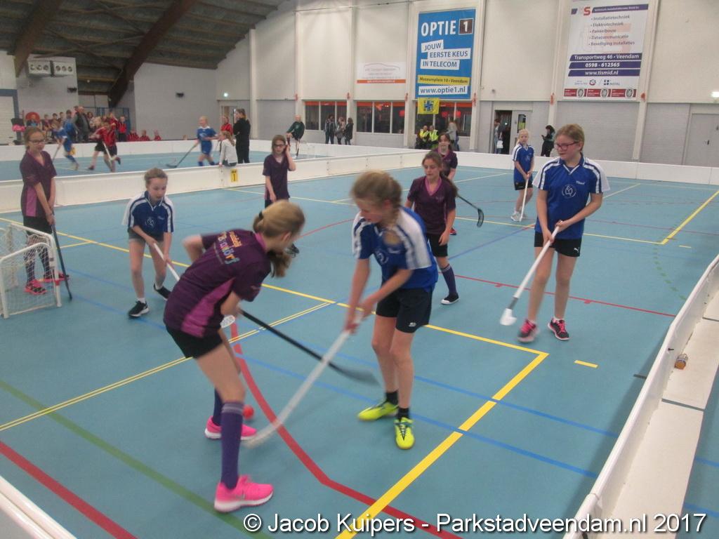 De Sorghvliethal was donderdag 30 maart het strijdtoneel voor de lagere scholen. De lange tribune zat mutje vol en voor de kinderen een mooi 'toneel' om goed gemutst ten strijde te trekken. Het uni-hockey stond op het progamma en het waren allemaal scholieren uit groep 7.