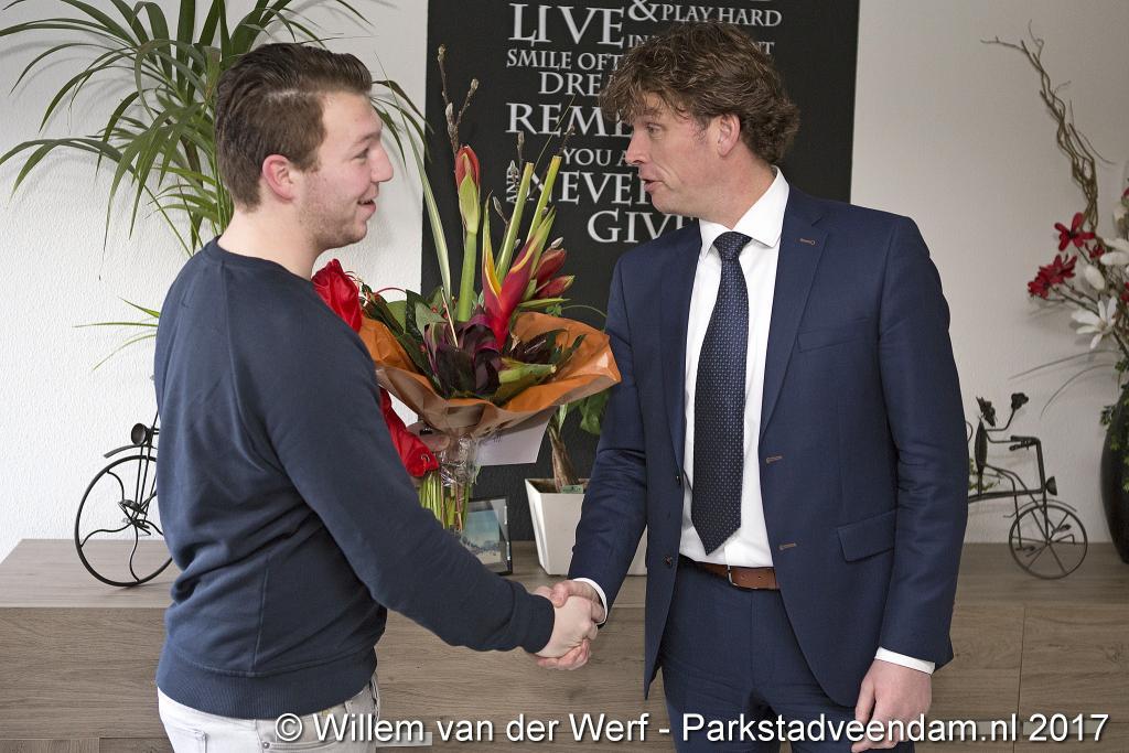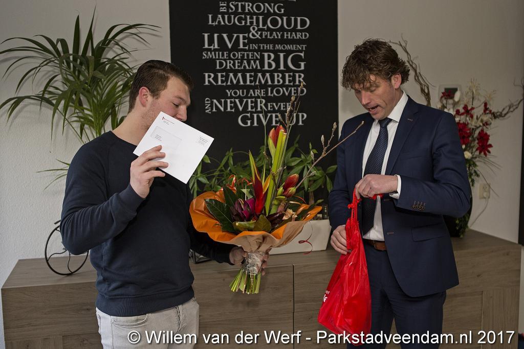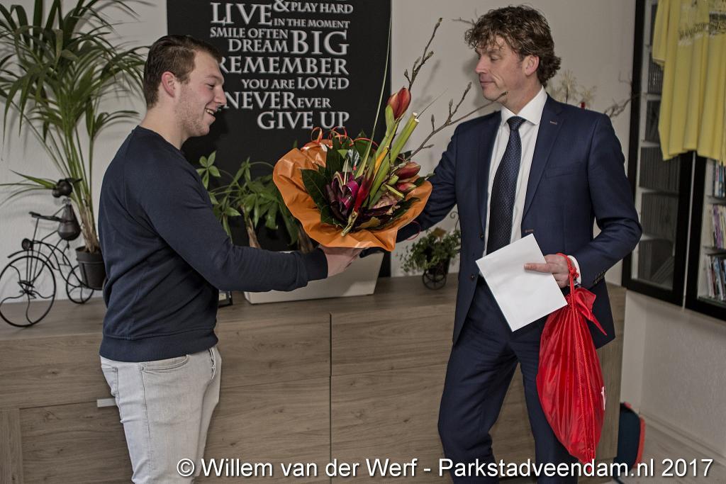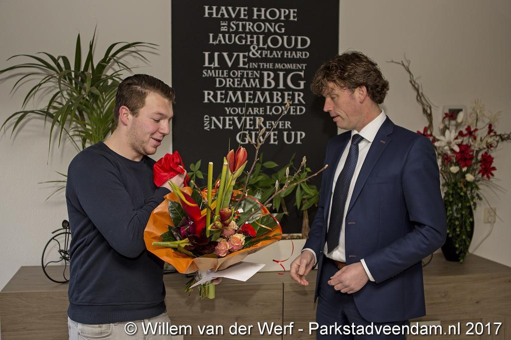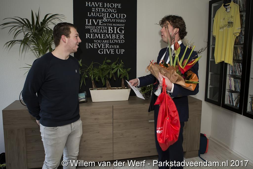 Zaterdagmorgen werd squasher Maikel Beijne thuis gehuldigd door wethouder Henk Jan Schmaal. Maikel Beijne werd in 2016 Nederlands Kampioen in Zoetermeer.