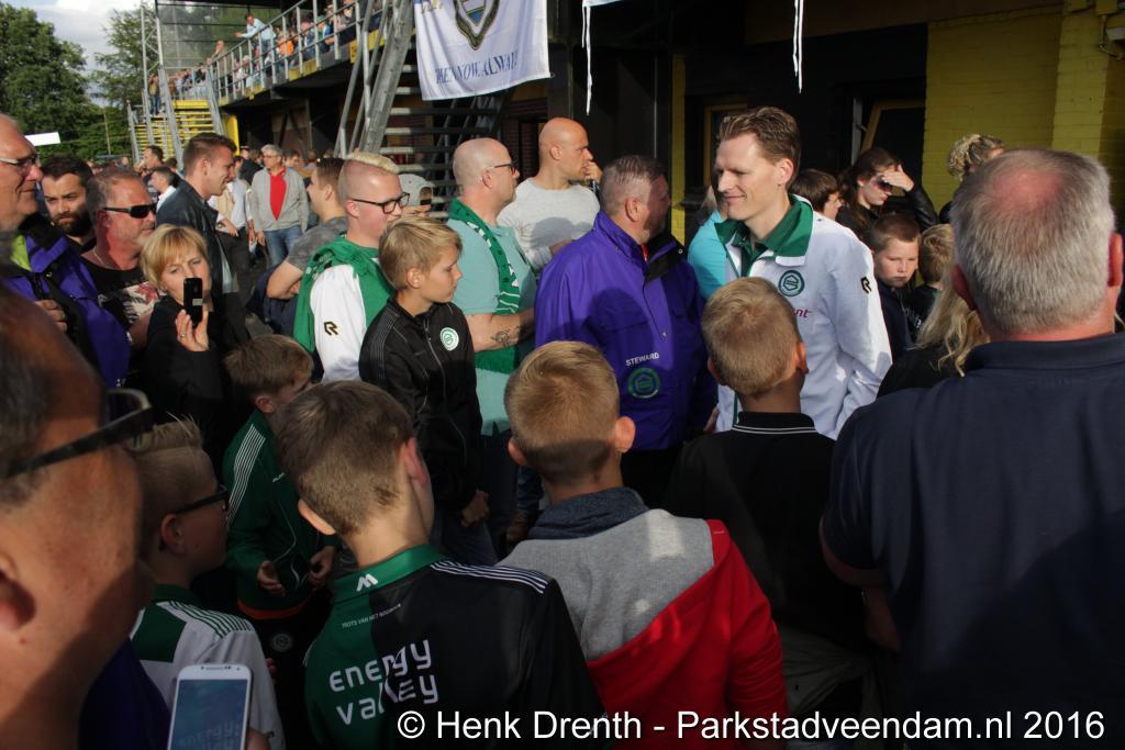 VOETBAL - Het aloude stadion aan de Langeleegte had vrijdagvond weer eens een vol huis. FC Groningen speelde aan de Langeleegte een oefenwedstrijd tegen Queens Park Rangers dat komt uit in de Engelse Championschip. Het was niet zo dat de ´spetters´  van de wedstrijd afvlogen want daarom is het ook een vriendschappelijke partij. De spelers wilden hun benen goed houden om in de competitie te kunnen schitteren. Veel veiligheidsbekleders van De Stadjers waren present om de toeschouwers in goede banen te leidden